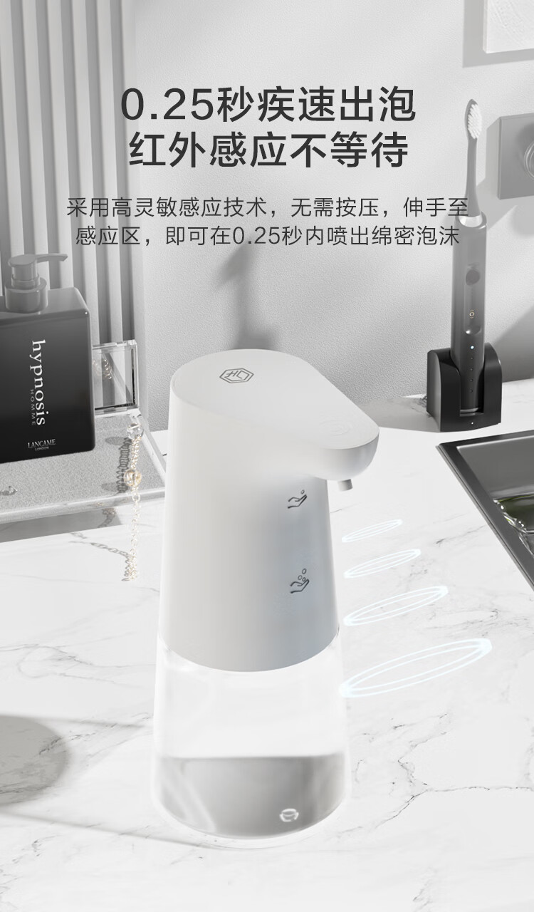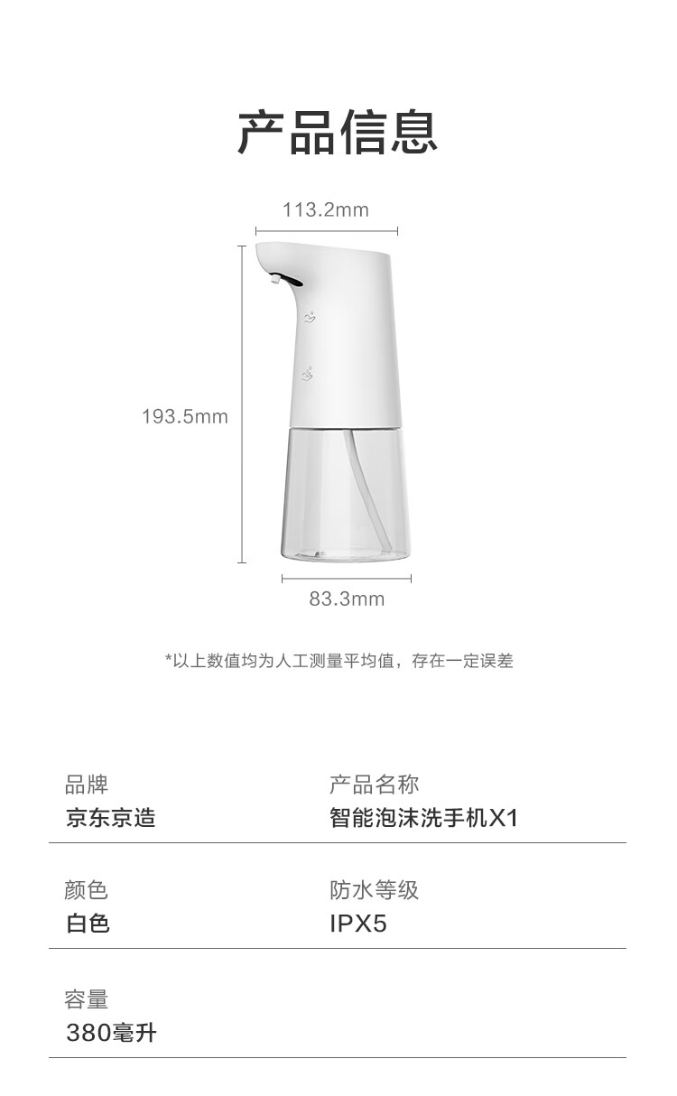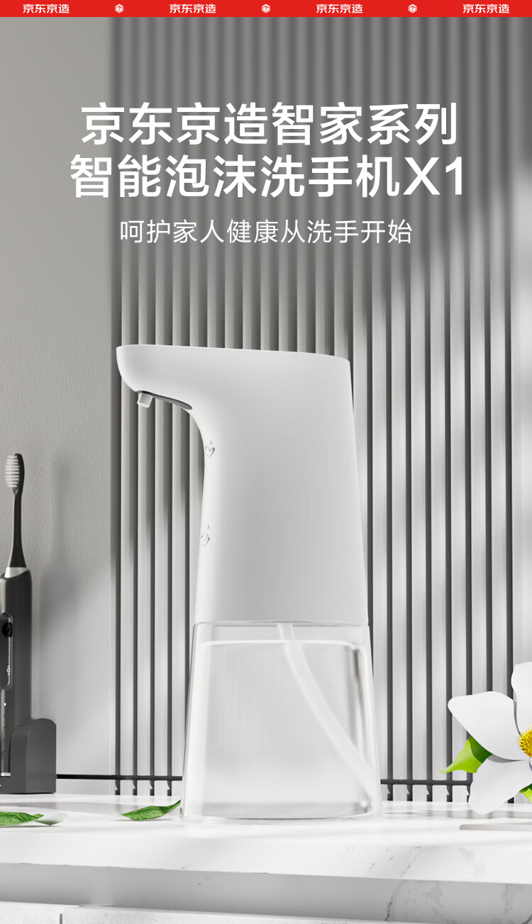 京东京造 智能泡沫洗手机X1 自动距离感应IPX5防水皂液器 充电款可自主配液