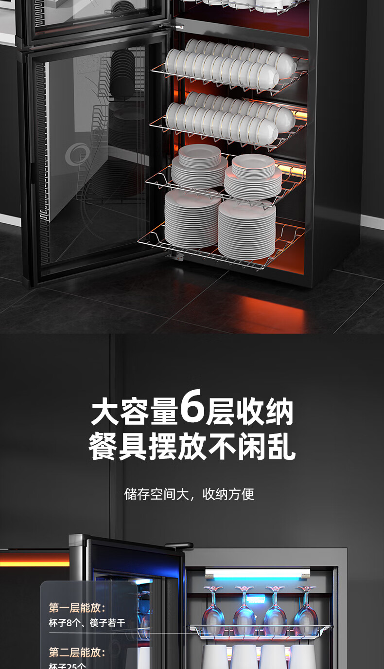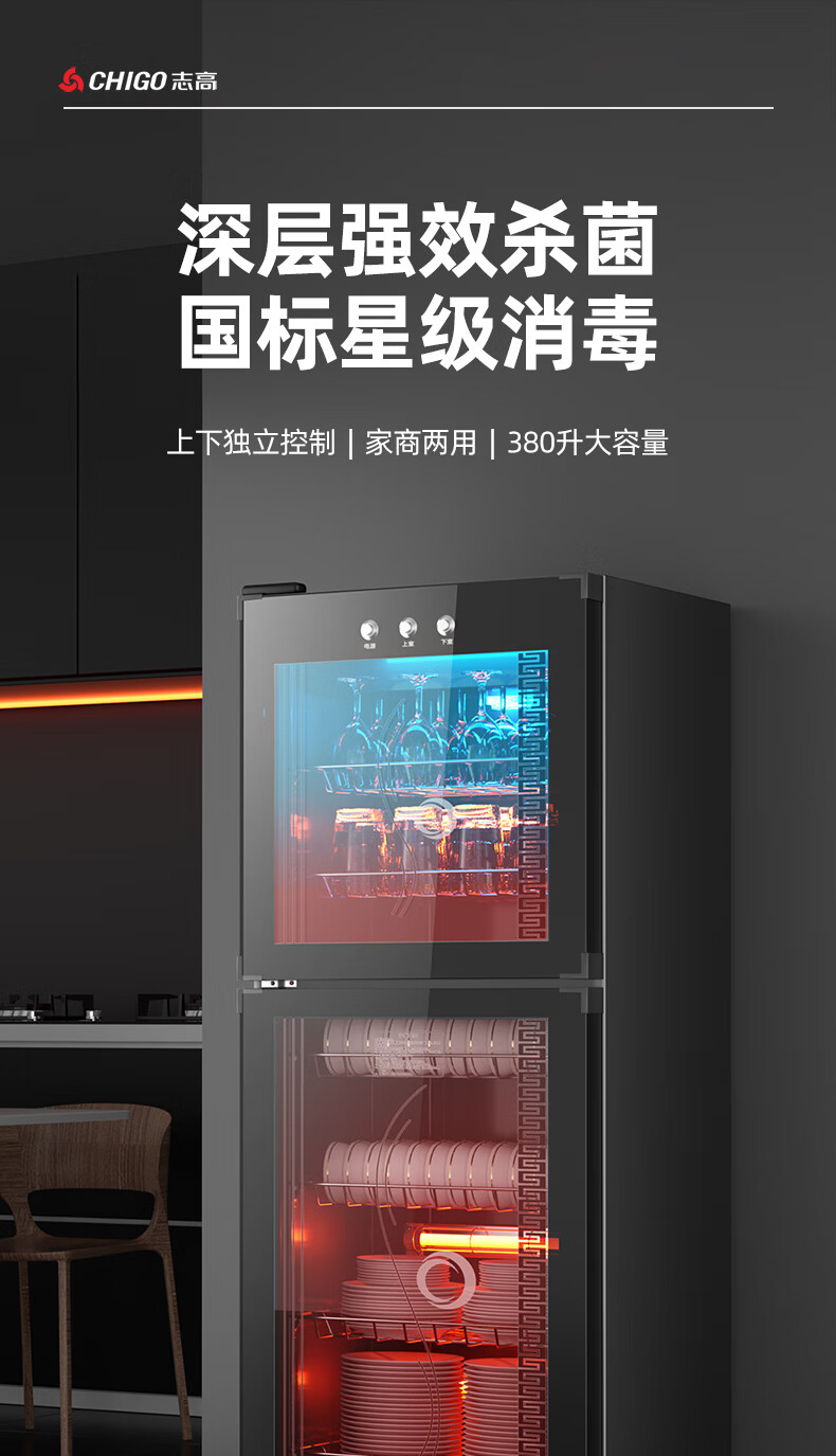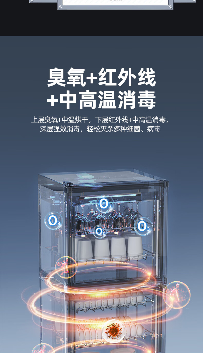 志高消毒柜碗柜家用商用烘干一体机立式台式餐具茶杯碗筷消毒柜大容量厨房小型桌面单门免沥水消毒机 【98L按键双门3层】臭氧+红外线+沥水盘