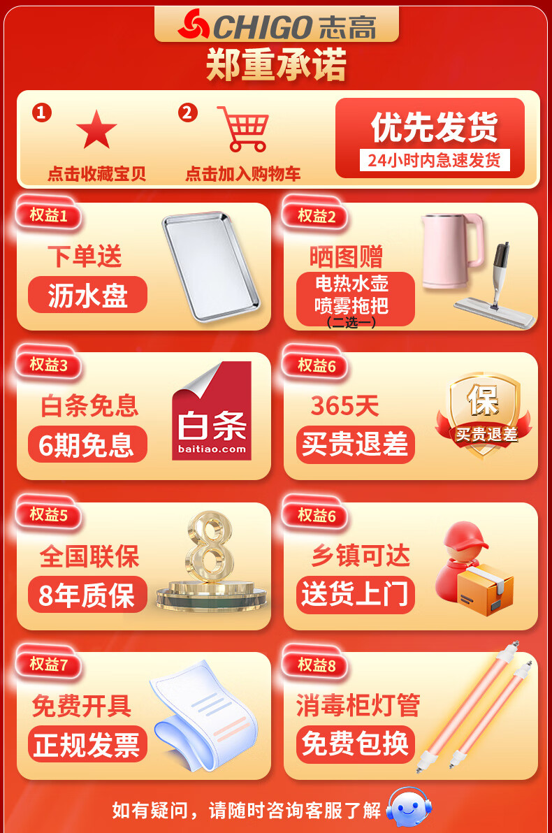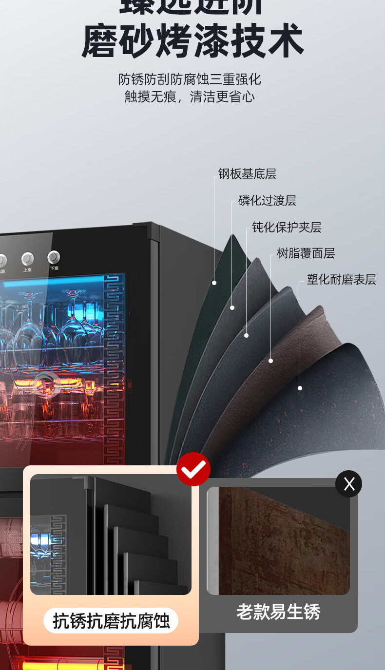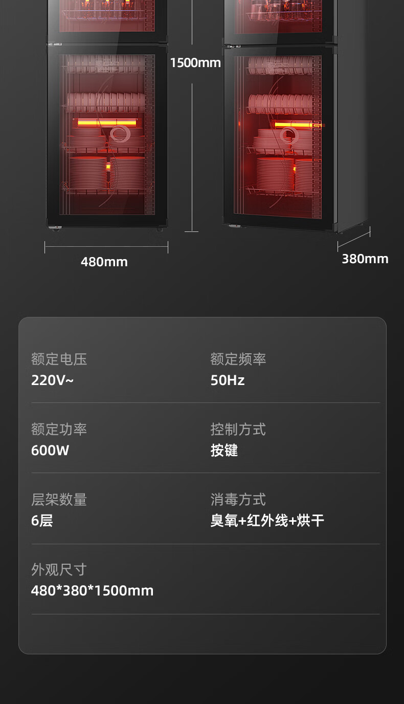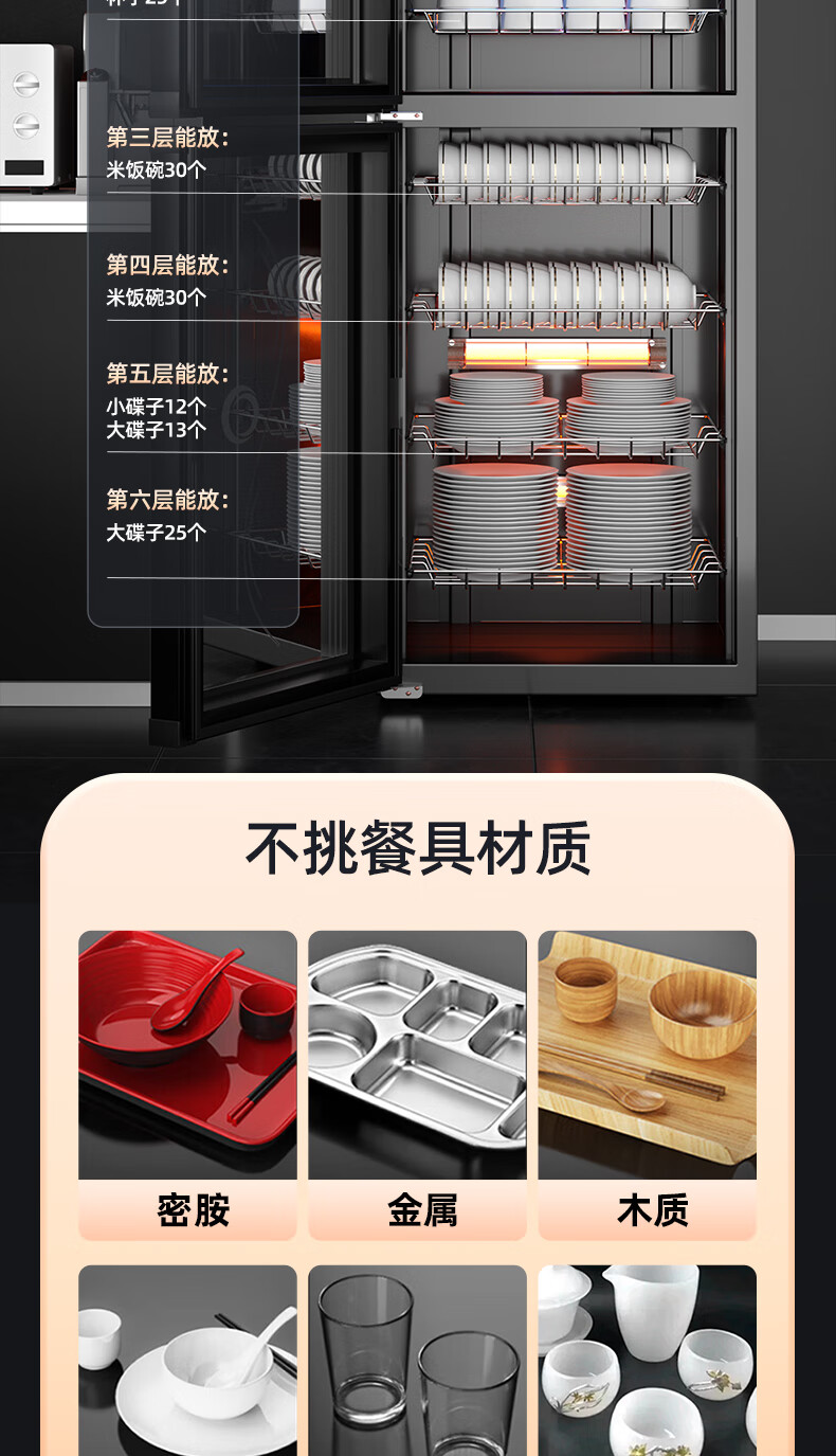 志高消毒柜碗柜家用商用烘干一体机立式台式餐具茶杯碗筷消毒柜大容量厨房小型桌面单门免沥水消毒机 【98L按键双门3层】臭氧+红外线+沥水盘