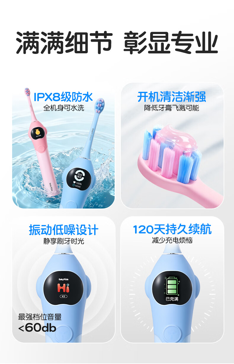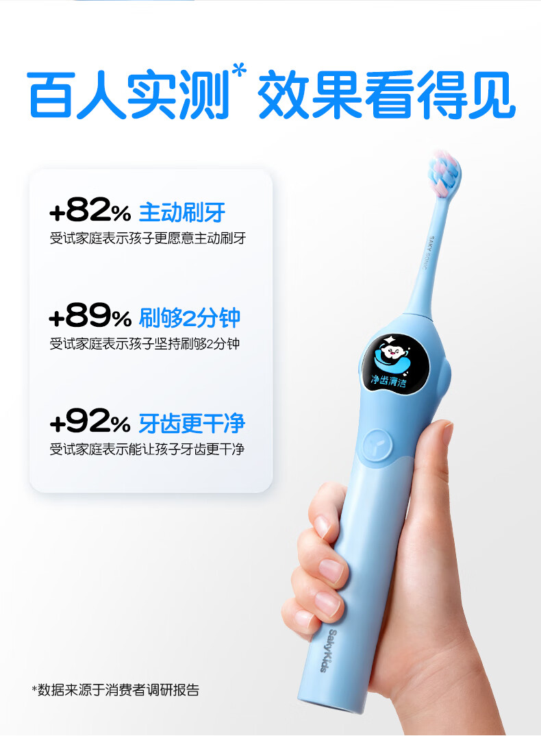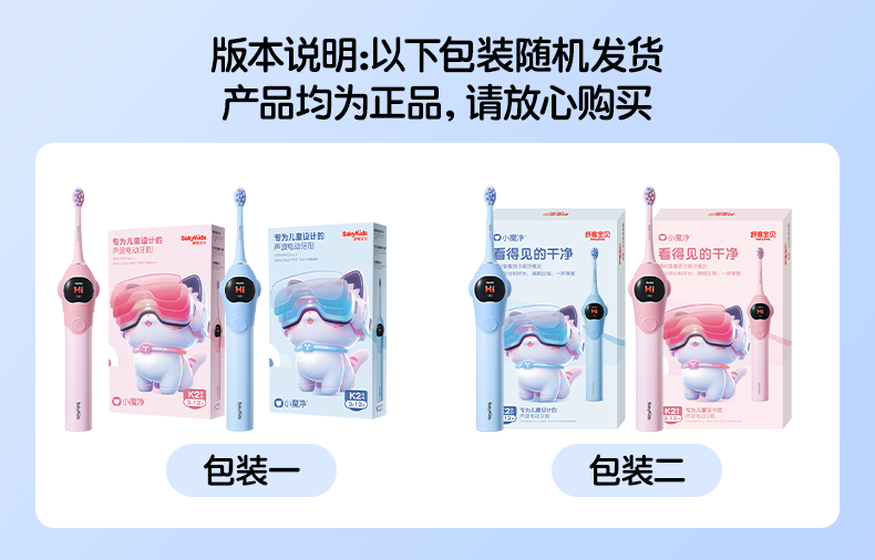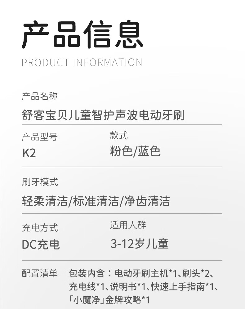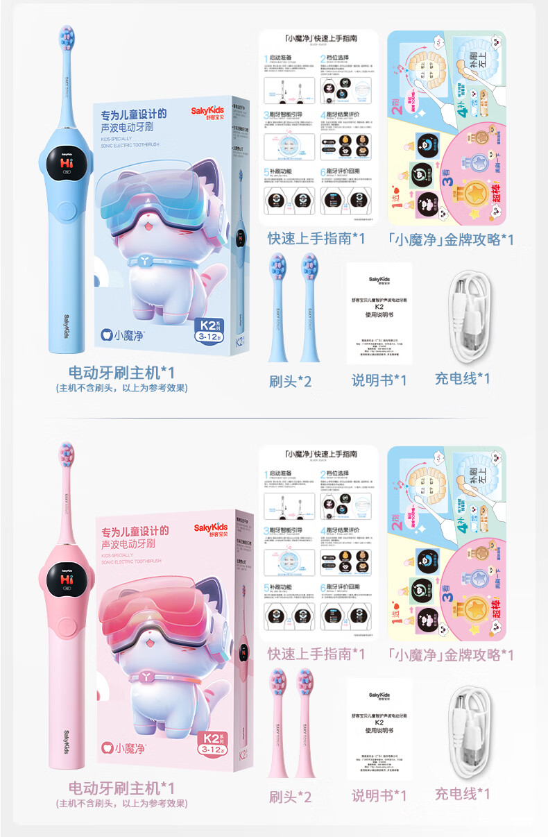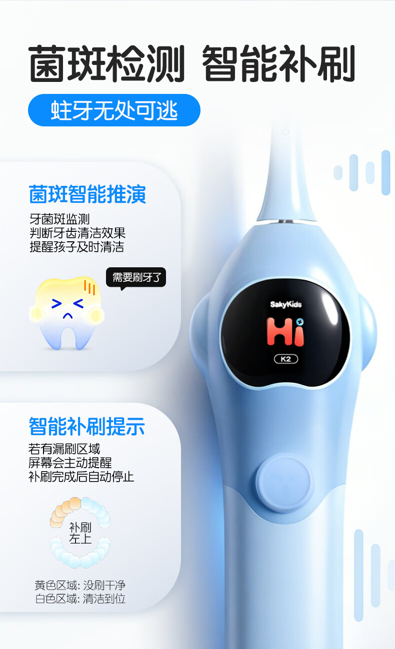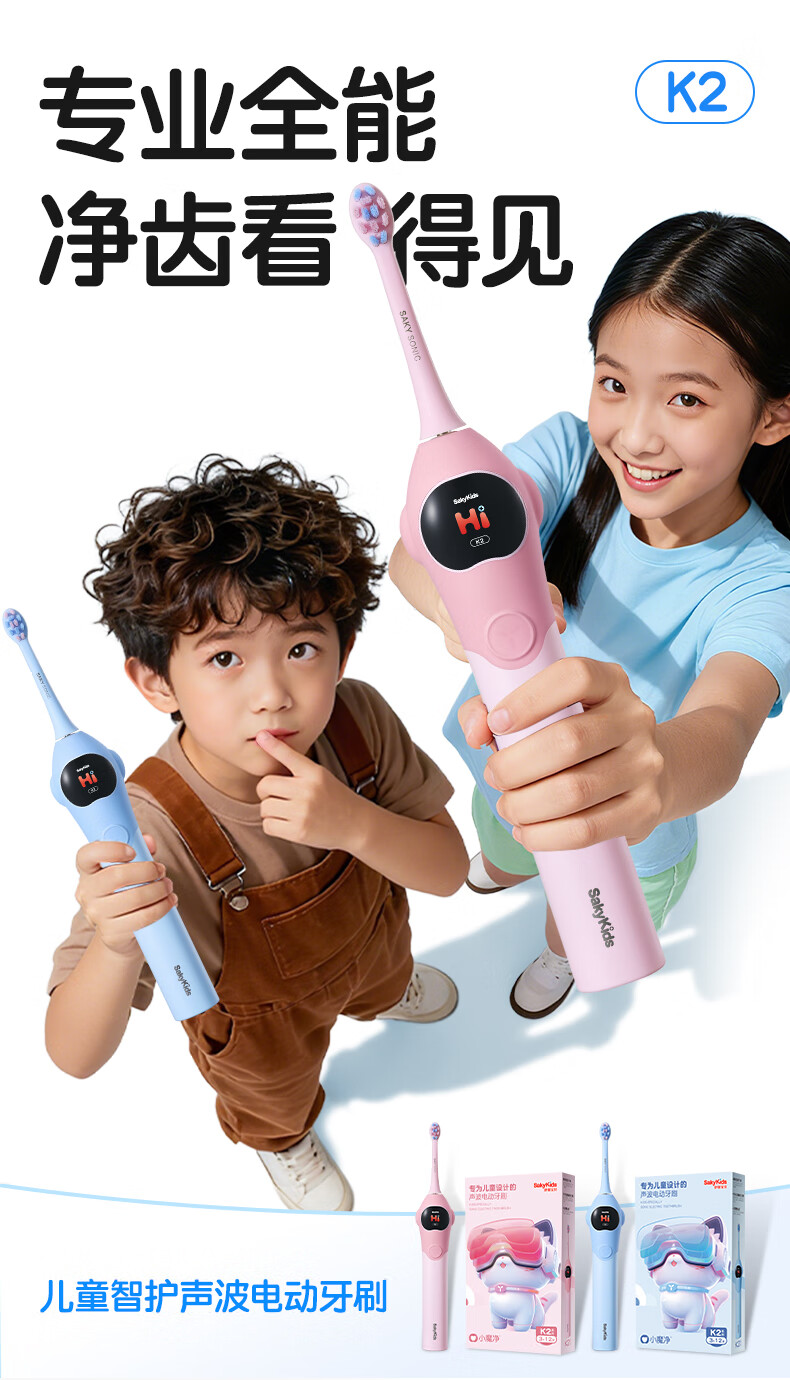 舒客宝贝儿童电动牙刷舒克高效清洁防蛀牙软毛护龈智能定时K2男宝(适用3-12岁)生日儿童节礼物 国家补贴