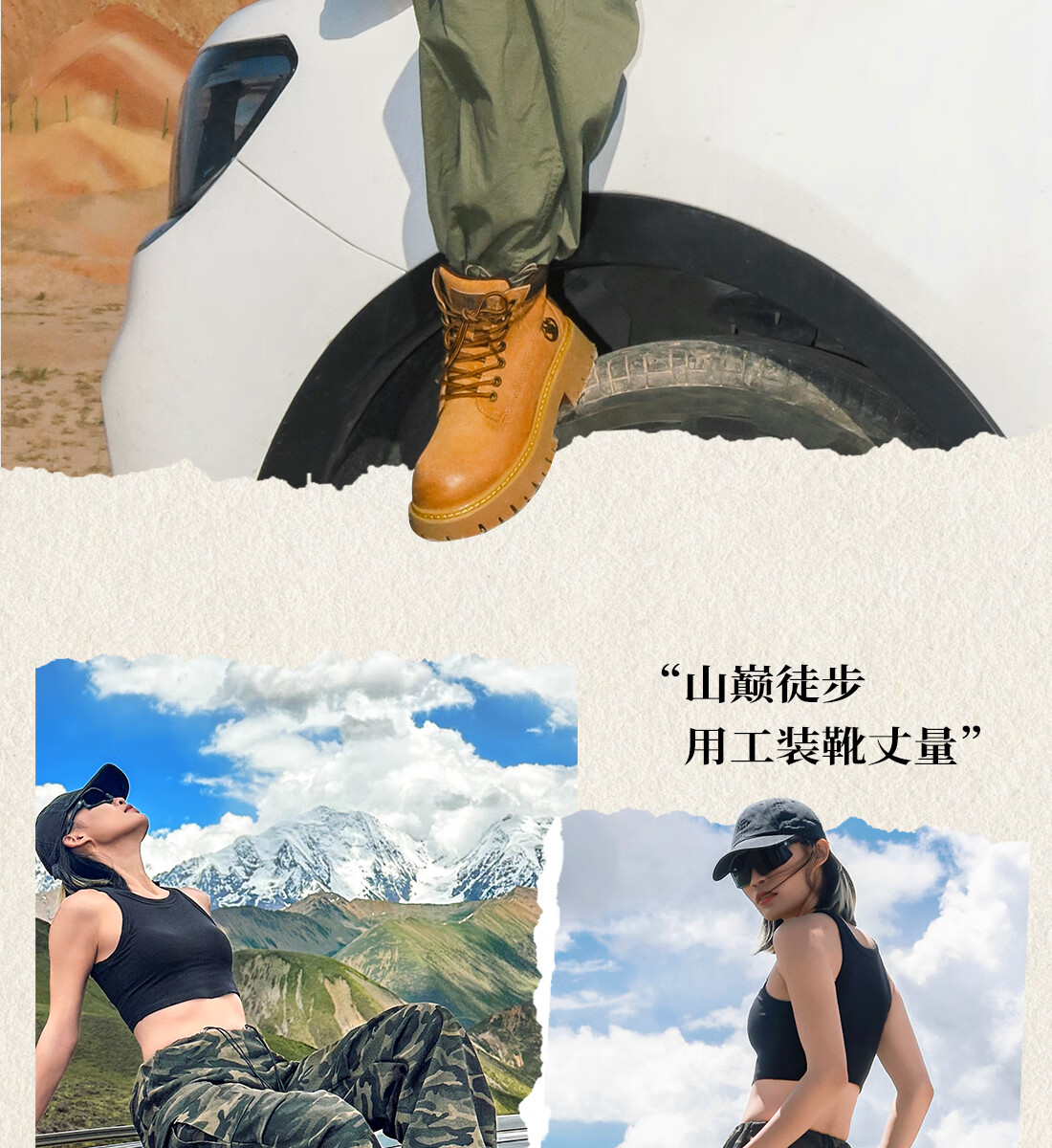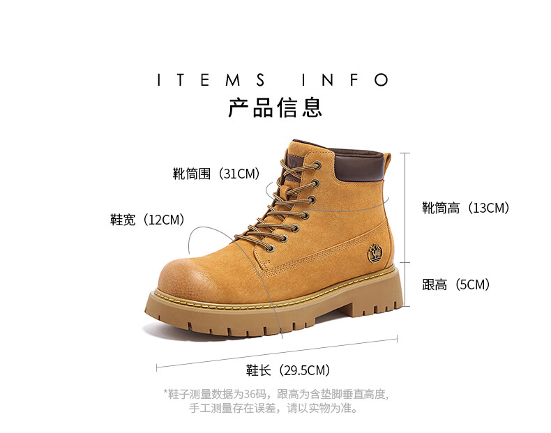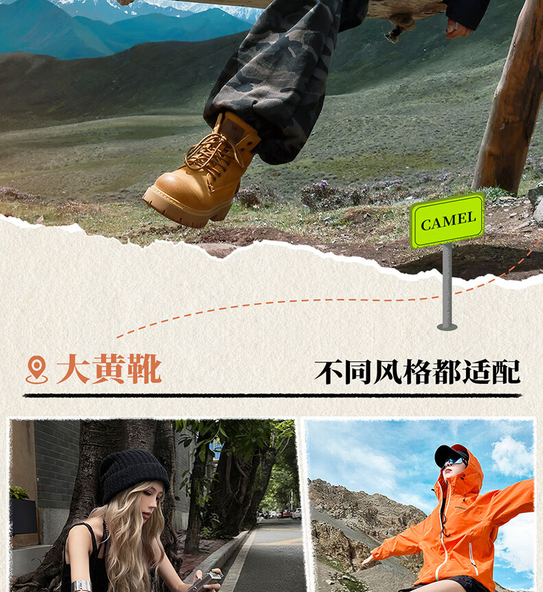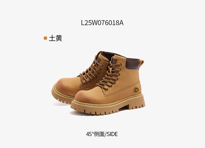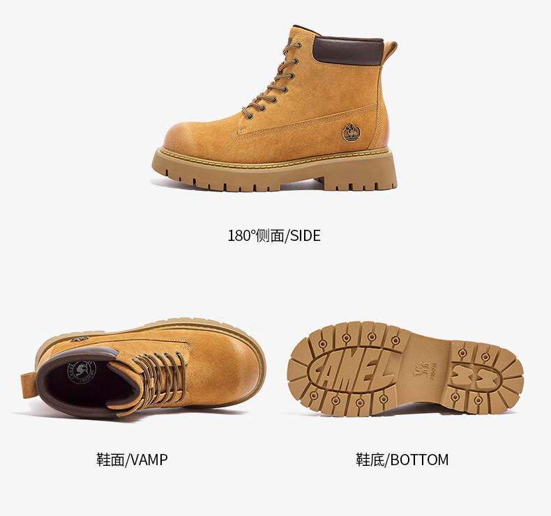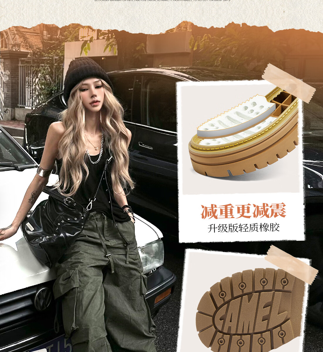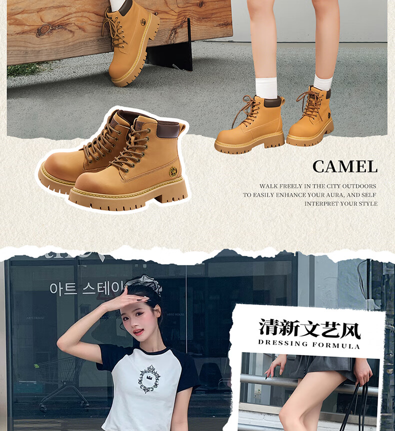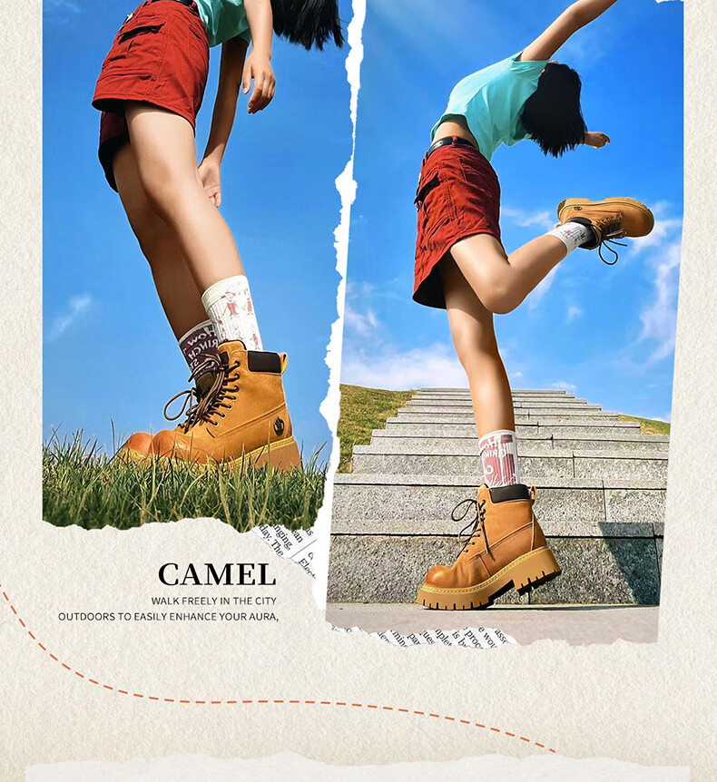 骆驼(CAMEL)【山越】工装靴女新潮厚底马丁靴 L25W076018 土黄(反绒皮) 36