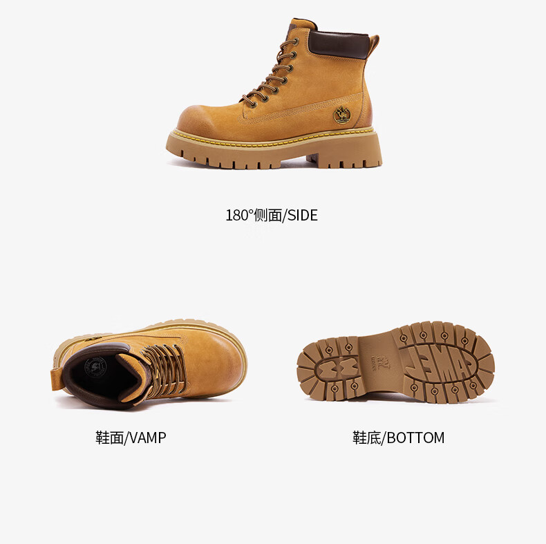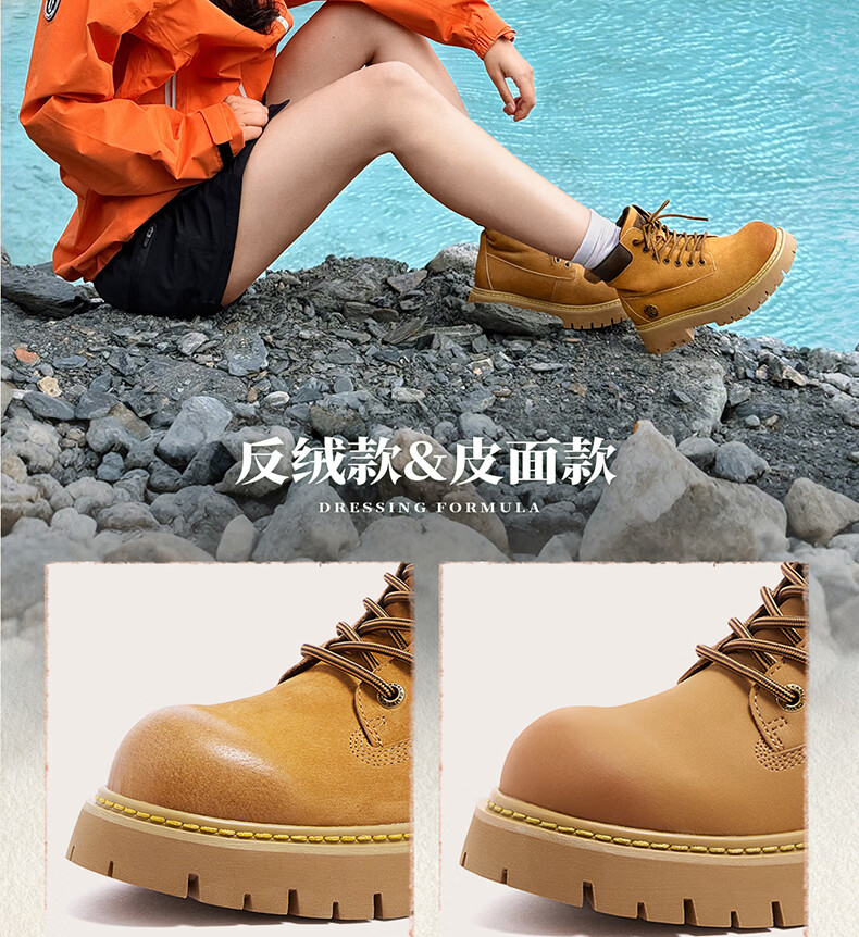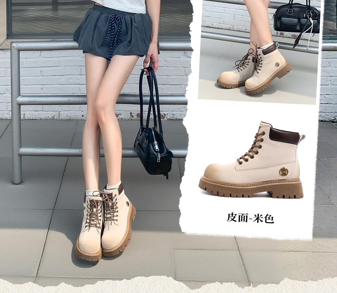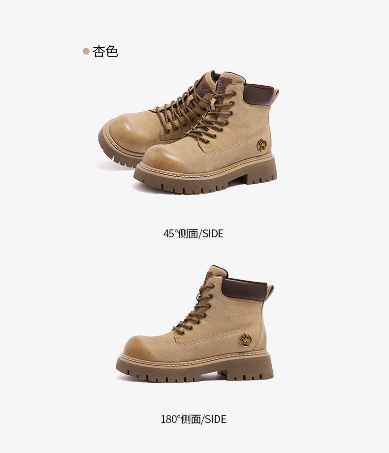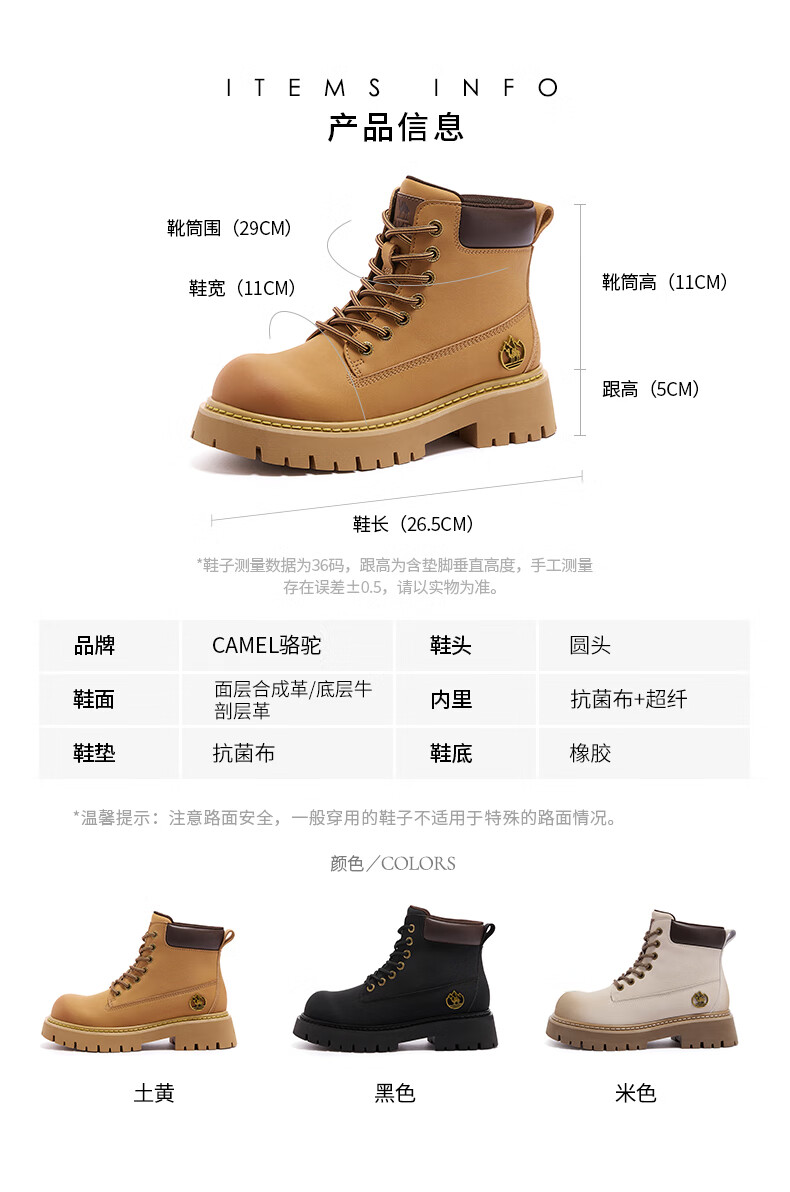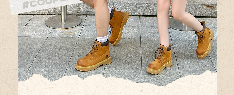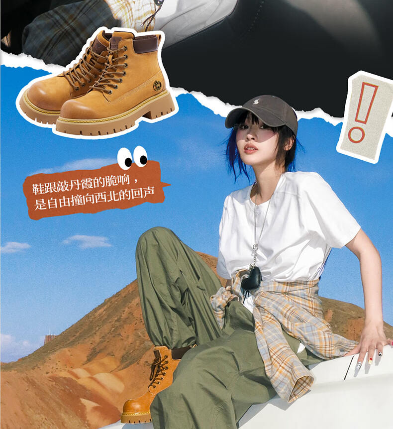 骆驼(CAMEL)【山越】工装靴女新潮厚底马丁靴 L25W076018 土黄(反绒皮) 36