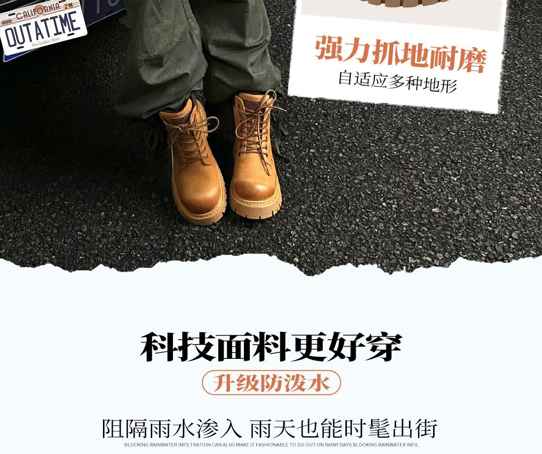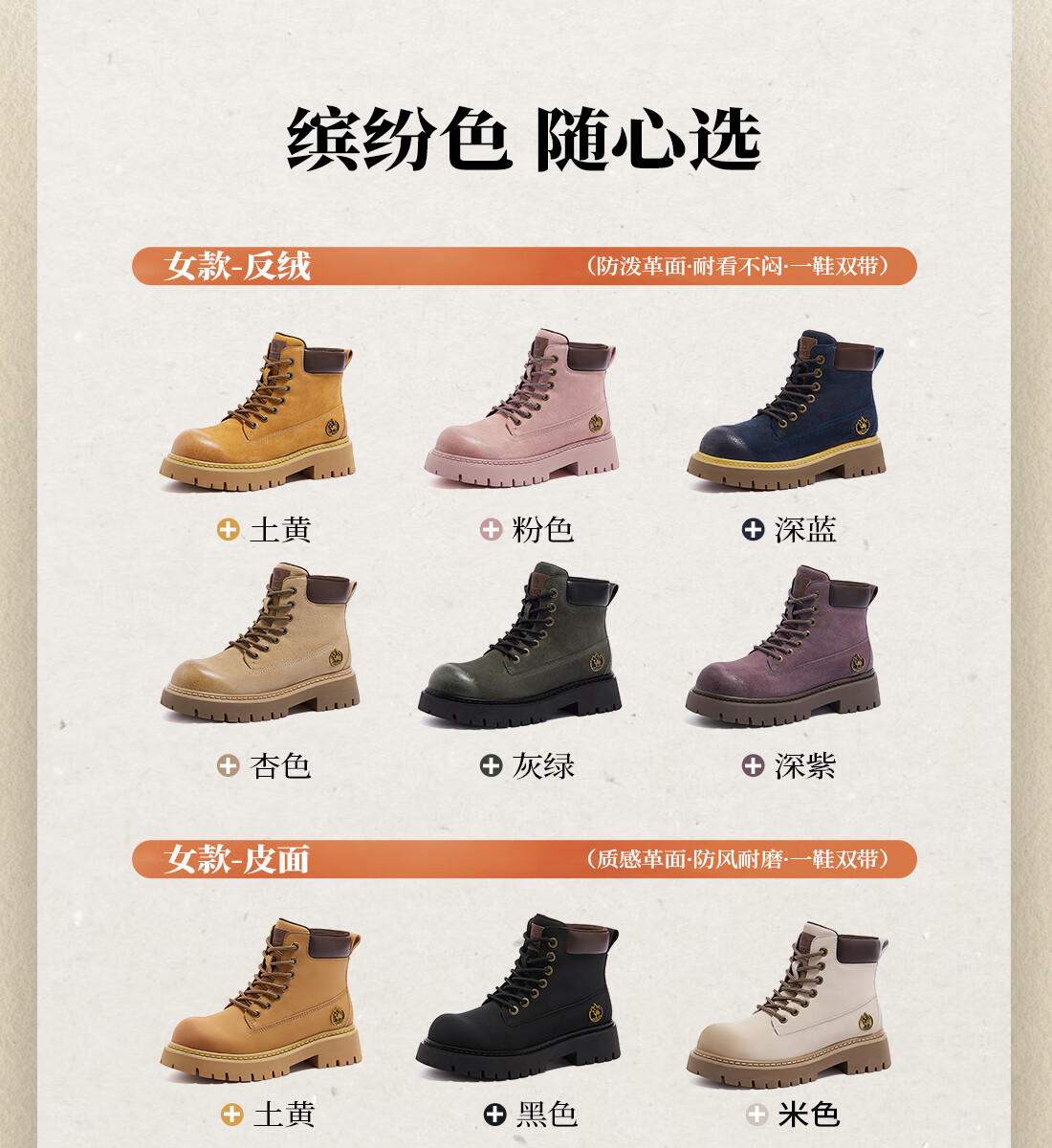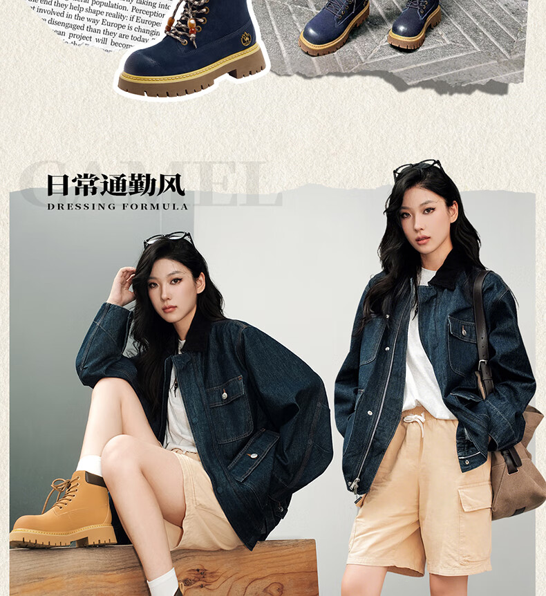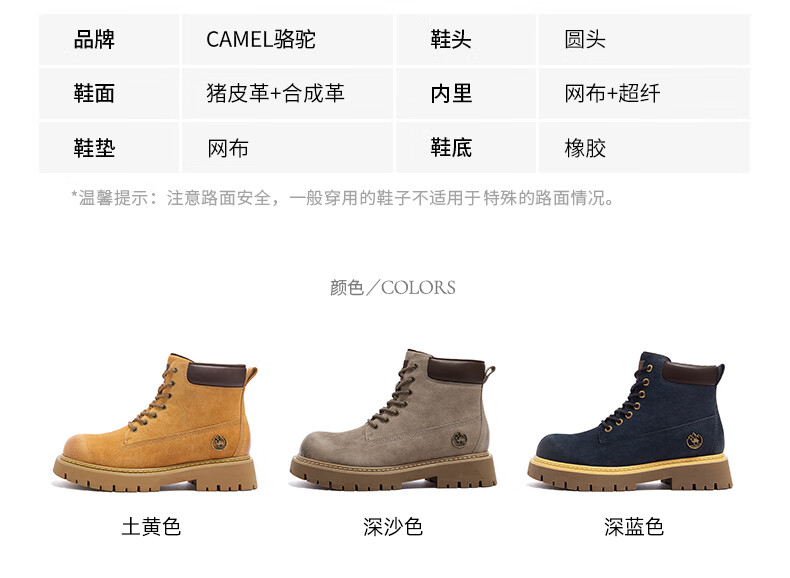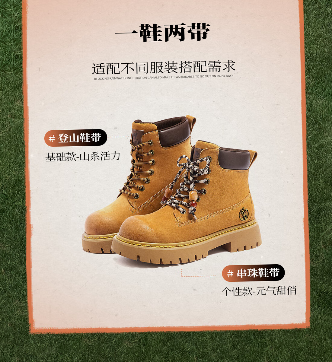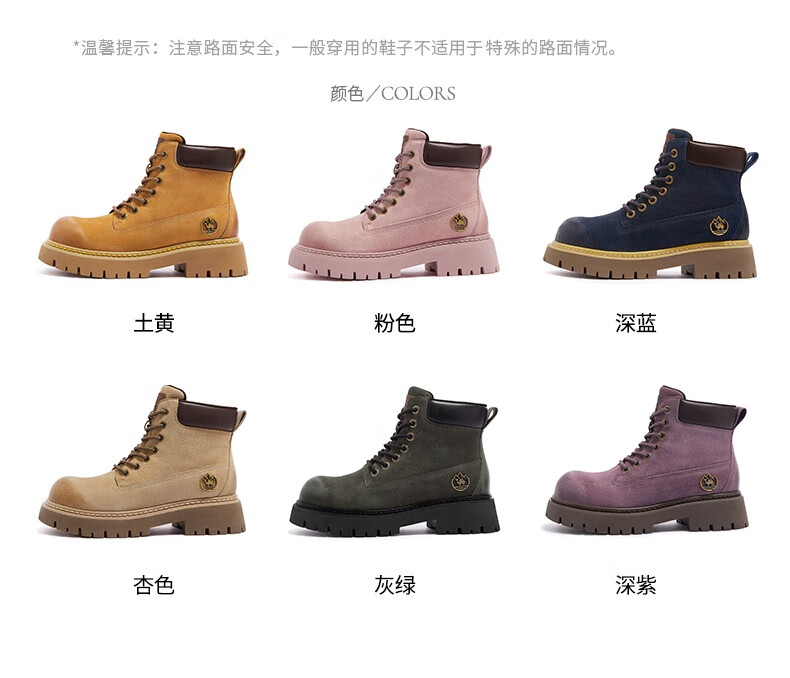 骆驼(CAMEL)【山越】工装靴女新潮厚底马丁靴 L25W076018 土黄(反绒皮) 36