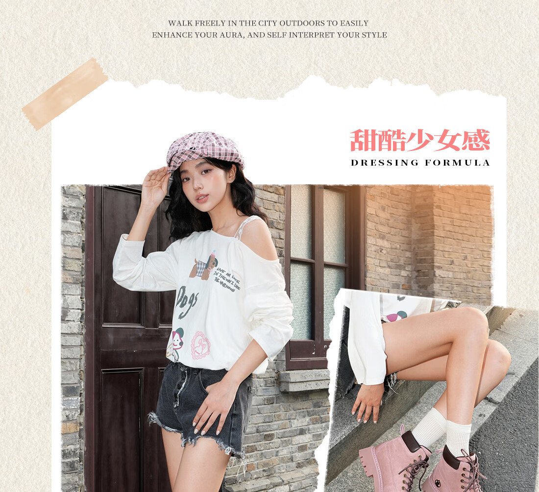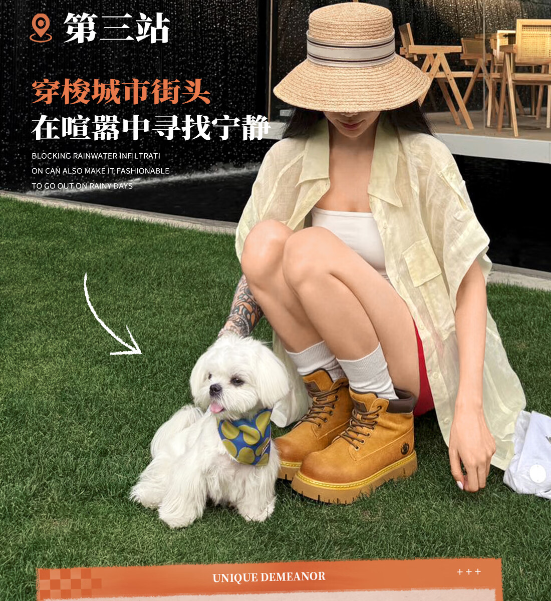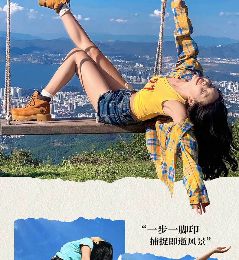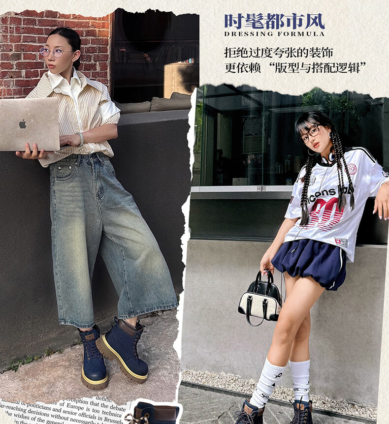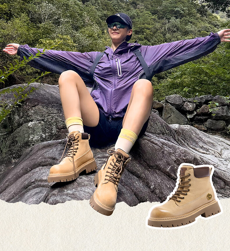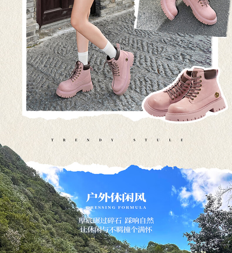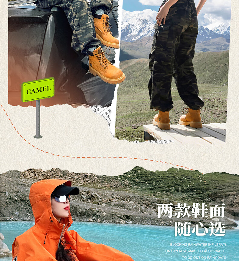 骆驼(CAMEL)【山越】工装靴女新潮厚底马丁靴 L25W076018 土黄(反绒皮) 36