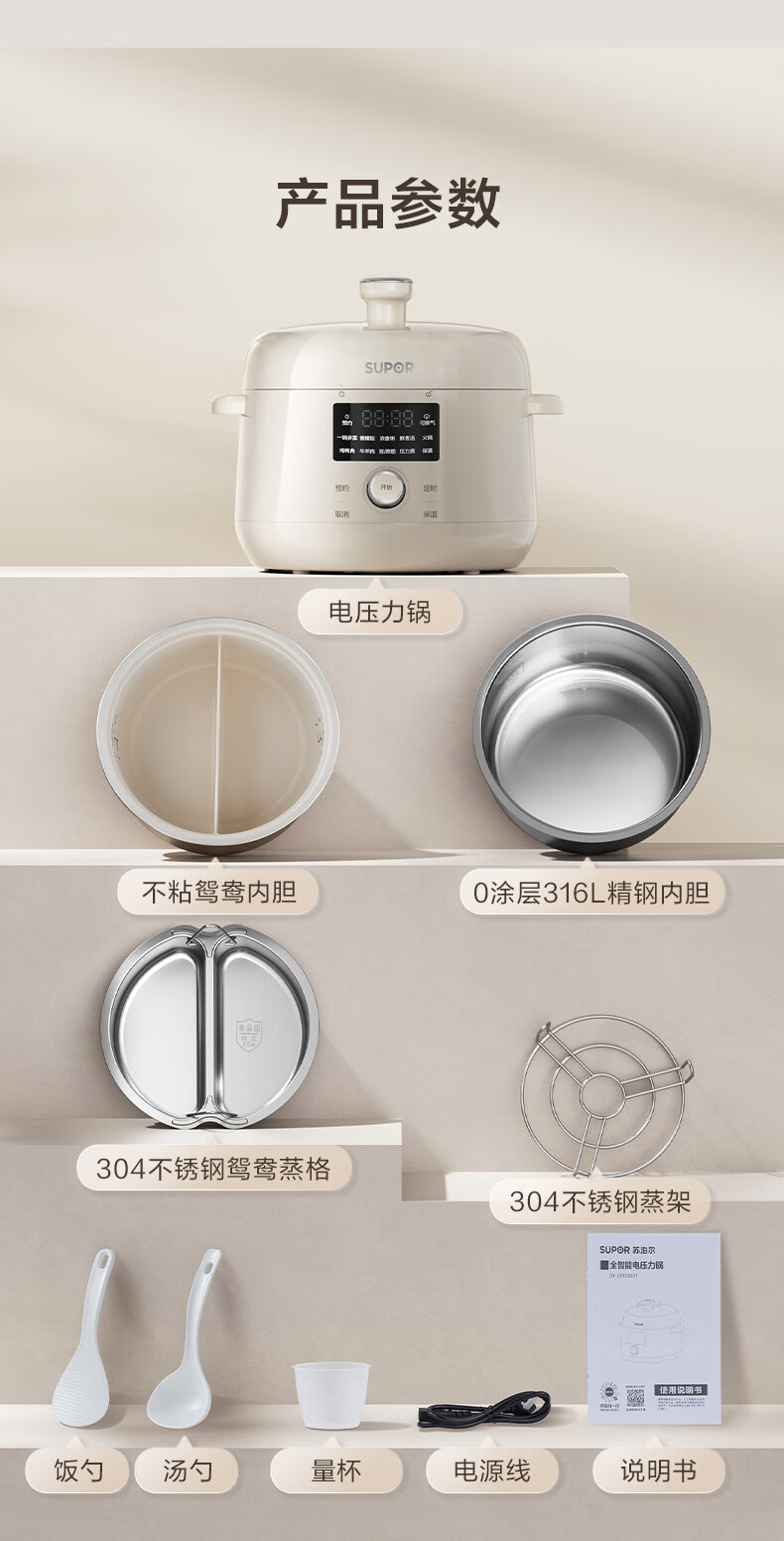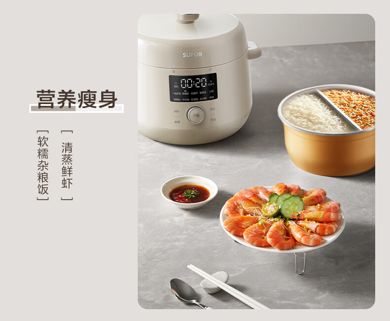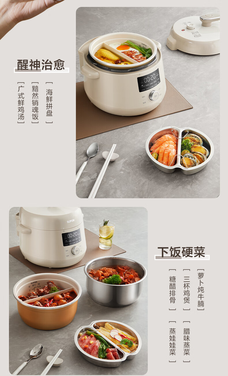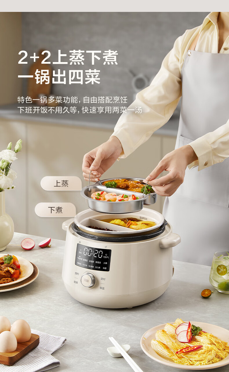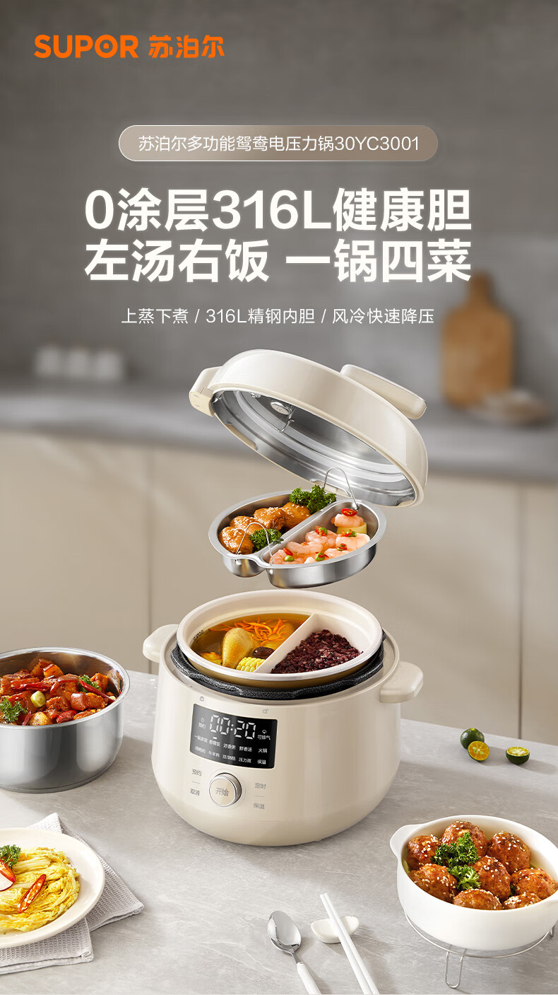 苏泊尔(SUPOR)鸳鸯电压力锅3L 多功能0涂层钢胆2-4人家用 风冷降压电饭煲电炖锅高压锅SY-30YC3001