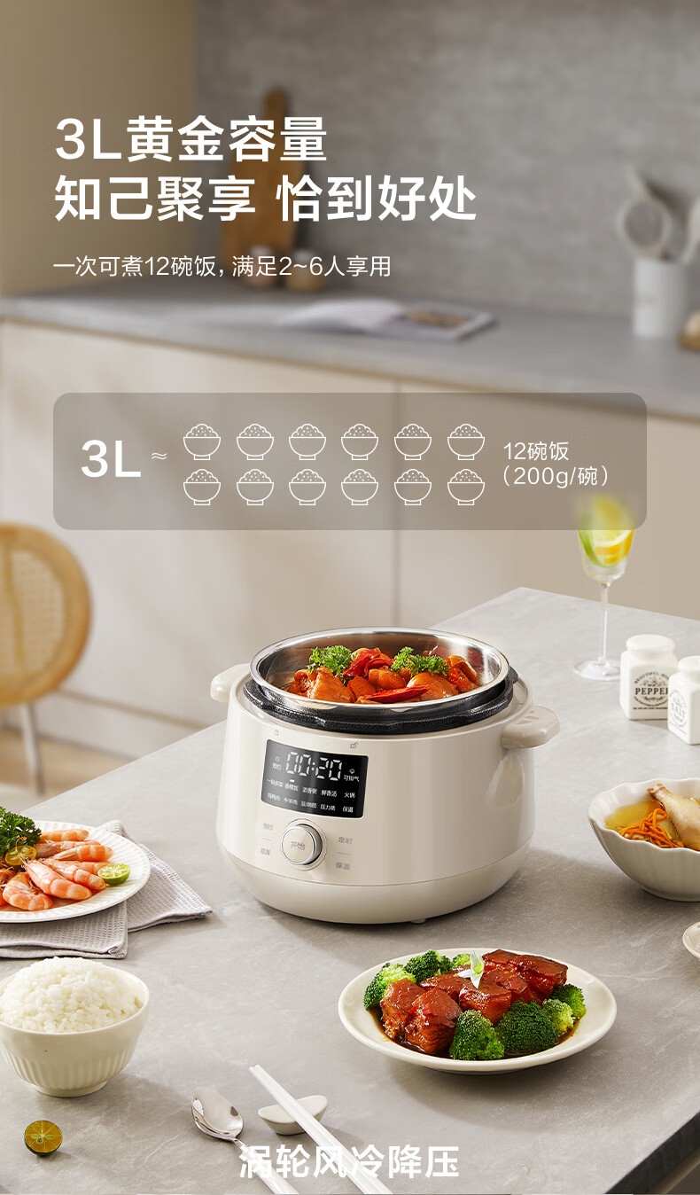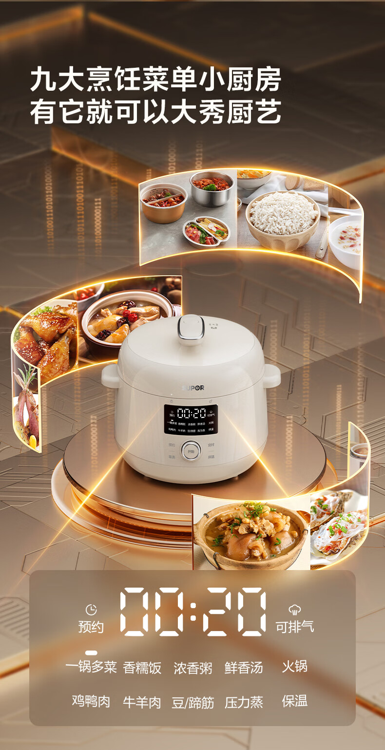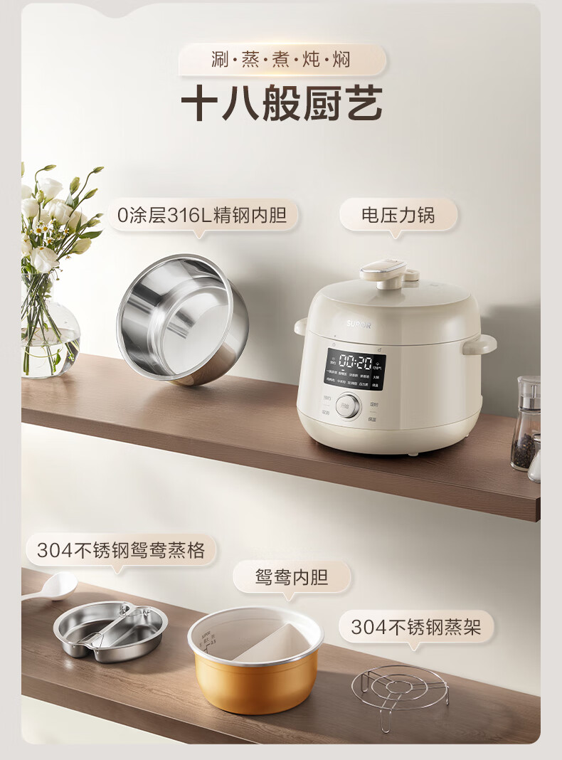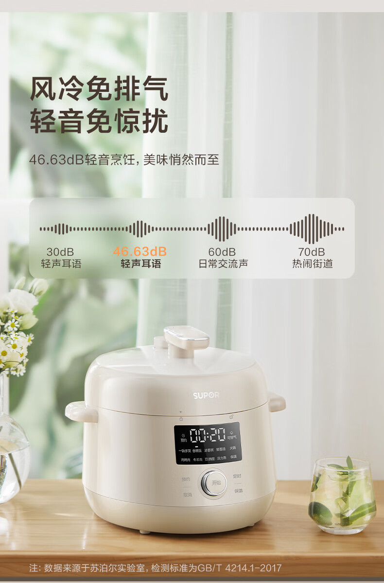 苏泊尔(SUPOR)鸳鸯电压力锅3L 多功能0涂层钢胆2-4人家用 风冷降压电饭煲电炖锅高压锅SY-30YC3001
