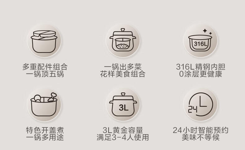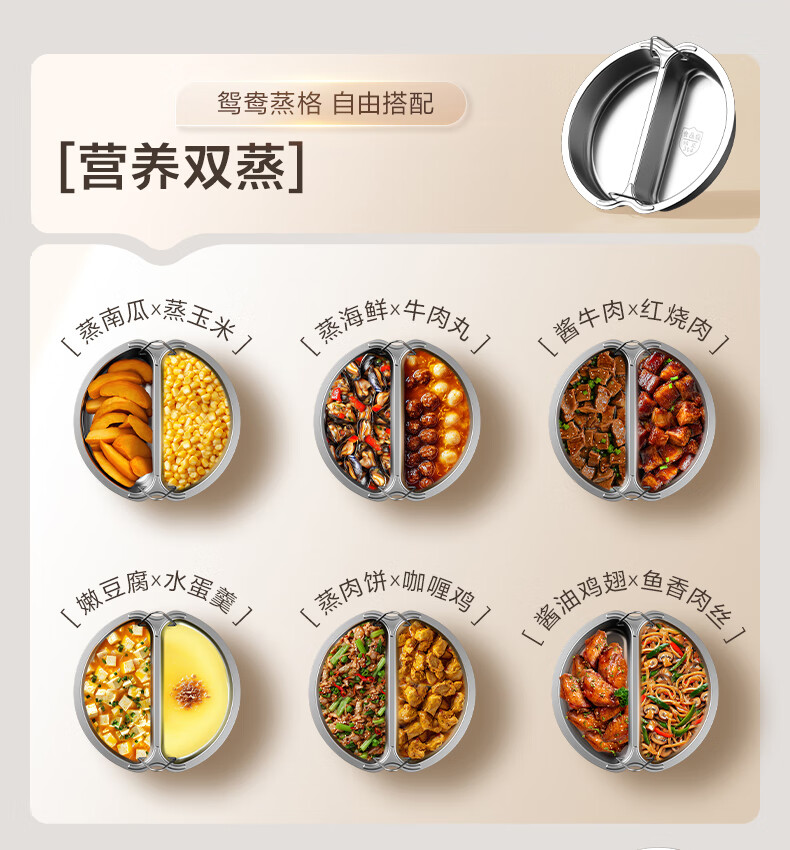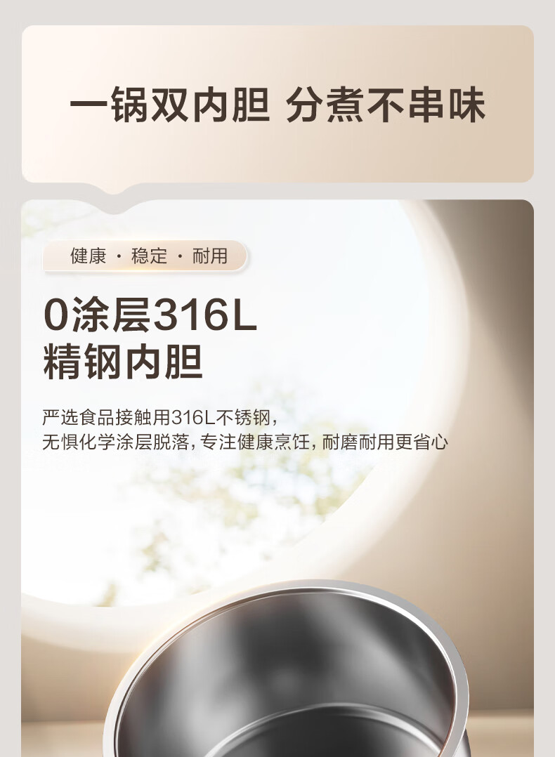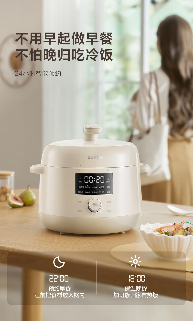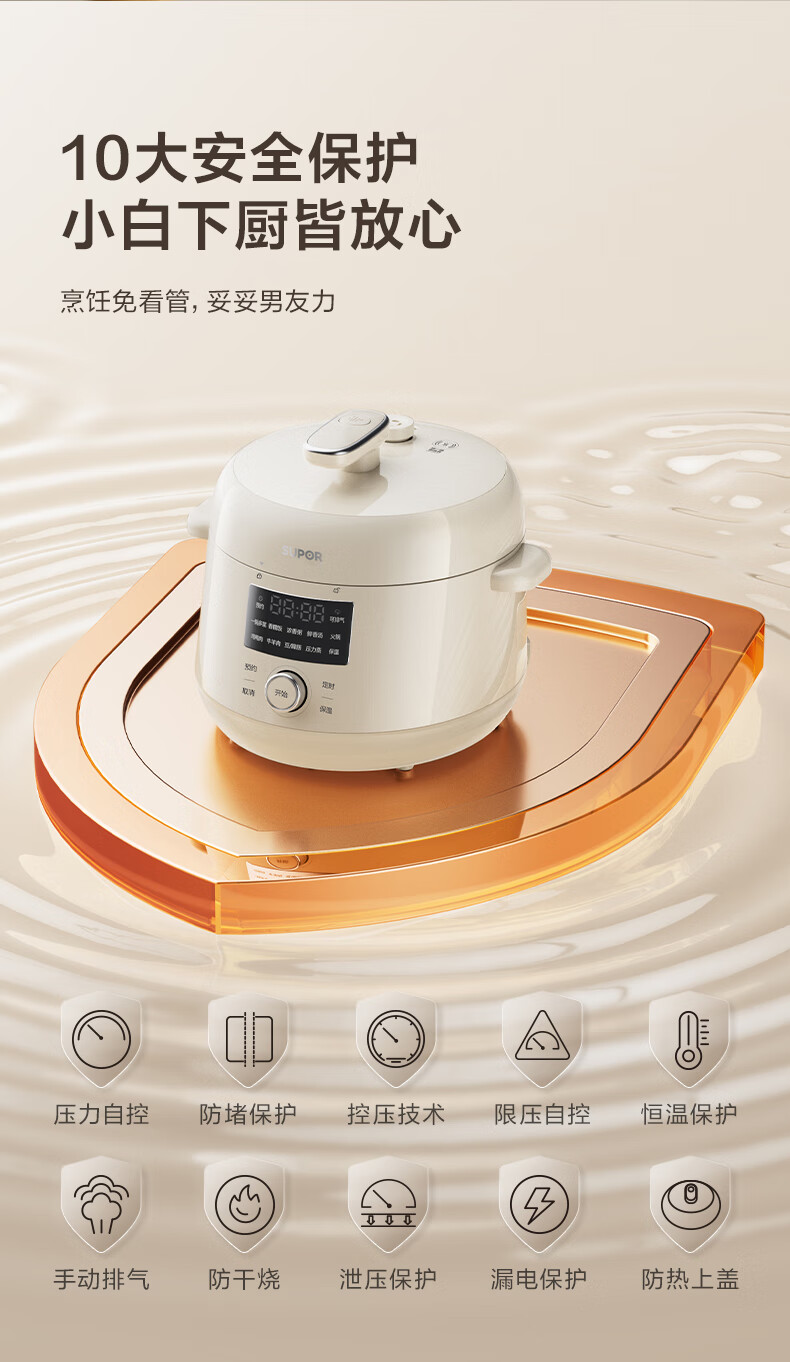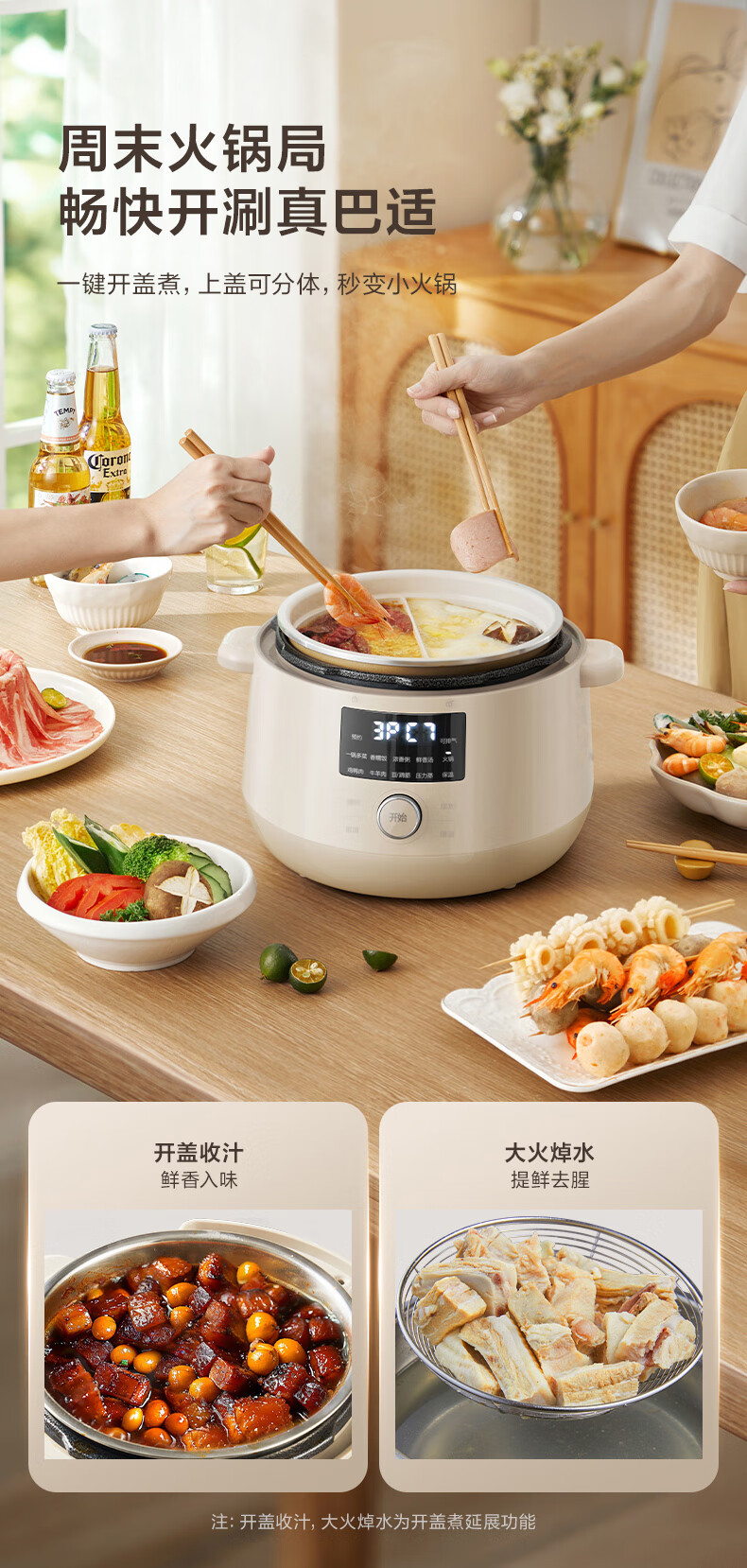 苏泊尔(SUPOR)鸳鸯电压力锅3L 多功能0涂层钢胆2-4人家用 风冷降压电饭煲电炖锅高压锅SY-30YC3001