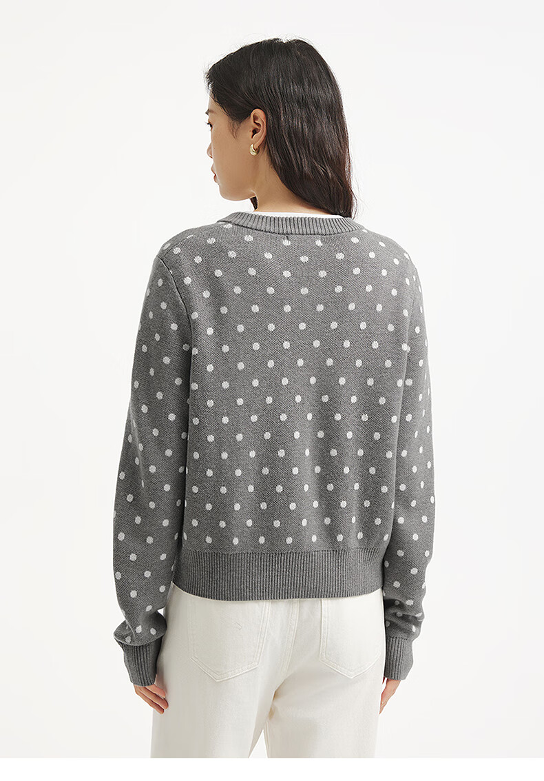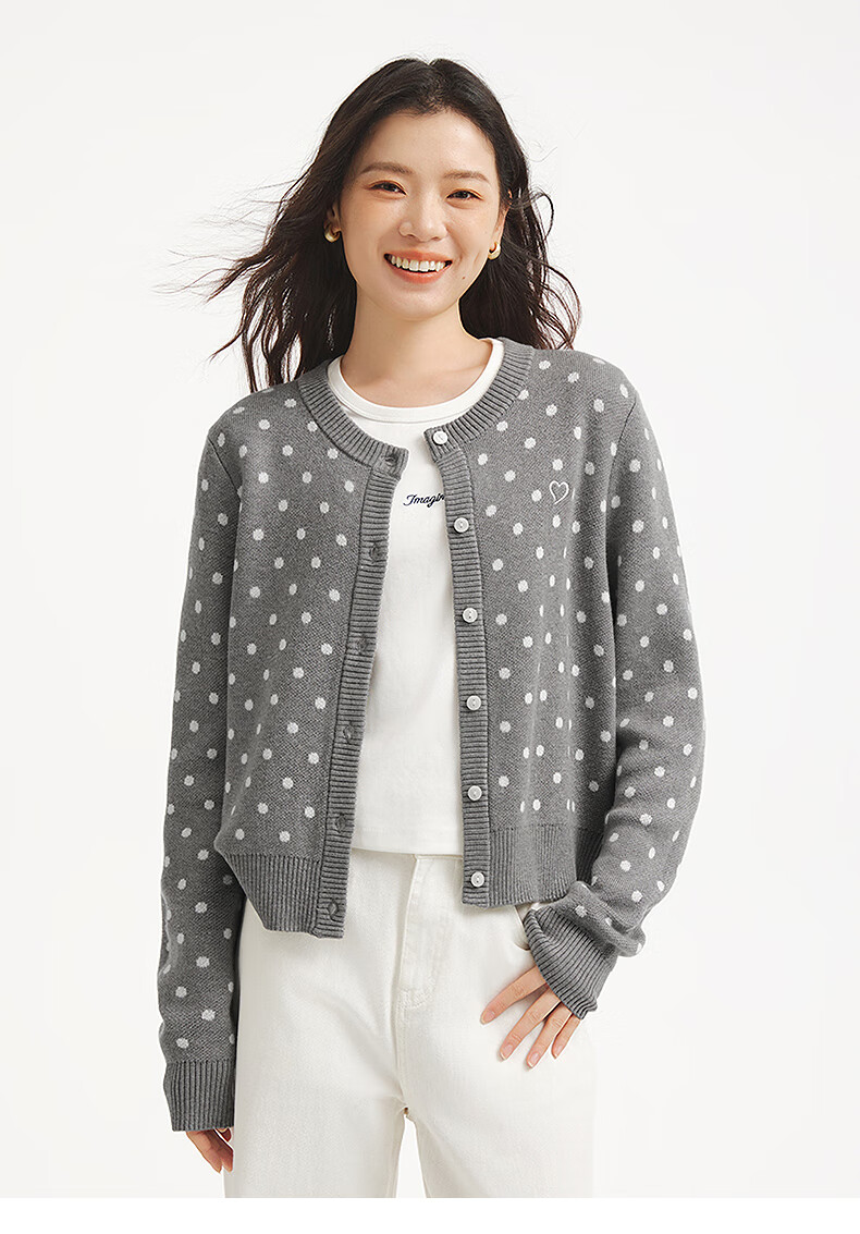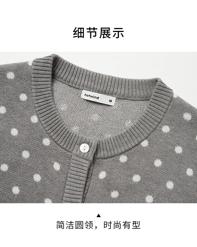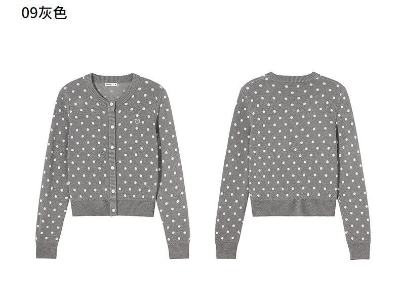 热风【商场同款】女士开衫针织衫25年秋新款法式波点气质打底衫上衣 09灰色 S