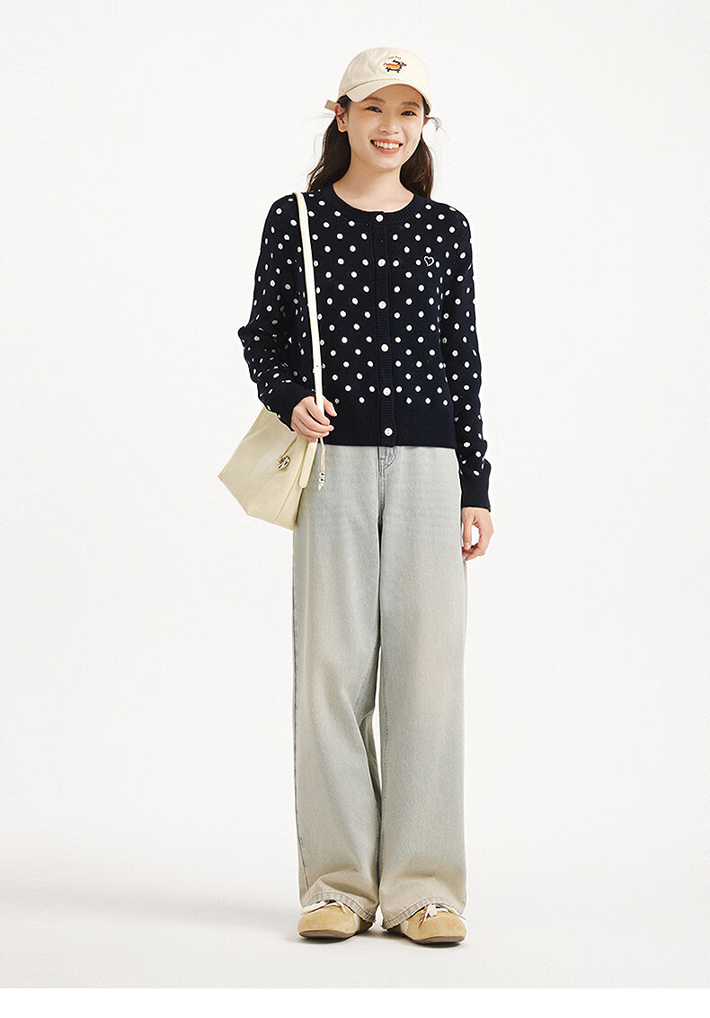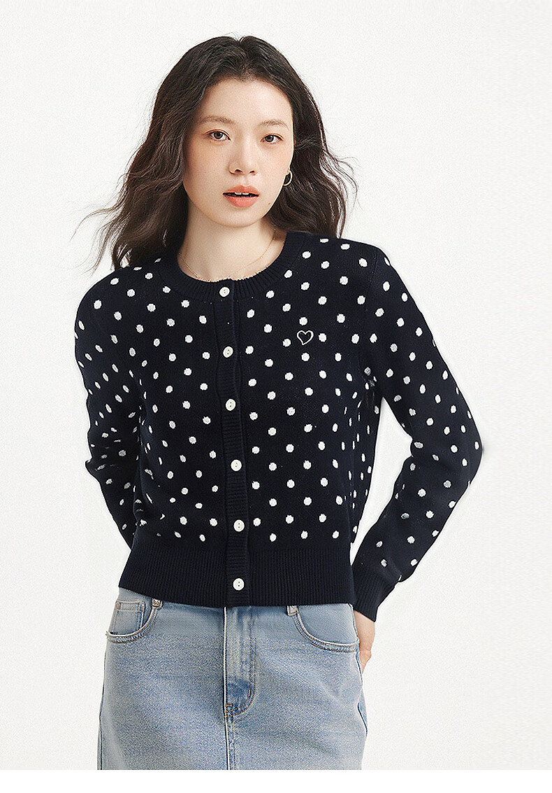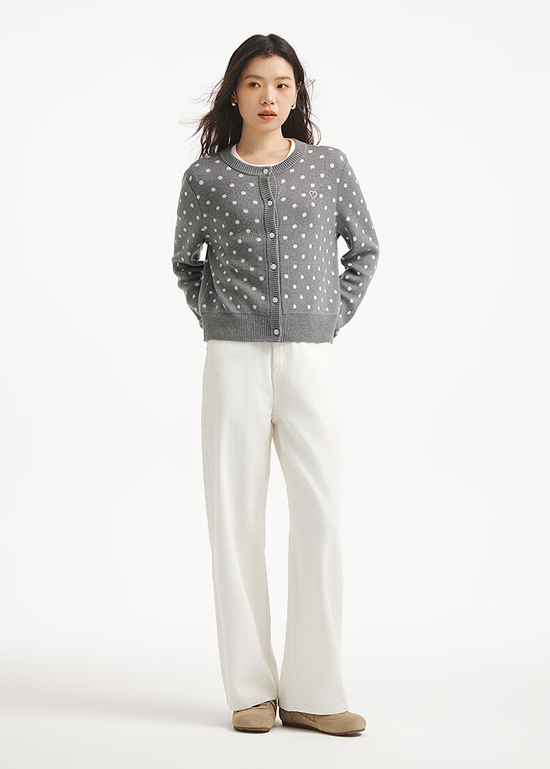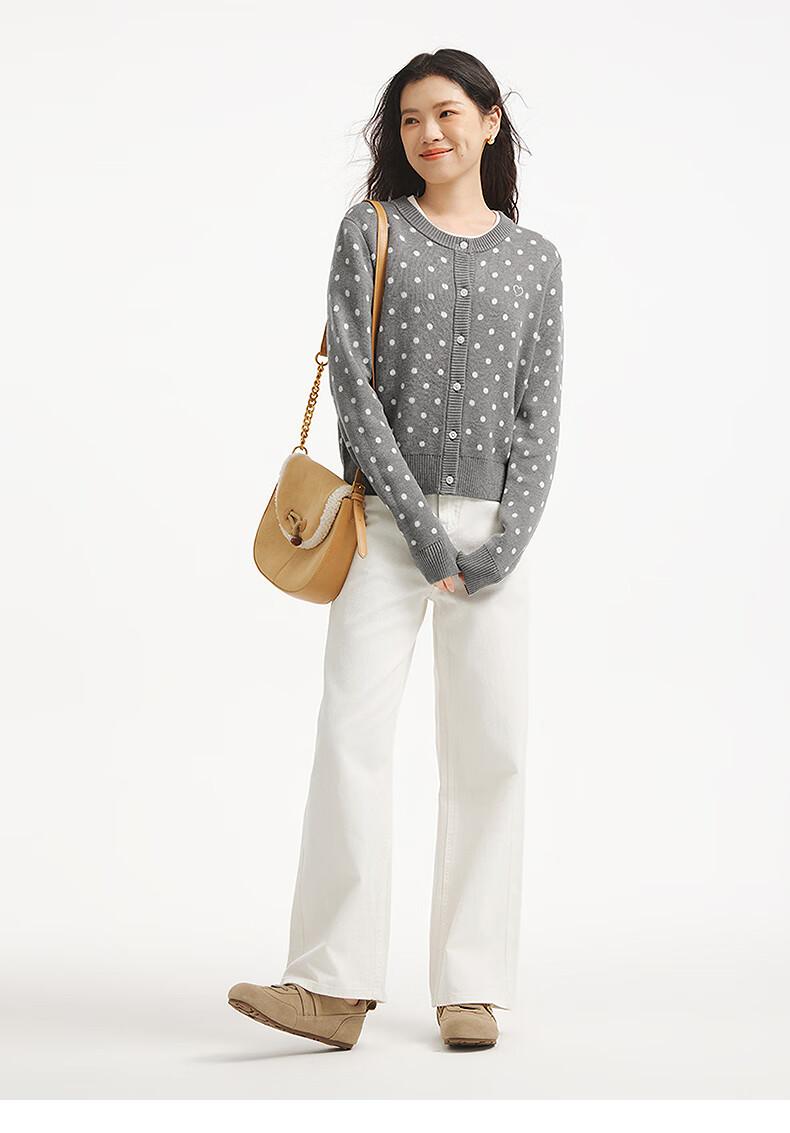 热风【商场同款】女士开衫针织衫25年秋新款法式波点气质打底衫上衣 09灰色 S