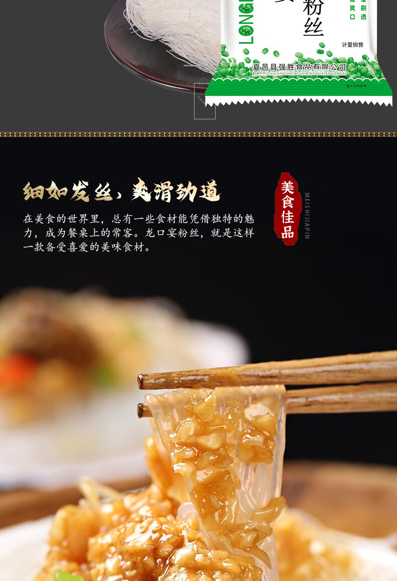 山东龙口风味粉丝白扇贝蒜蓉生蚝凉拌豌豆龙须干米粉商用丝粉 粉丝100克*5包装(活动)