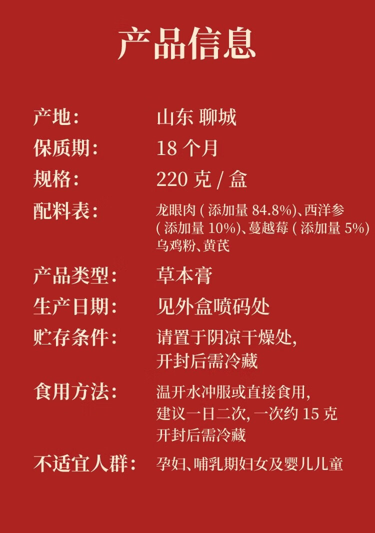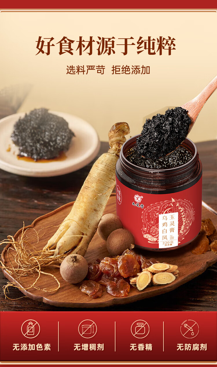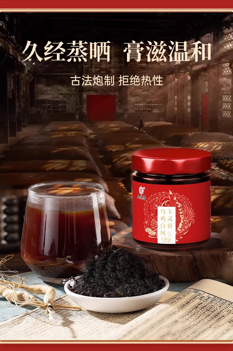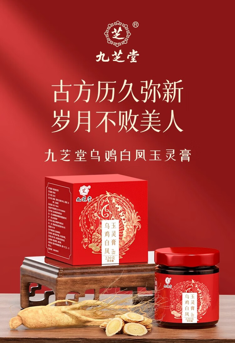九芝堂乌鸡白凤玉灵膏220g补气血桂圆西洋参黄芪手工蒸制女性营养品送礼