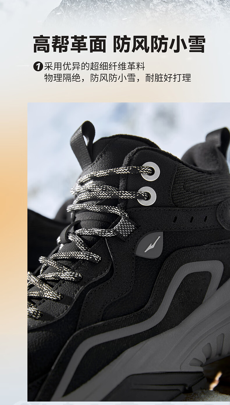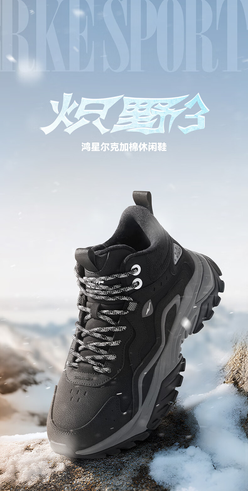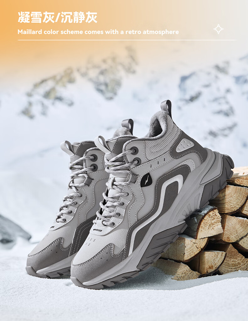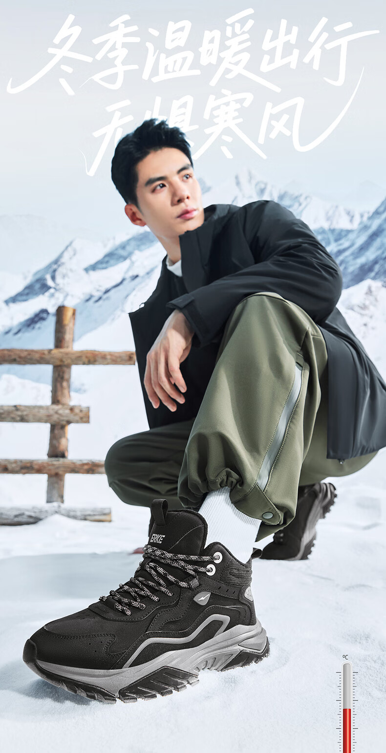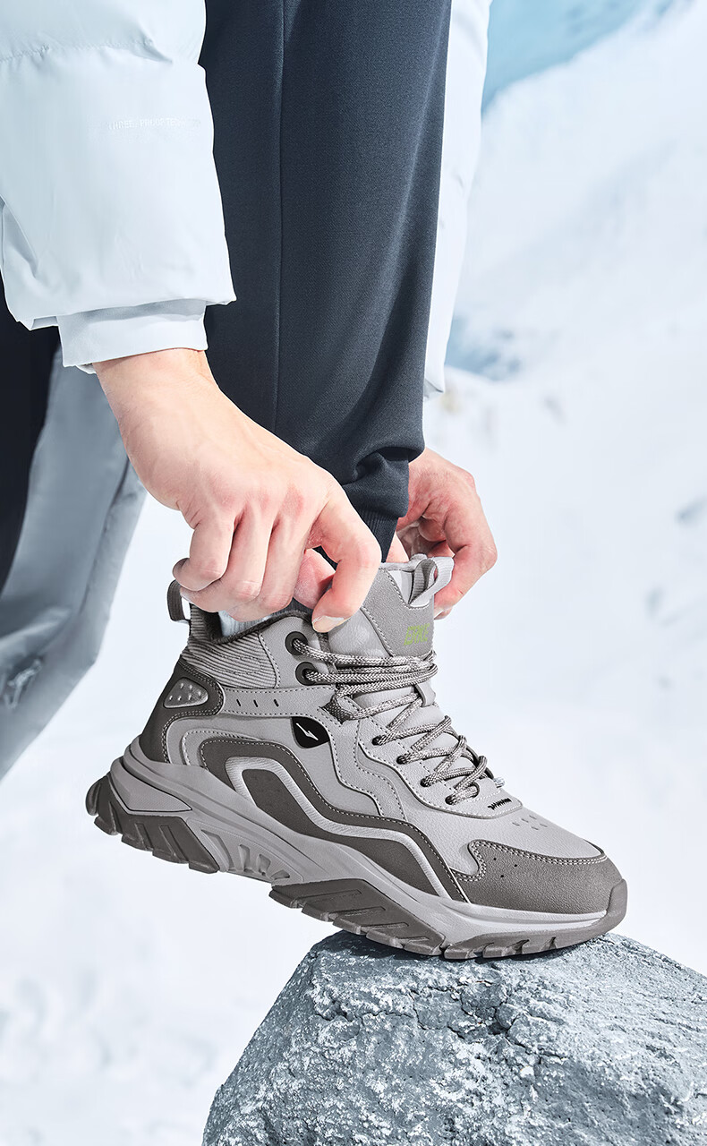 鸿星尔克男鞋高帮棉鞋保暖增高防滑运动鞋子男休闲鞋炽野3
