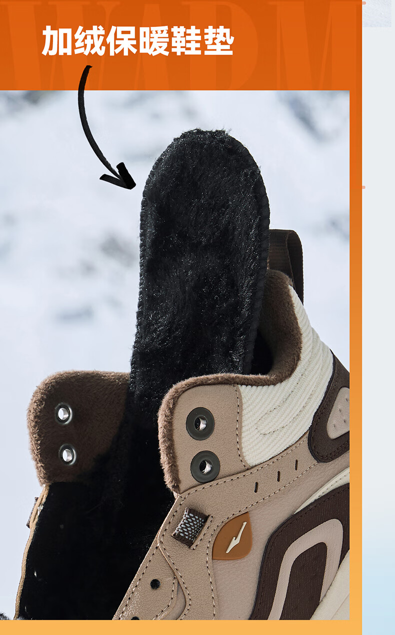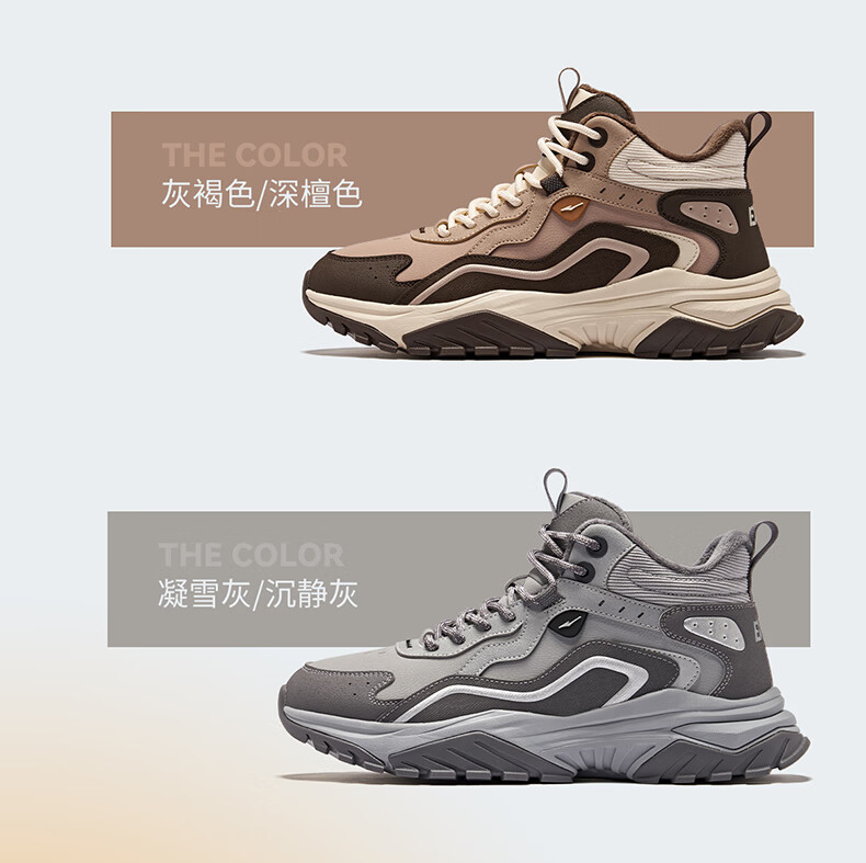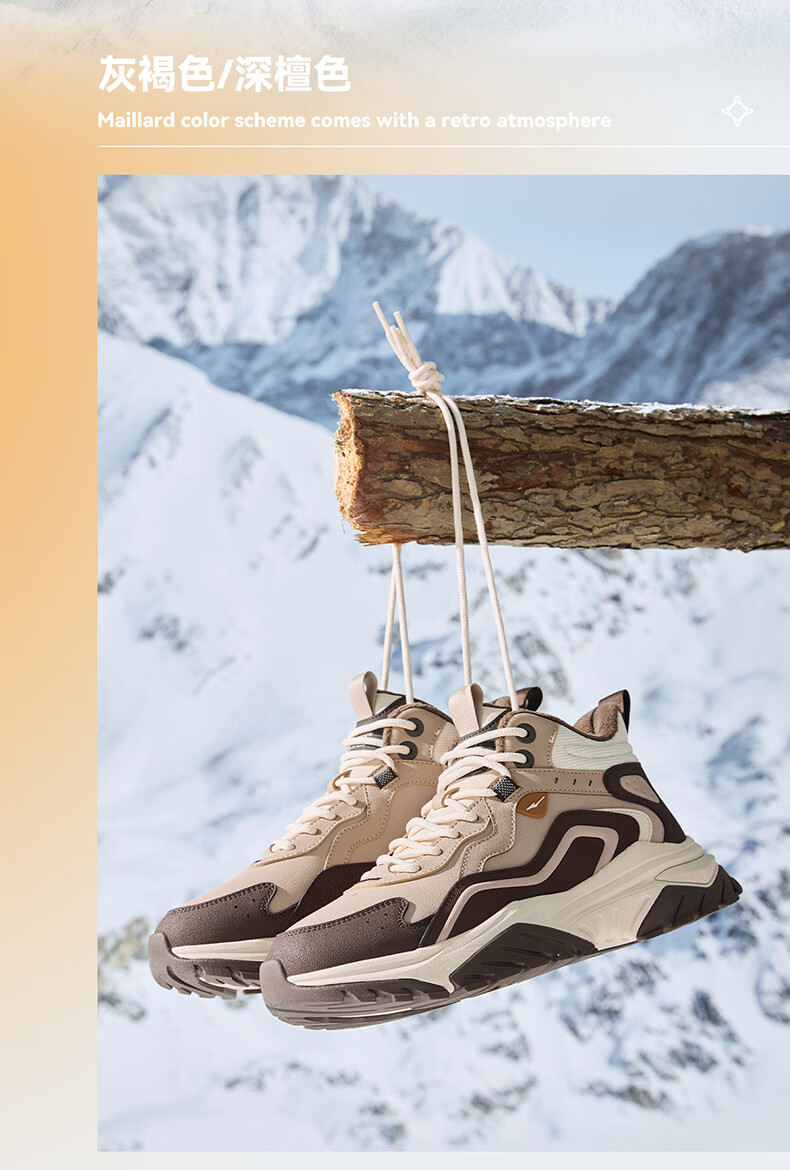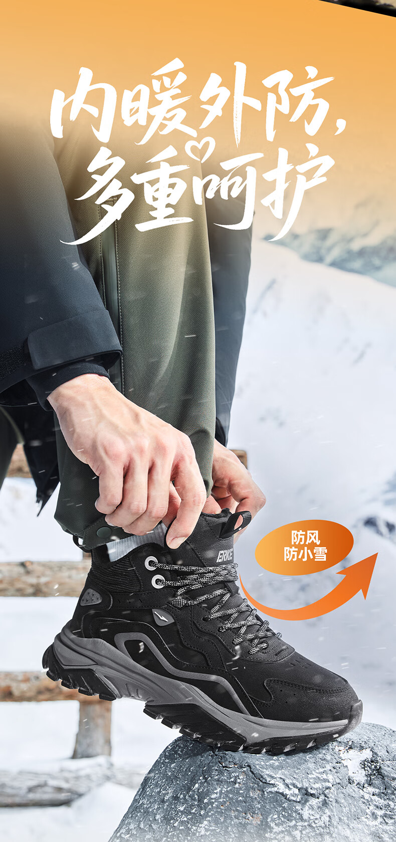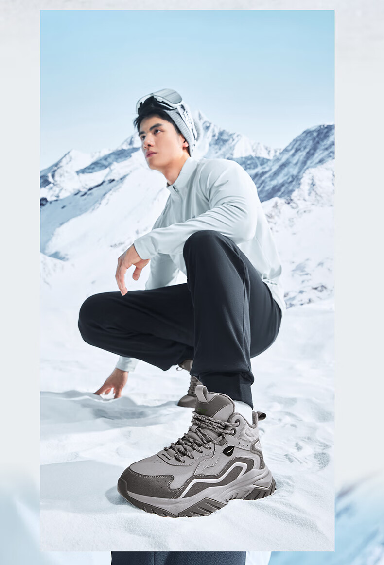 鸿星尔克男鞋高帮棉鞋保暖增高防滑运动鞋子男休闲鞋炽野3