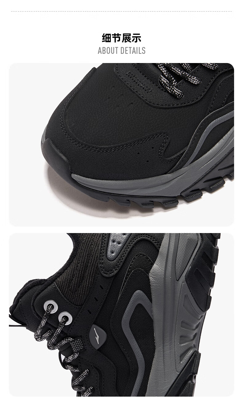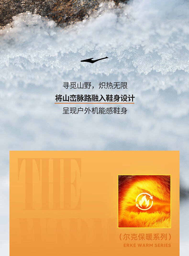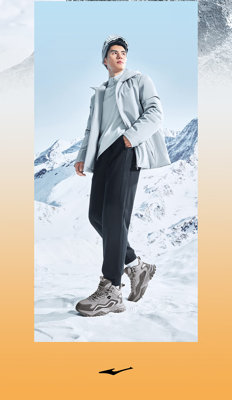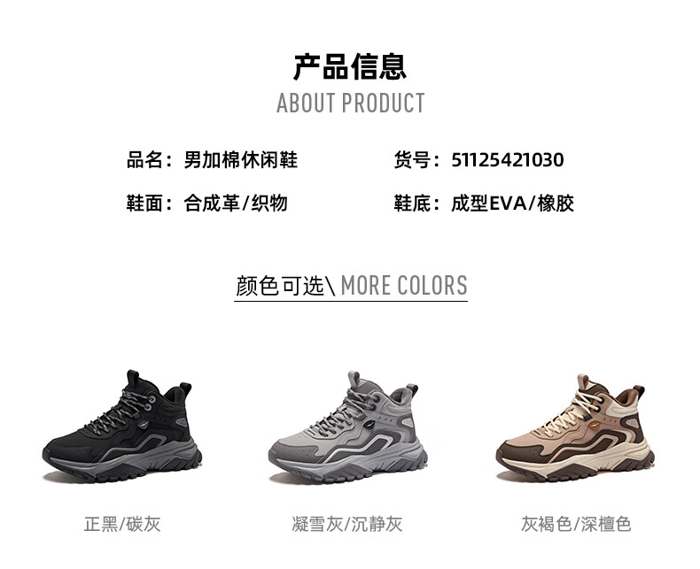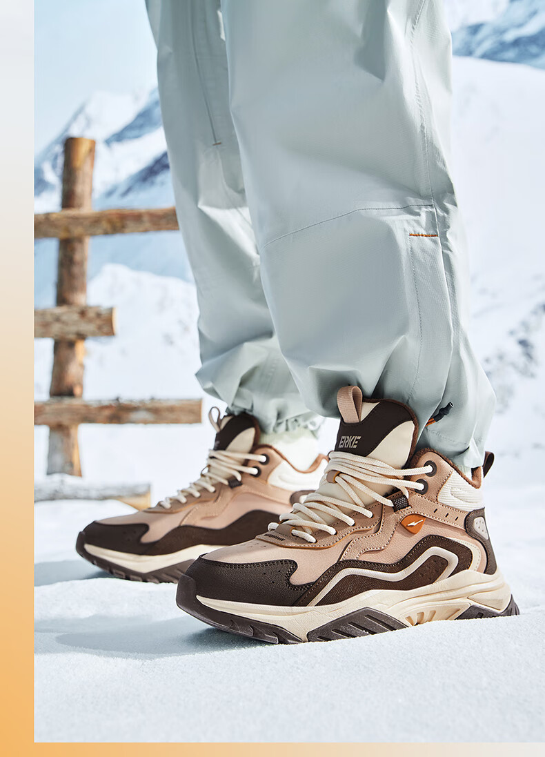 鸿星尔克男鞋高帮棉鞋保暖增高防滑运动鞋子男休闲鞋炽野3