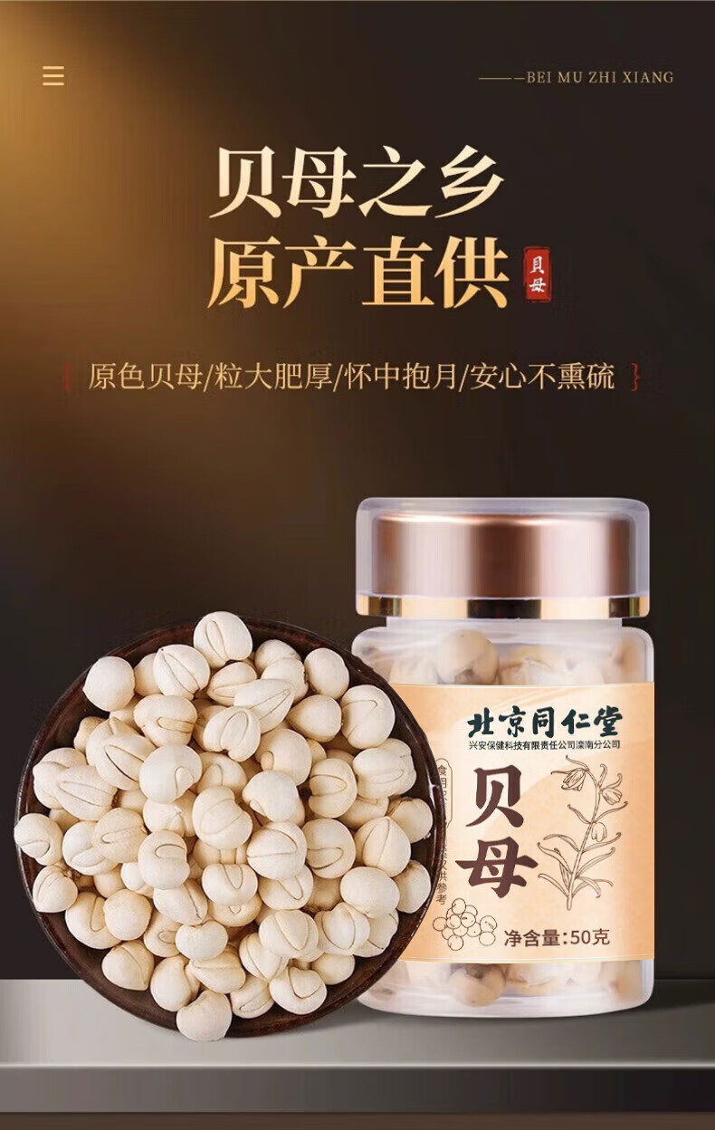沈家村北京同仁堂川贝母正宗特级中药材川贝润肺止化痰咳搭枇杷磨粉50g