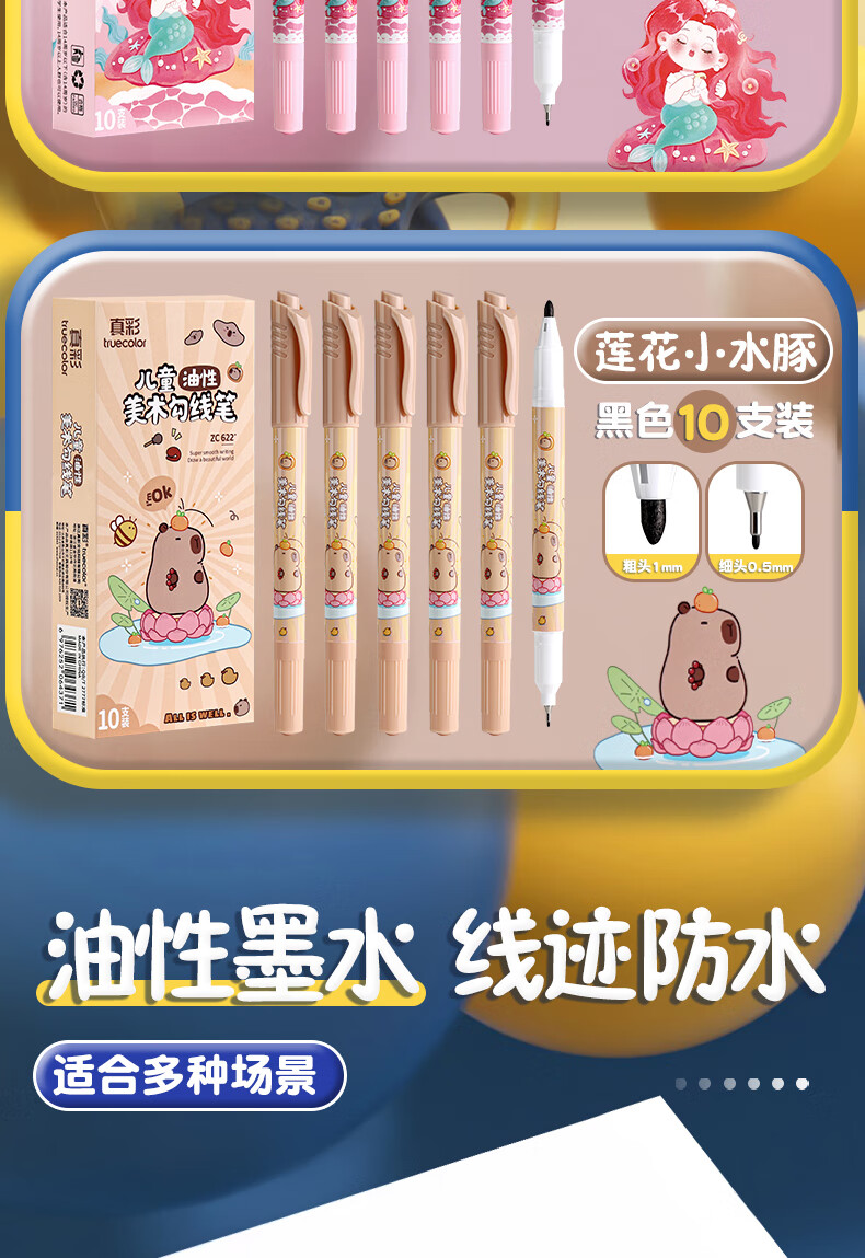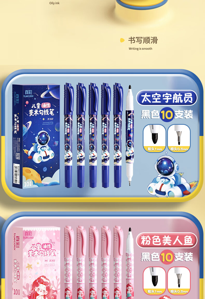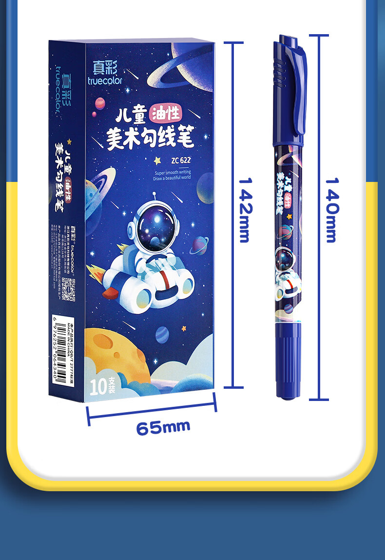 真彩(TRUECOLOR)勾线笔儿童美术勾线笔双头速干美术生专用黑色油性防水马克笔学生绘画用描边彩色涂码记号笔622B