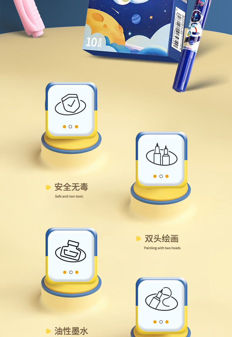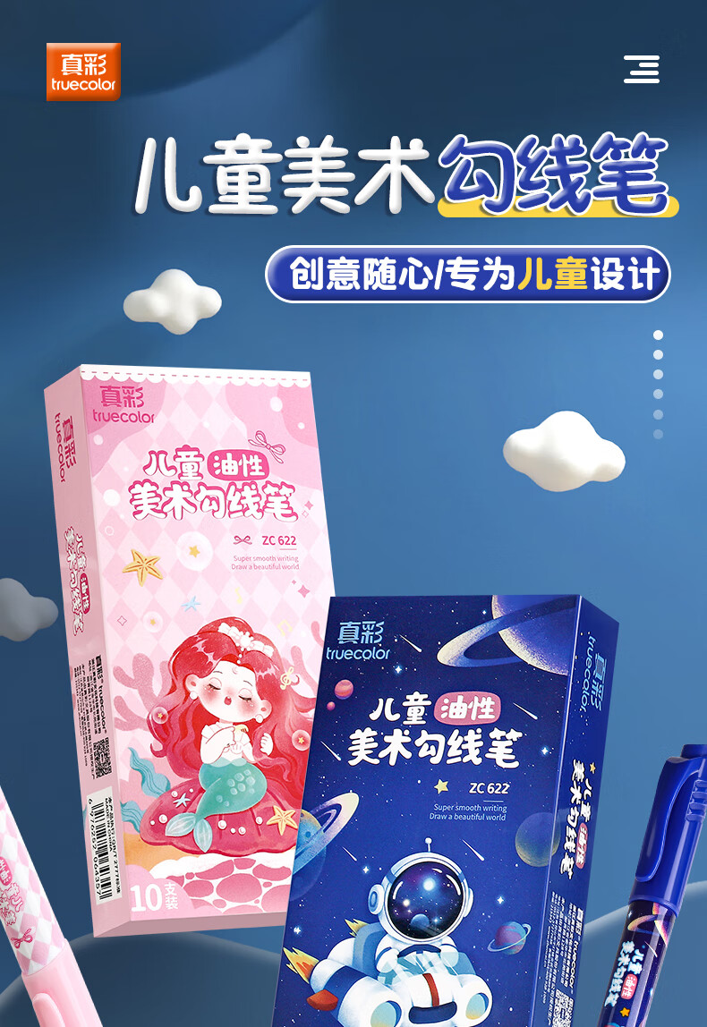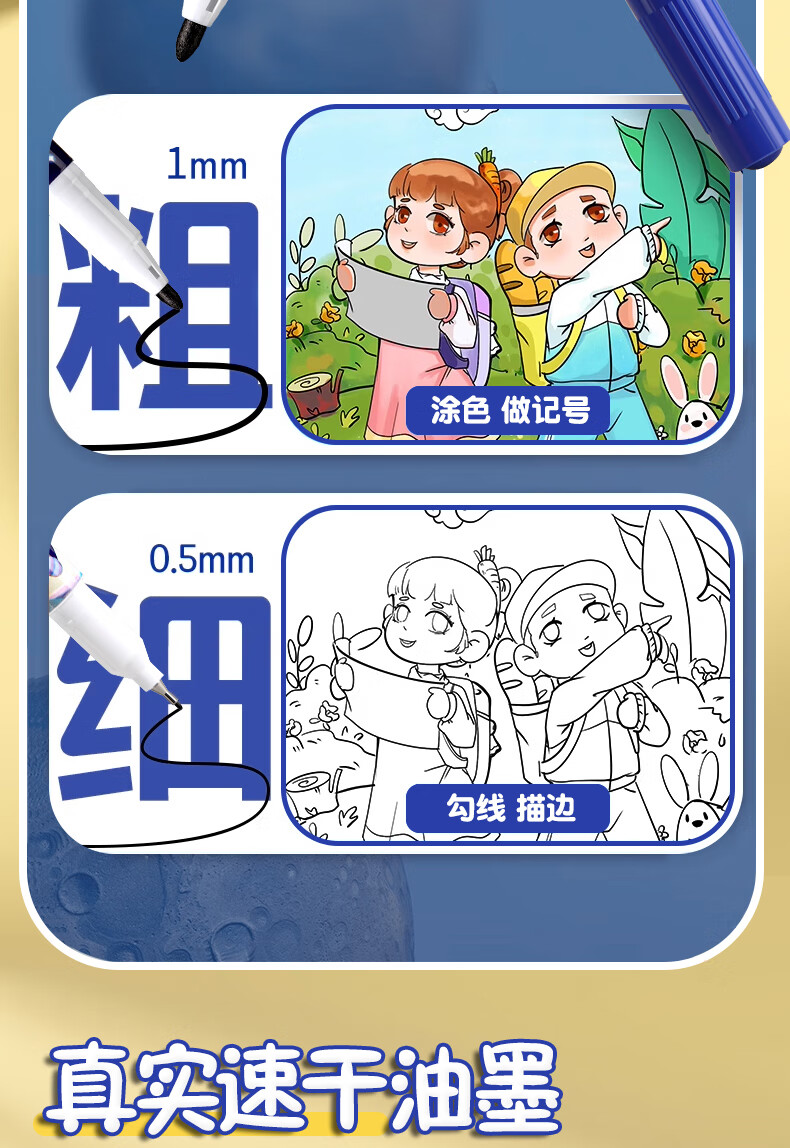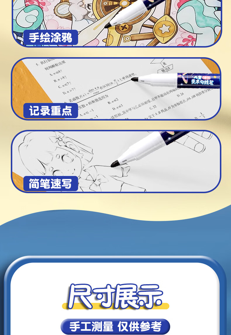 真彩(TRUECOLOR)勾线笔儿童美术勾线笔双头速干美术生专用黑色油性防水马克笔学生绘画用描边彩色涂码记号笔622B