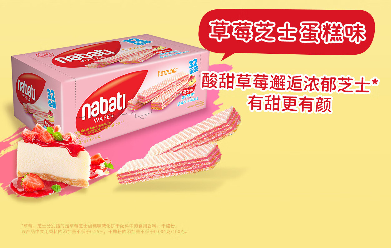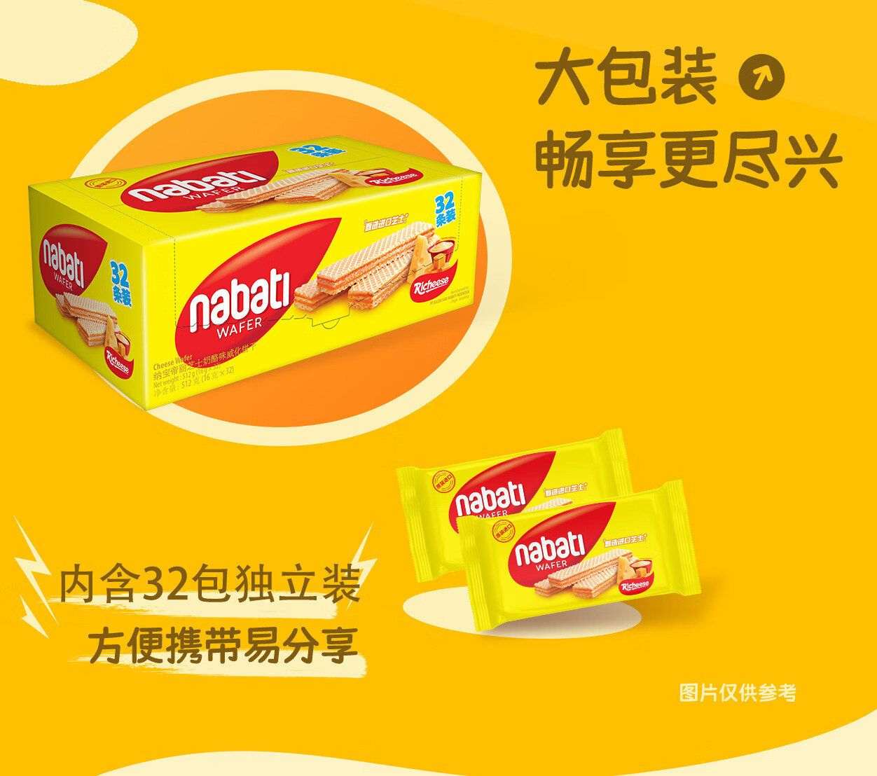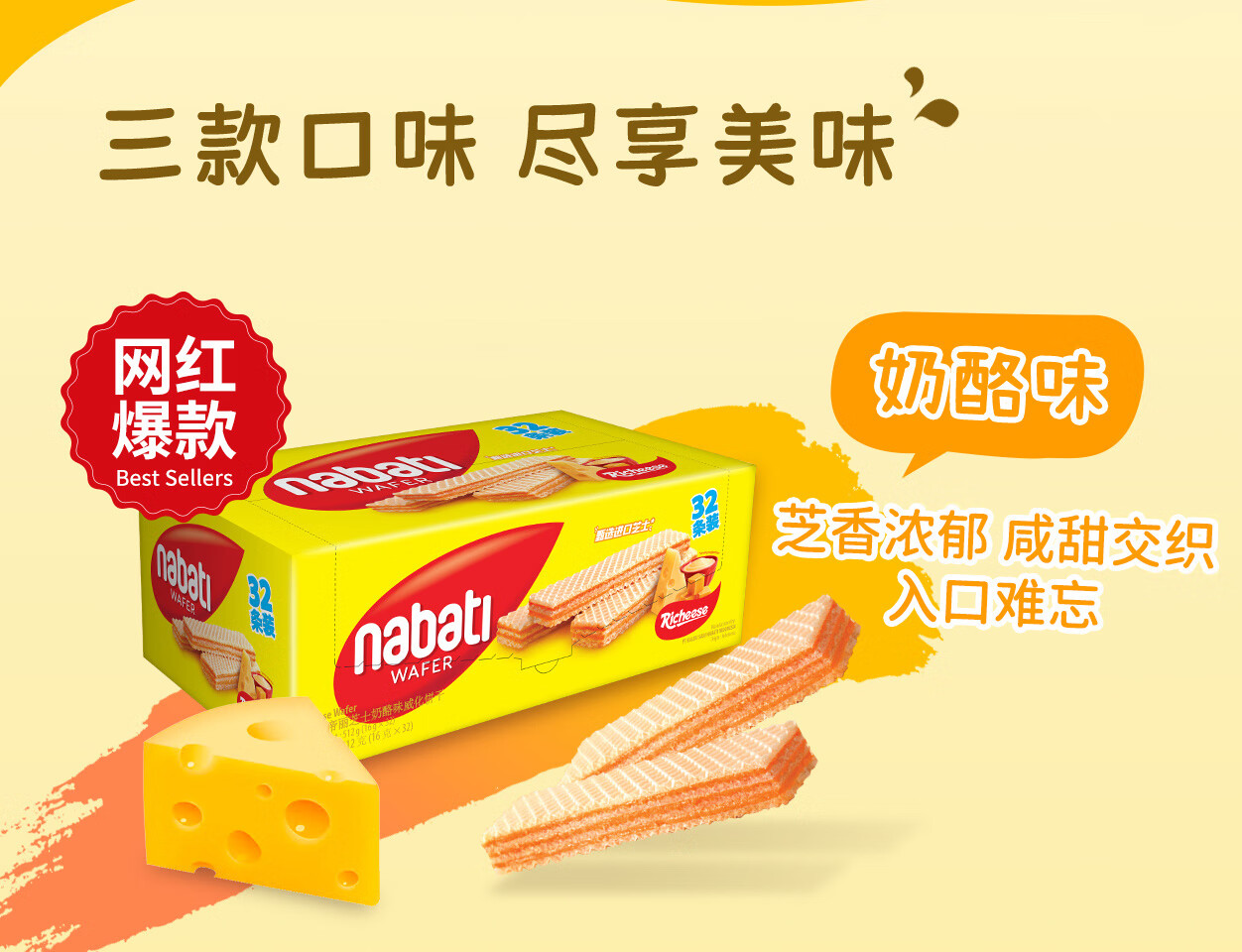 丽芝士Nabati印尼进口奶酪味威化饼干32包512g 休闲零食 早餐下午茶团购