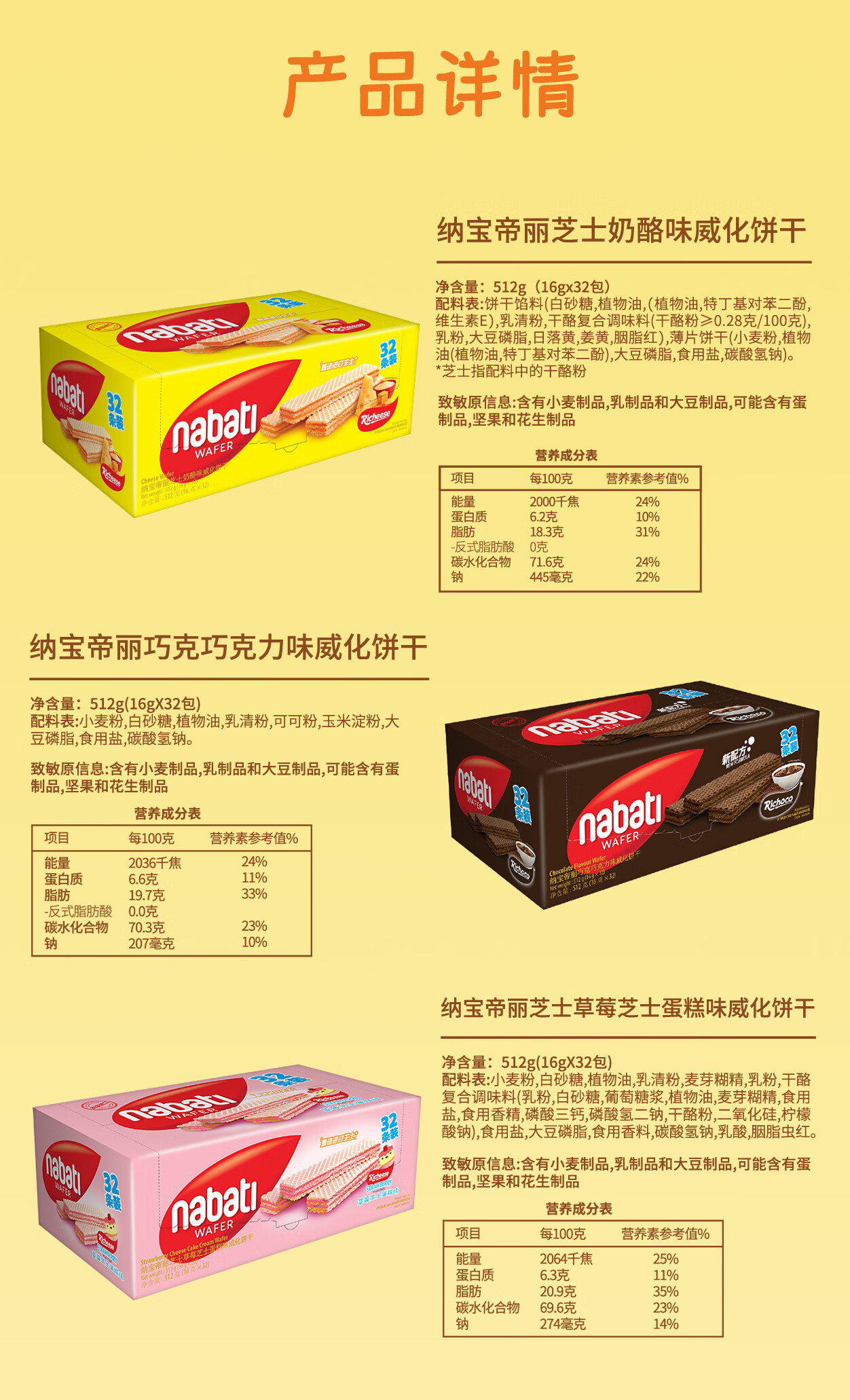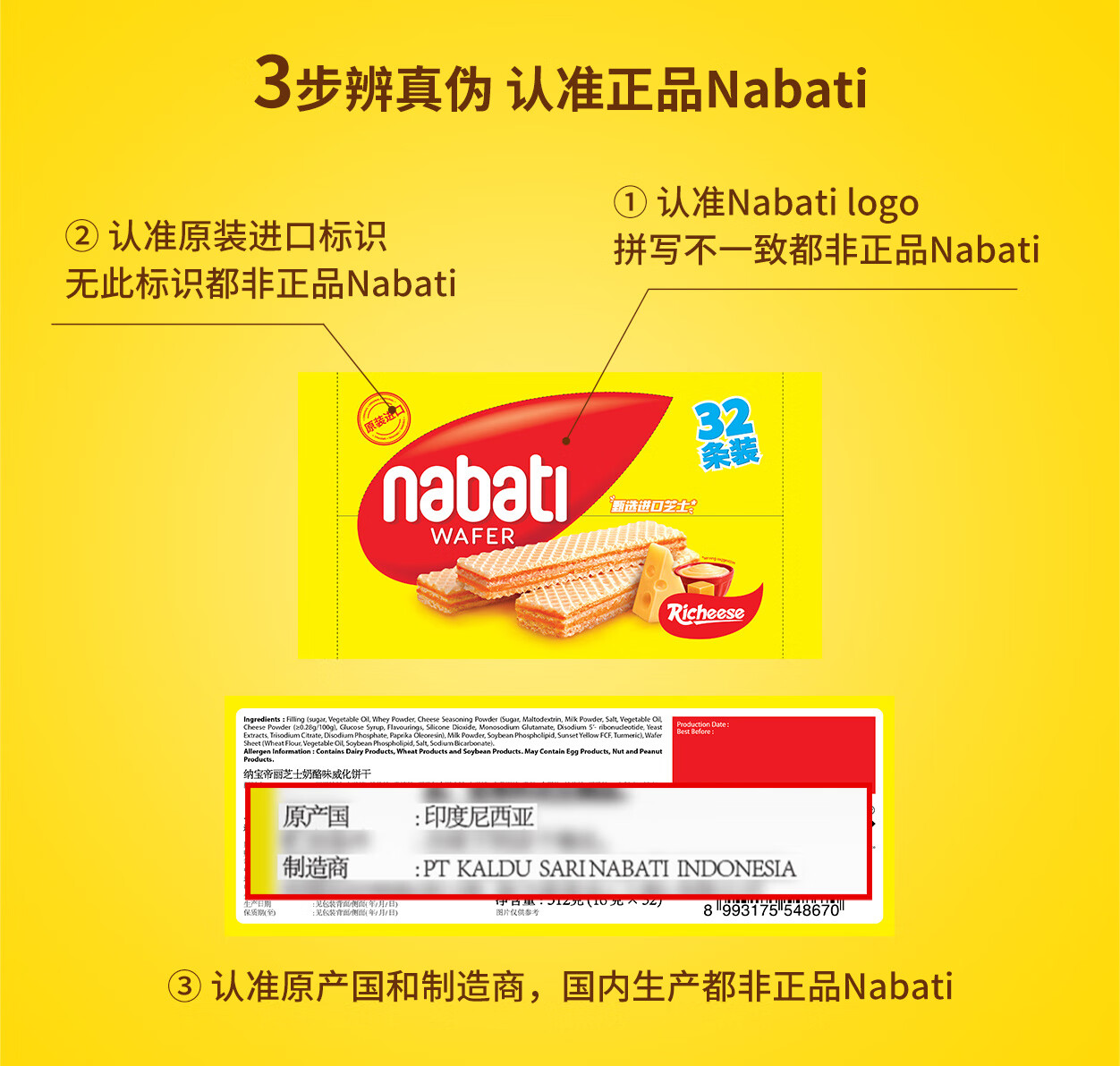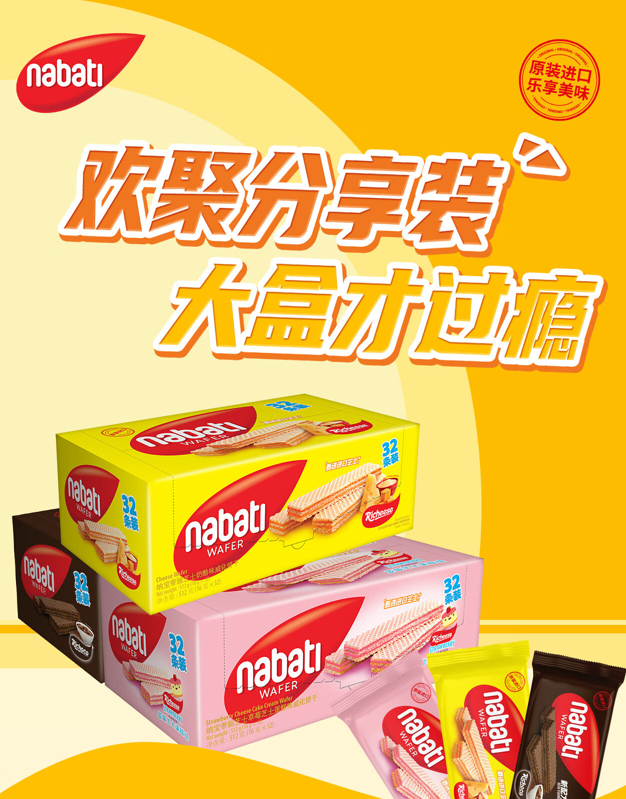 丽芝士Nabati印尼进口奶酪味威化饼干32包512g 休闲零食 早餐下午茶团购