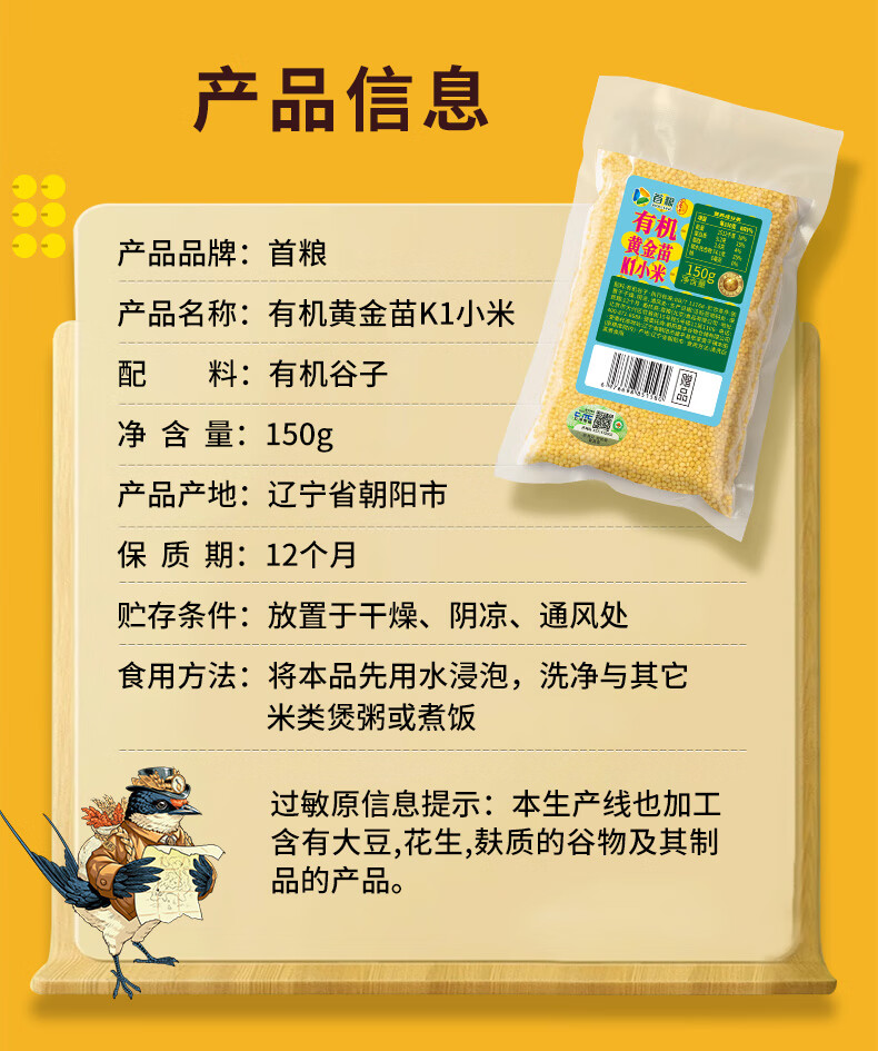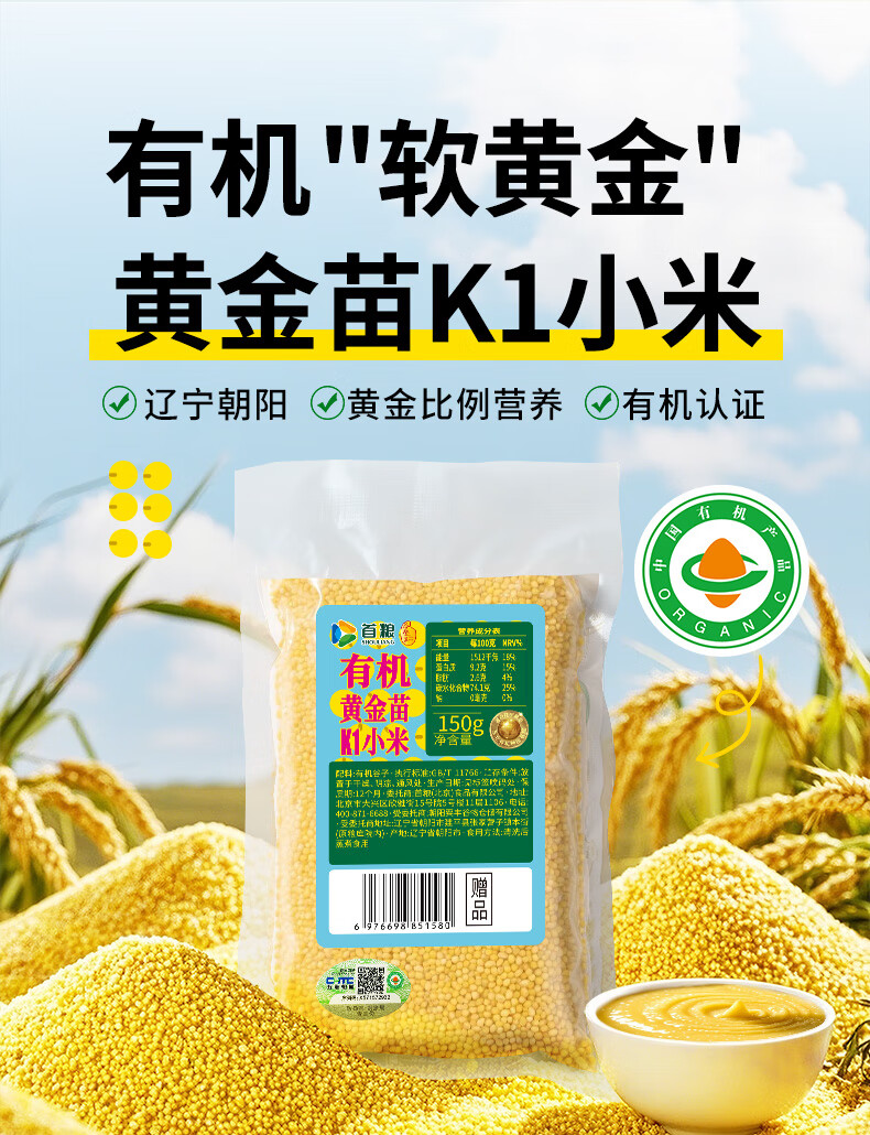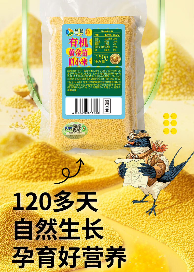首粮有机黄小米150g五谷杂粮粗粮月子米小米粥米糊米汤养胃送亲友