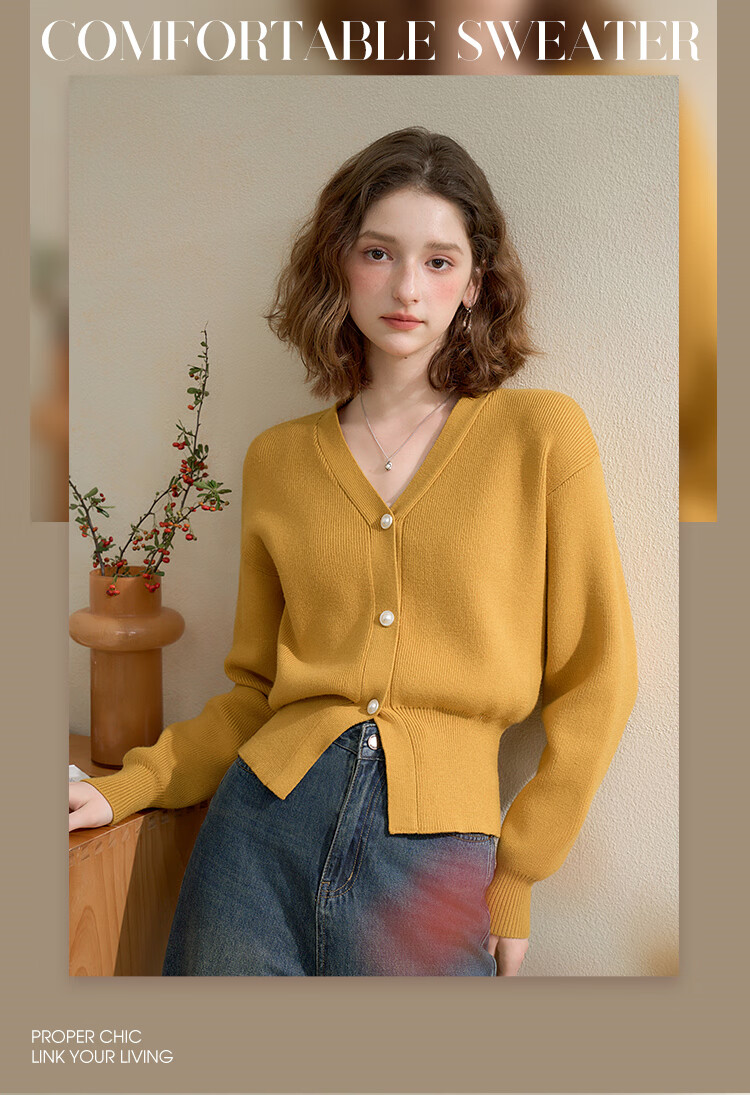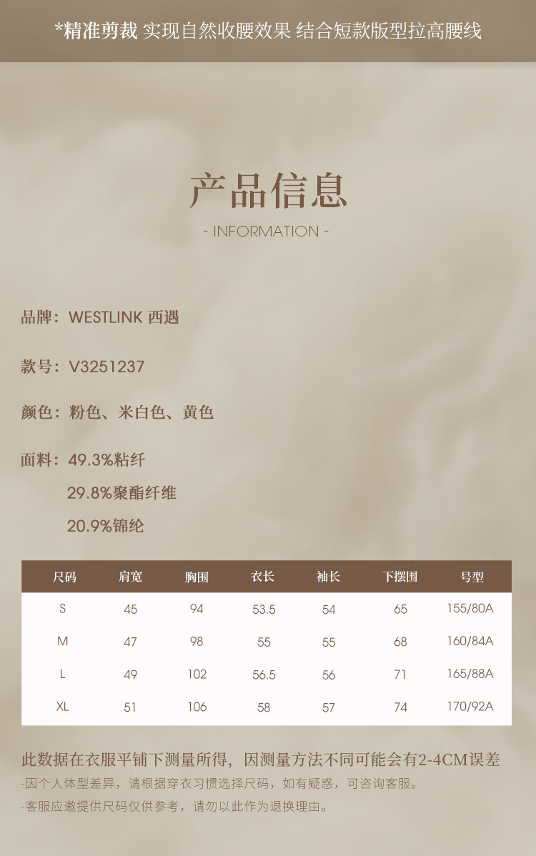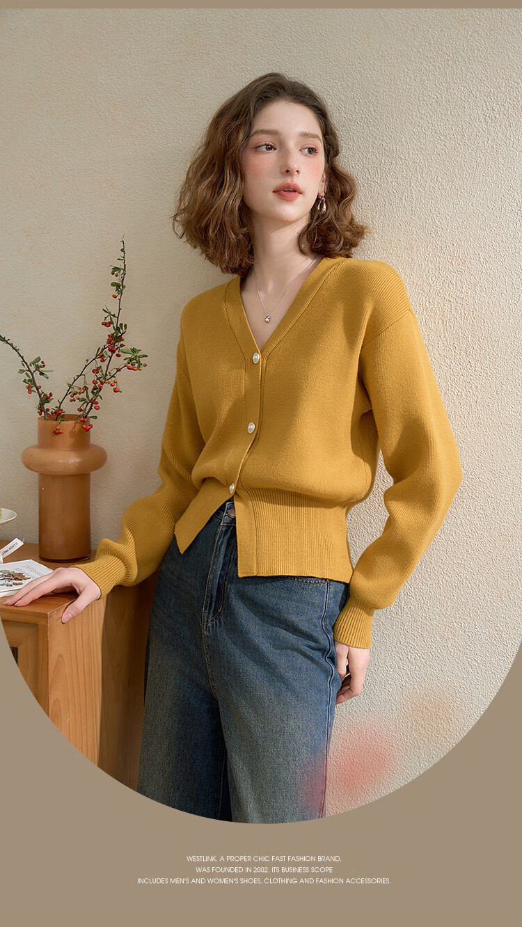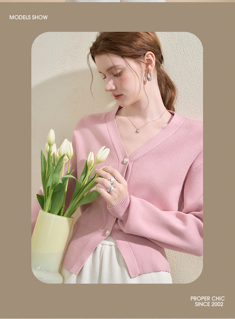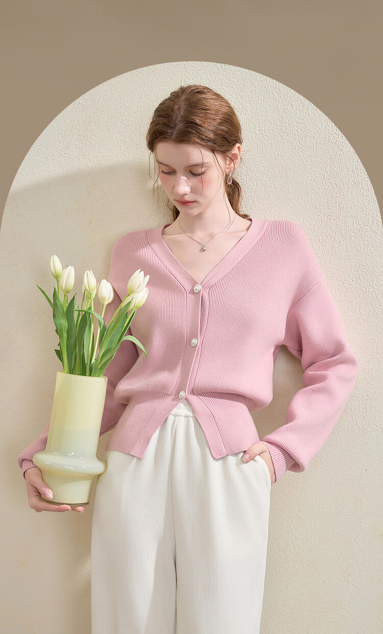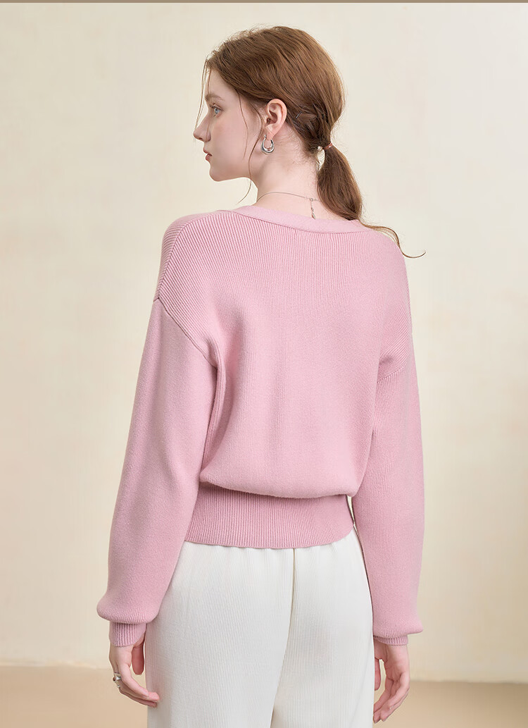 西遇(Westlink)法式气质V领针织开衫女秋季百搭收腰显瘦毛衣外套上衣 粉色 M/L/XL11月20日 M