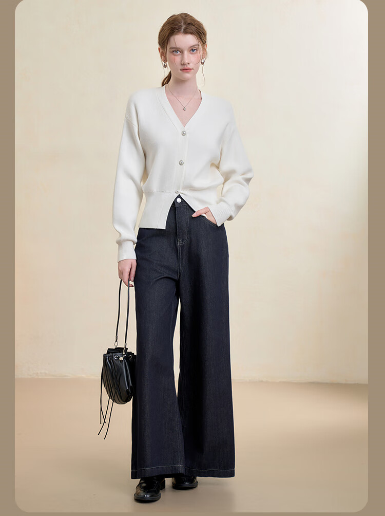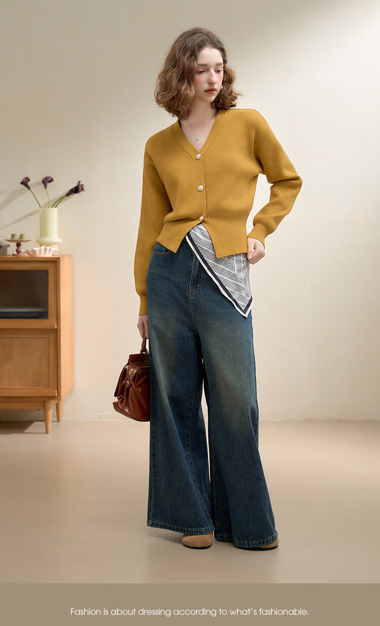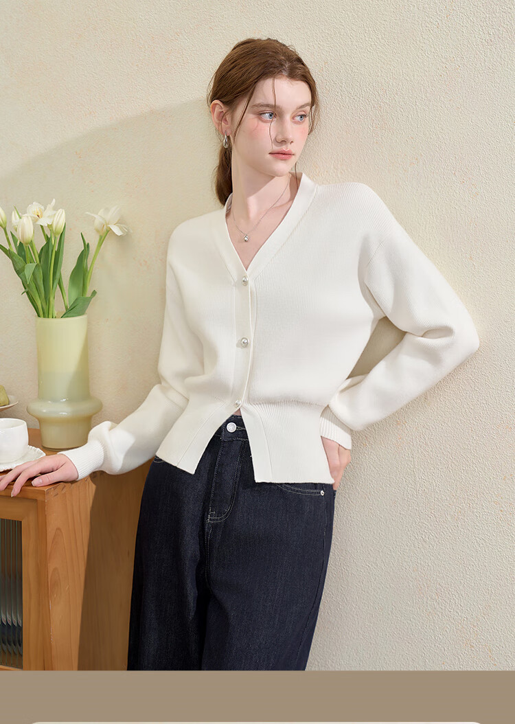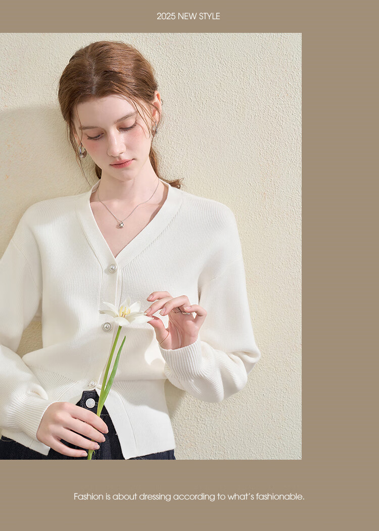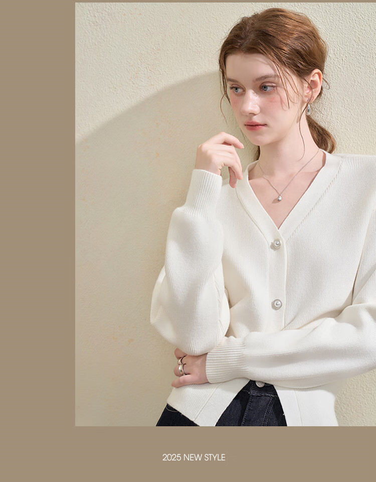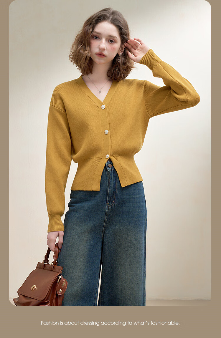 西遇(Westlink)法式气质V领针织开衫女秋季百搭收腰显瘦毛衣外套上衣 粉色 M/L/XL11月20日 M