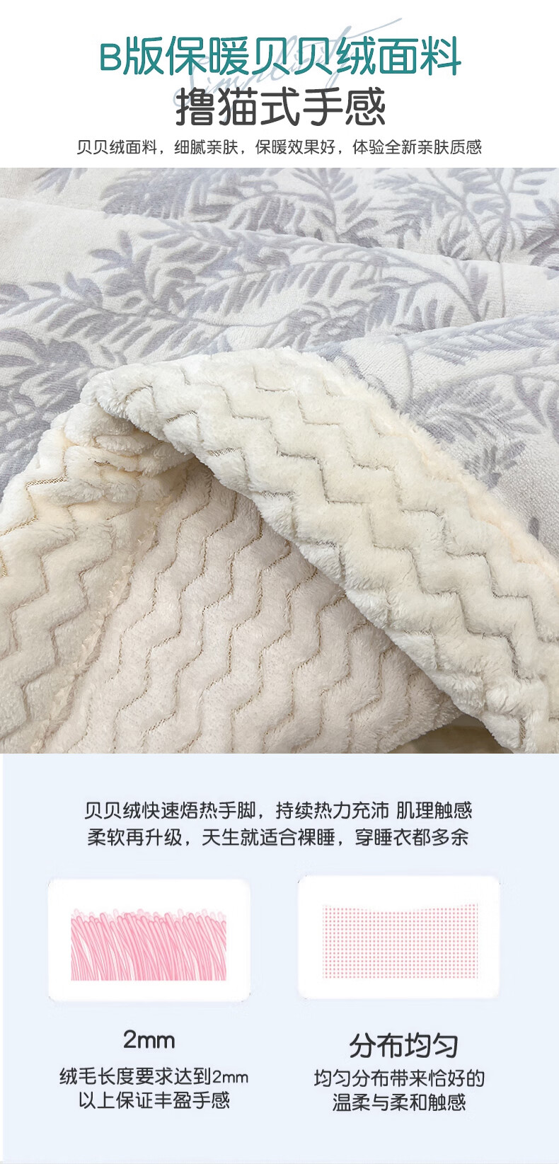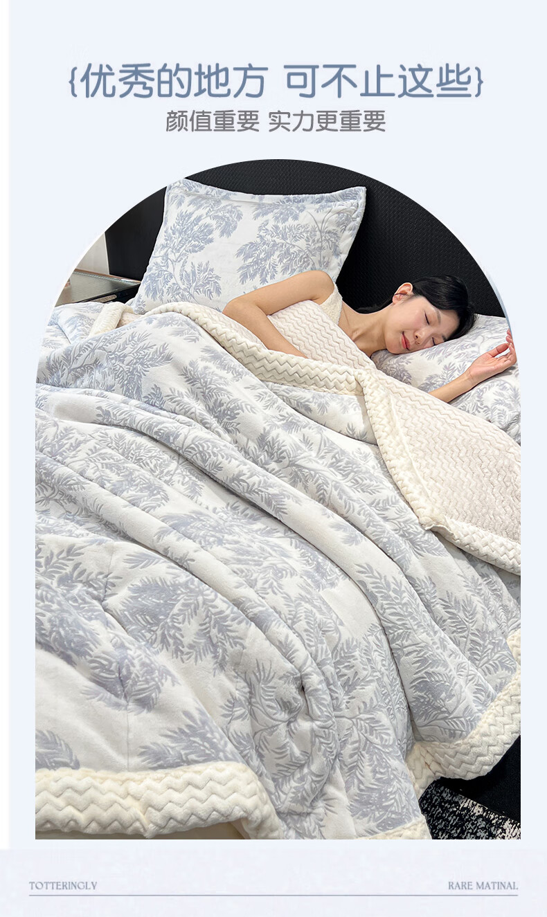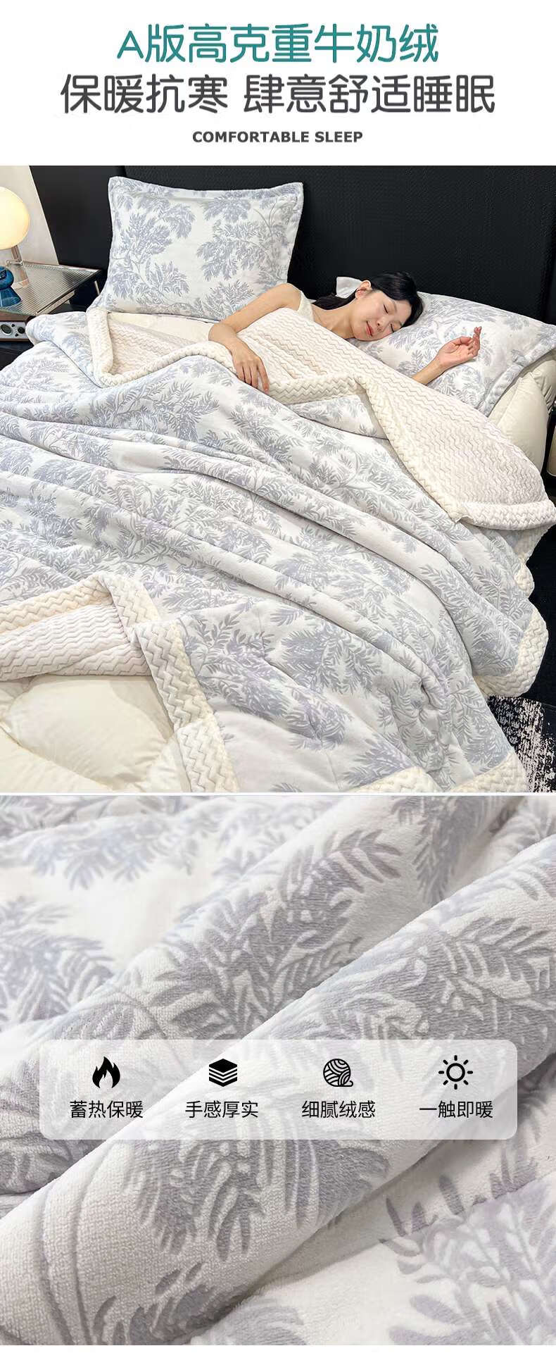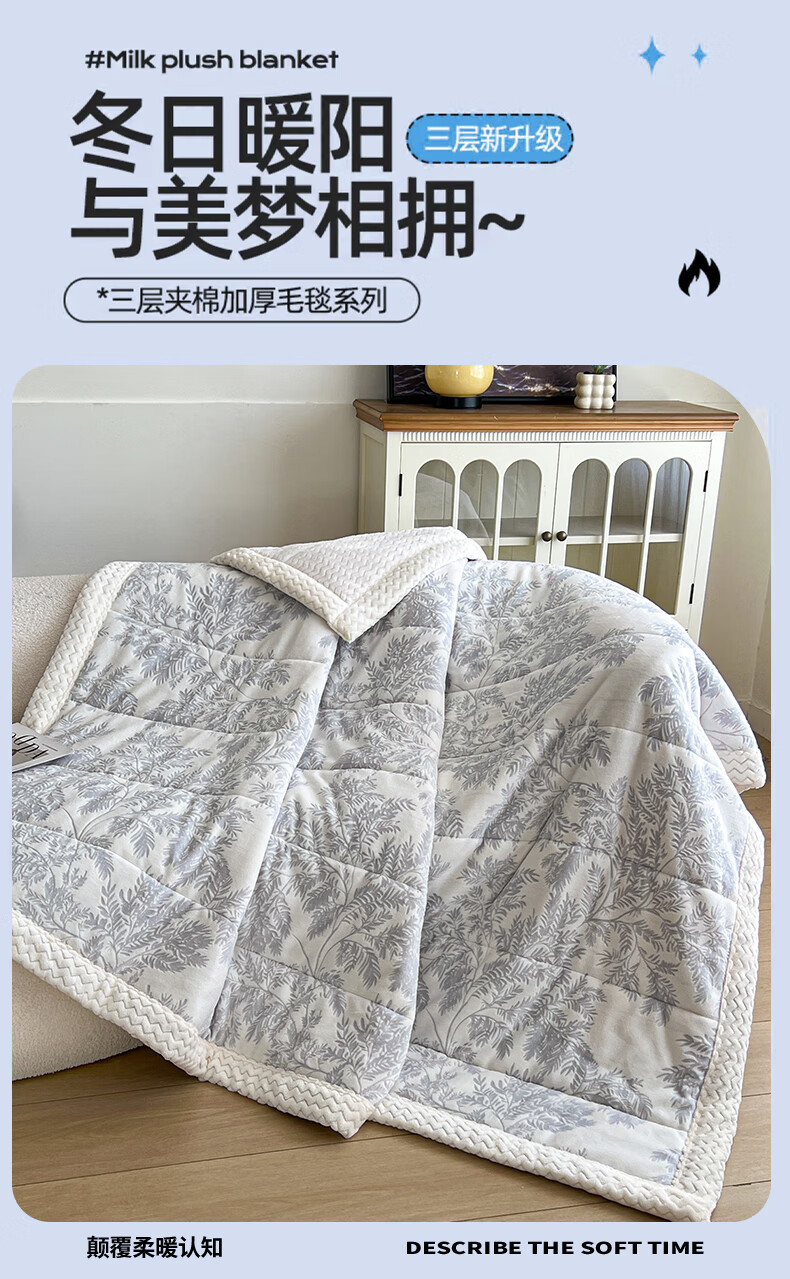 苏萱冬季加厚牛奶贝贝绒夹棉毛毯办公室午睡毯子铺床用小被子沙发盖毯 三层毯云思木想粉 180x200cm毛毯+枕套一对