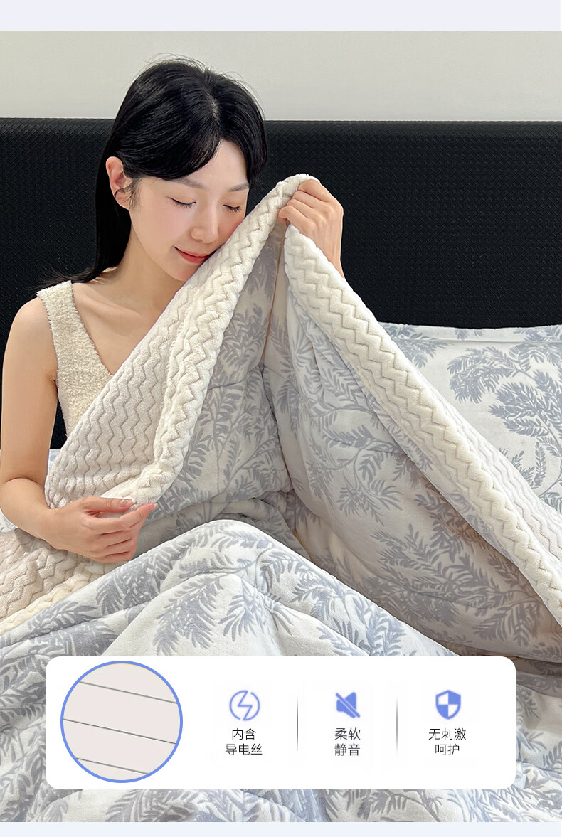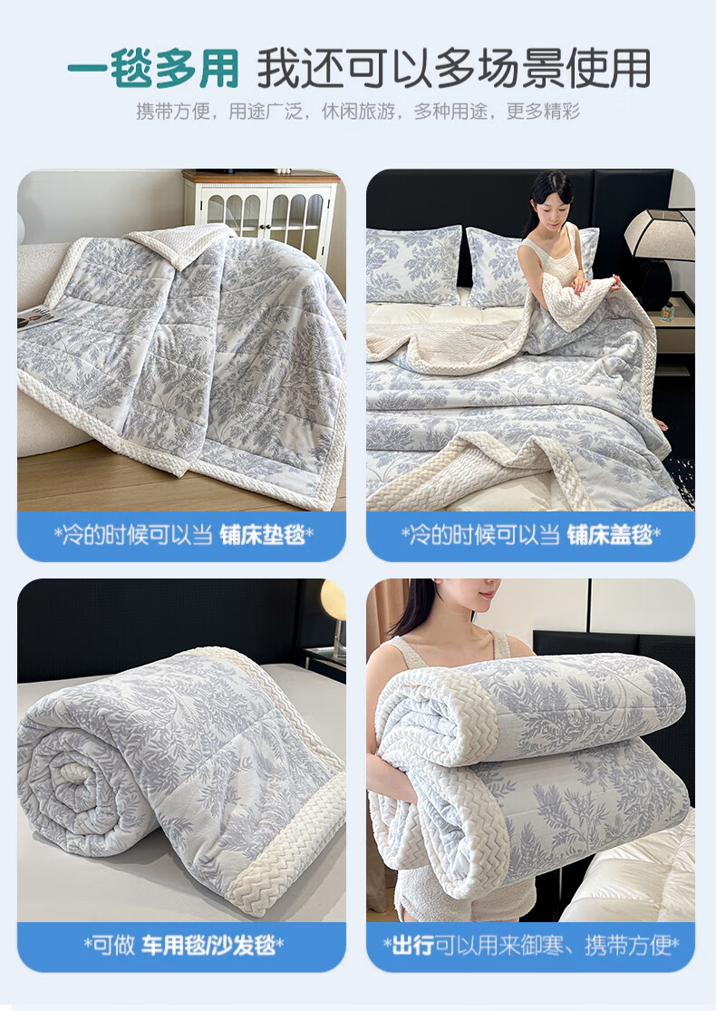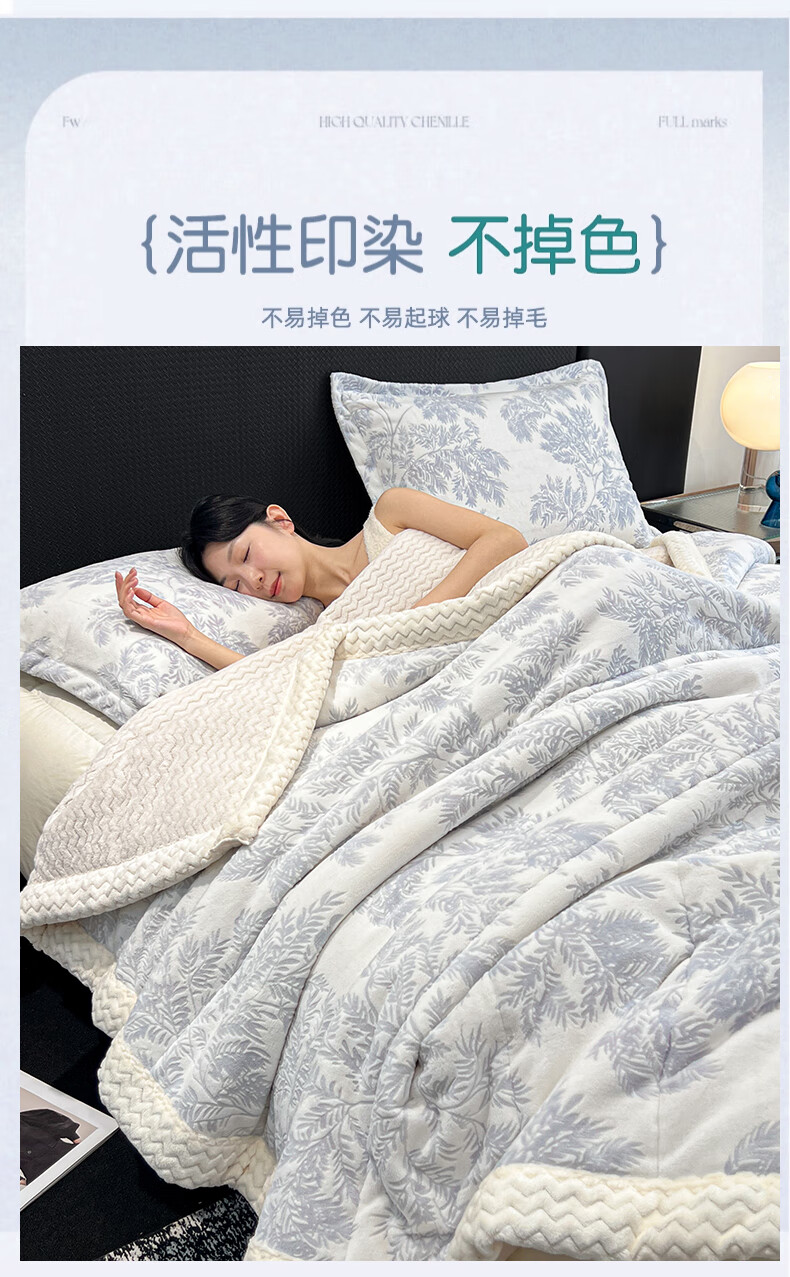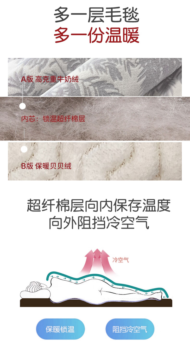 苏萱冬季加厚牛奶贝贝绒夹棉毛毯办公室午睡毯子铺床用小被子沙发盖毯 三层毯云思木想粉 180x200cm毛毯+枕套一对