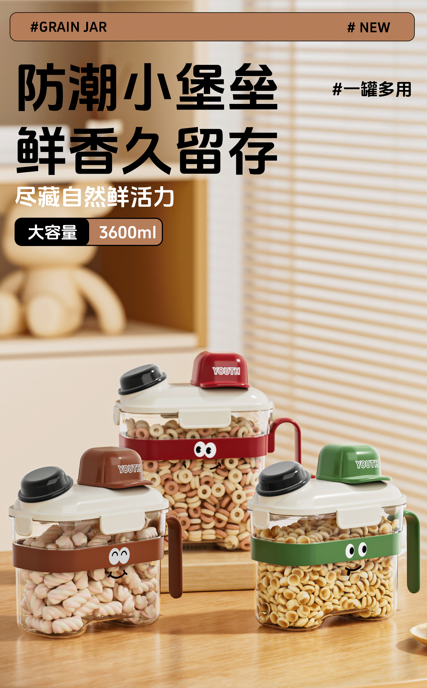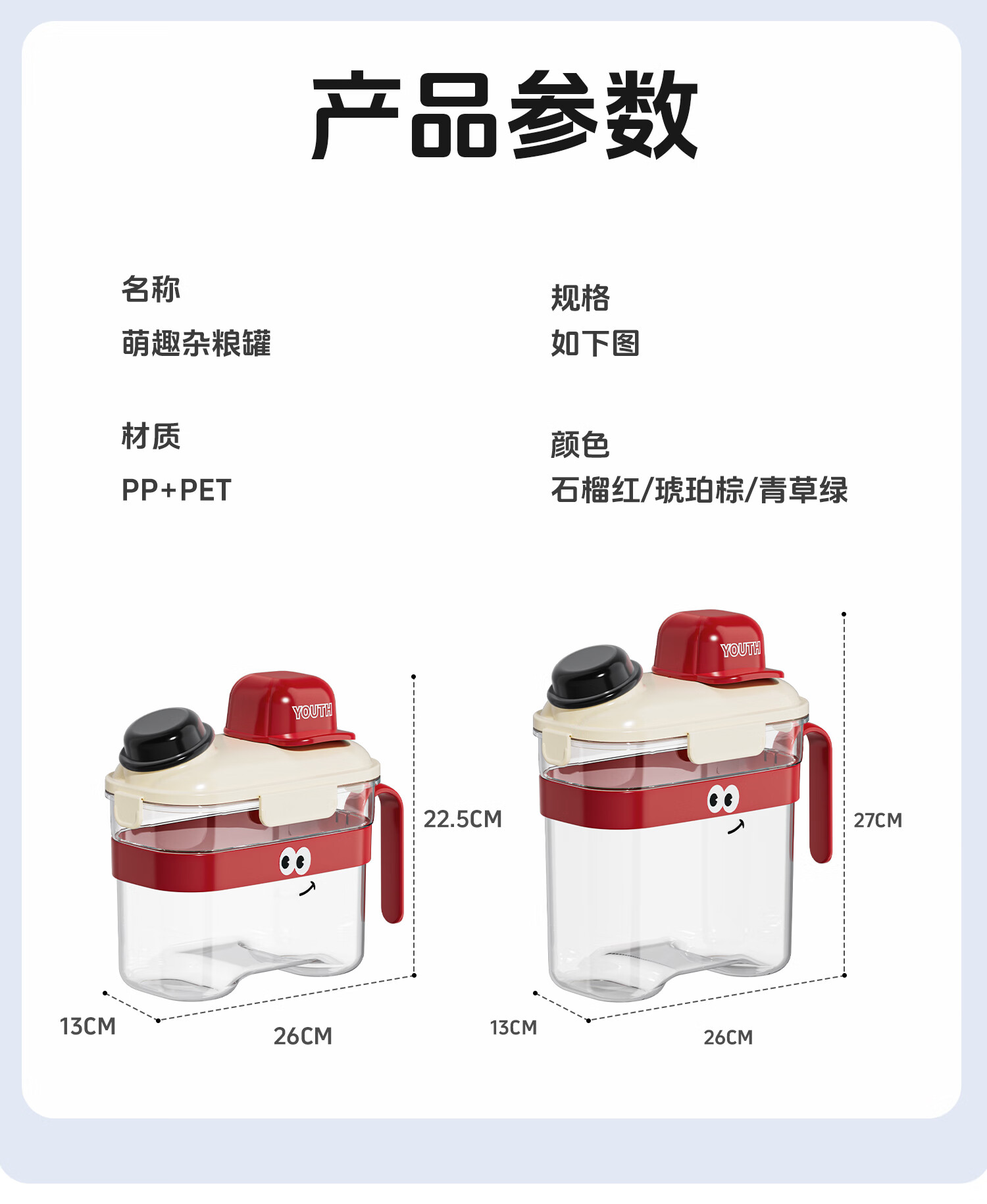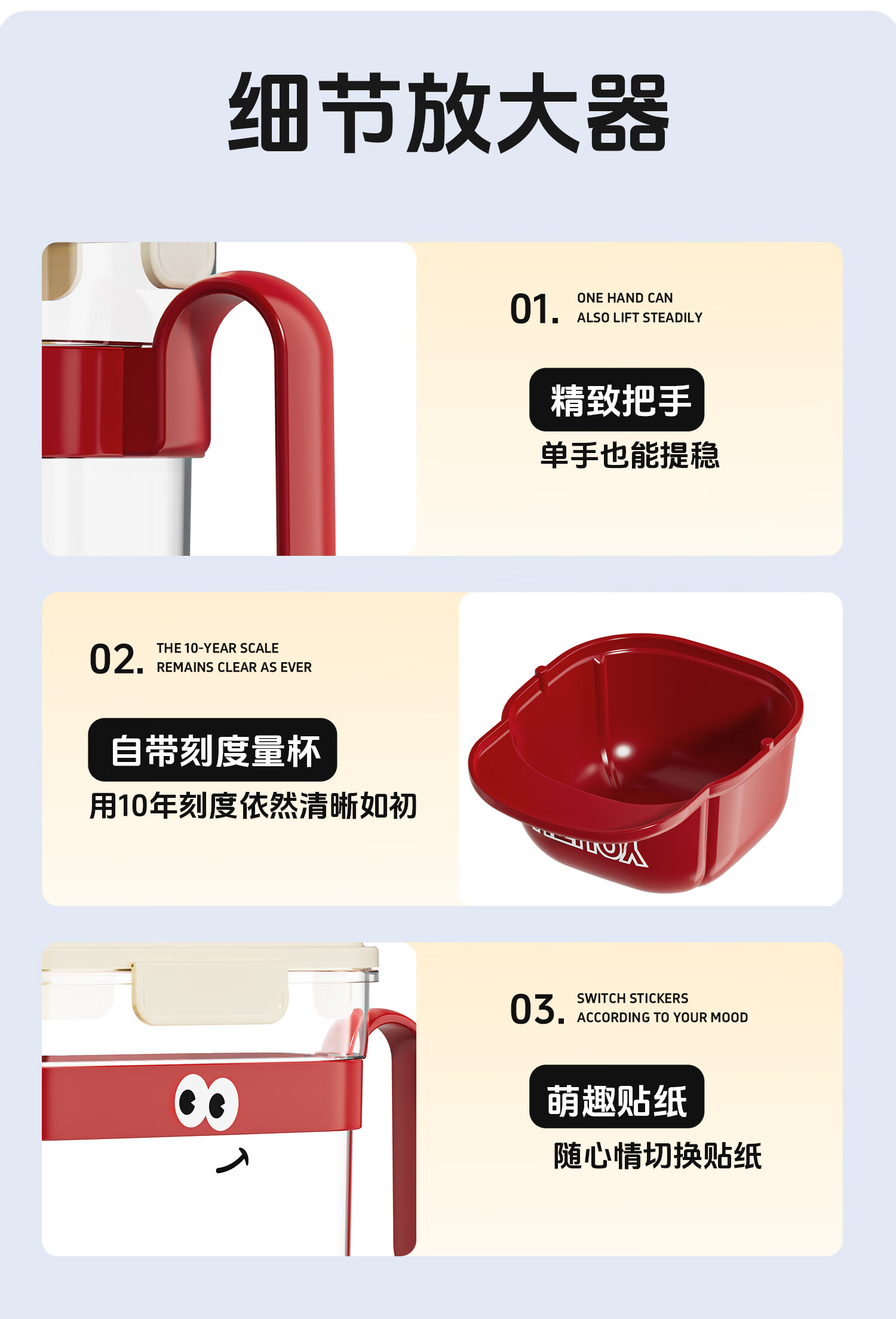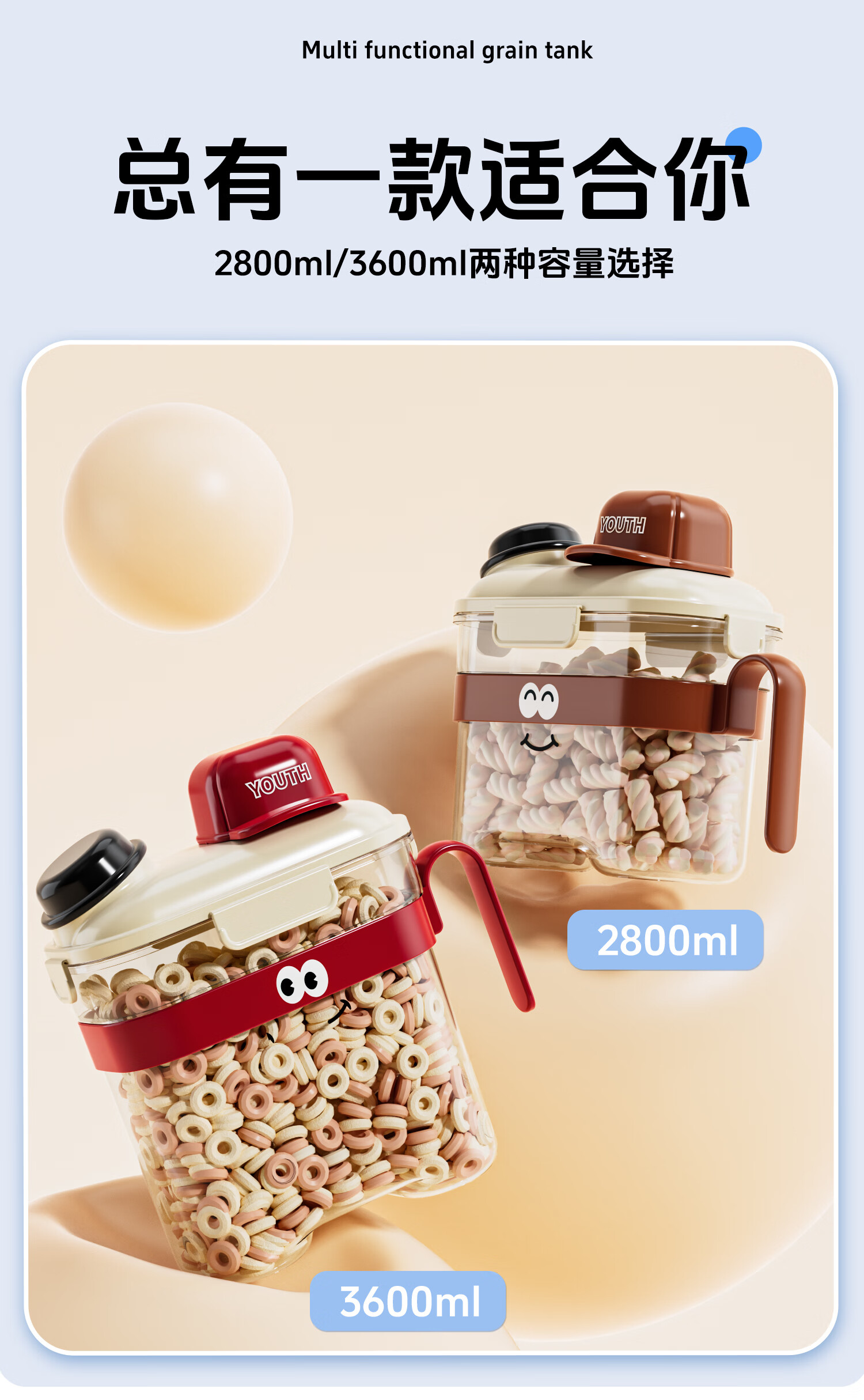 邦尼美家厨房米桶密封罐五谷杂粮防潮收纳盒家用宠物猫粮大容量储物桶手提 调皮小红-中号【可装2800毫升】 放心购(多层密封 可手提)
