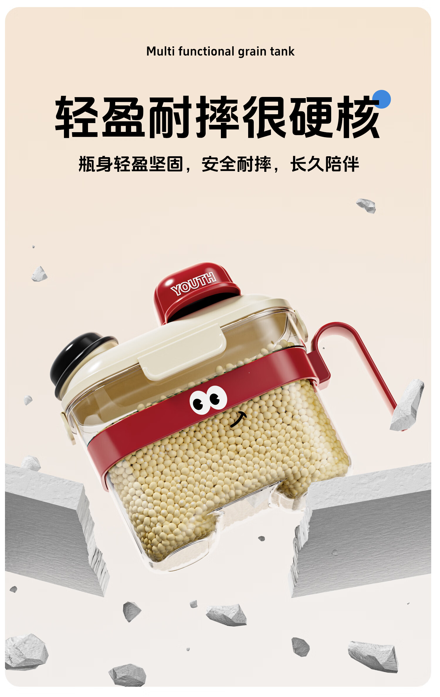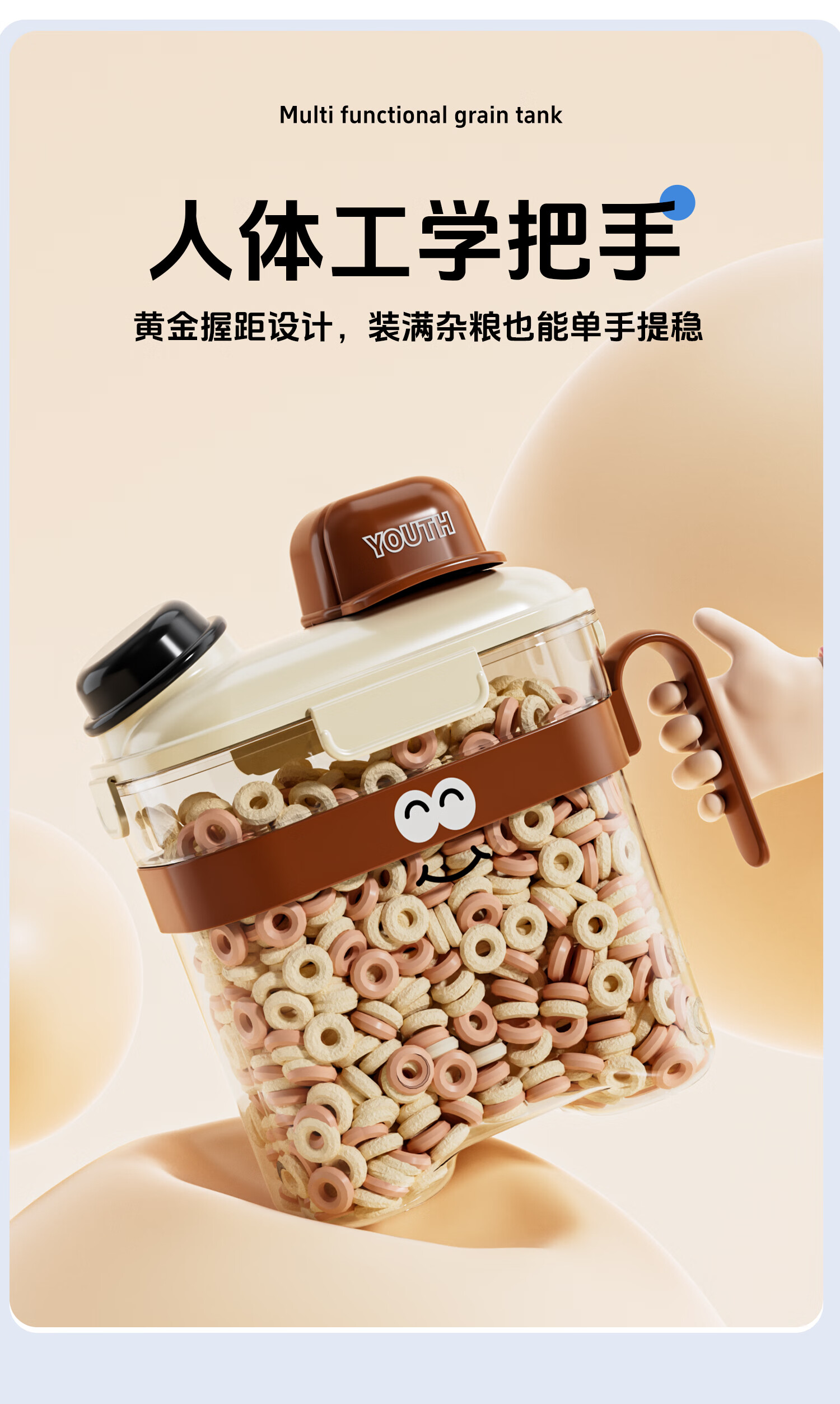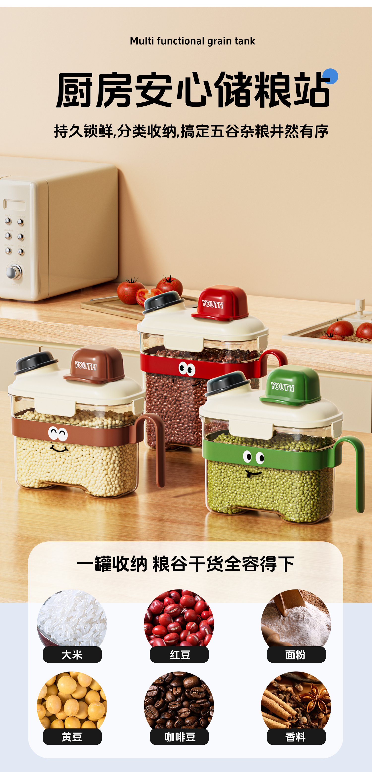 邦尼美家厨房米桶密封罐五谷杂粮防潮收纳盒家用宠物猫粮大容量储物桶手提 调皮小红-中号【可装2800毫升】 放心购(多层密封 可手提)