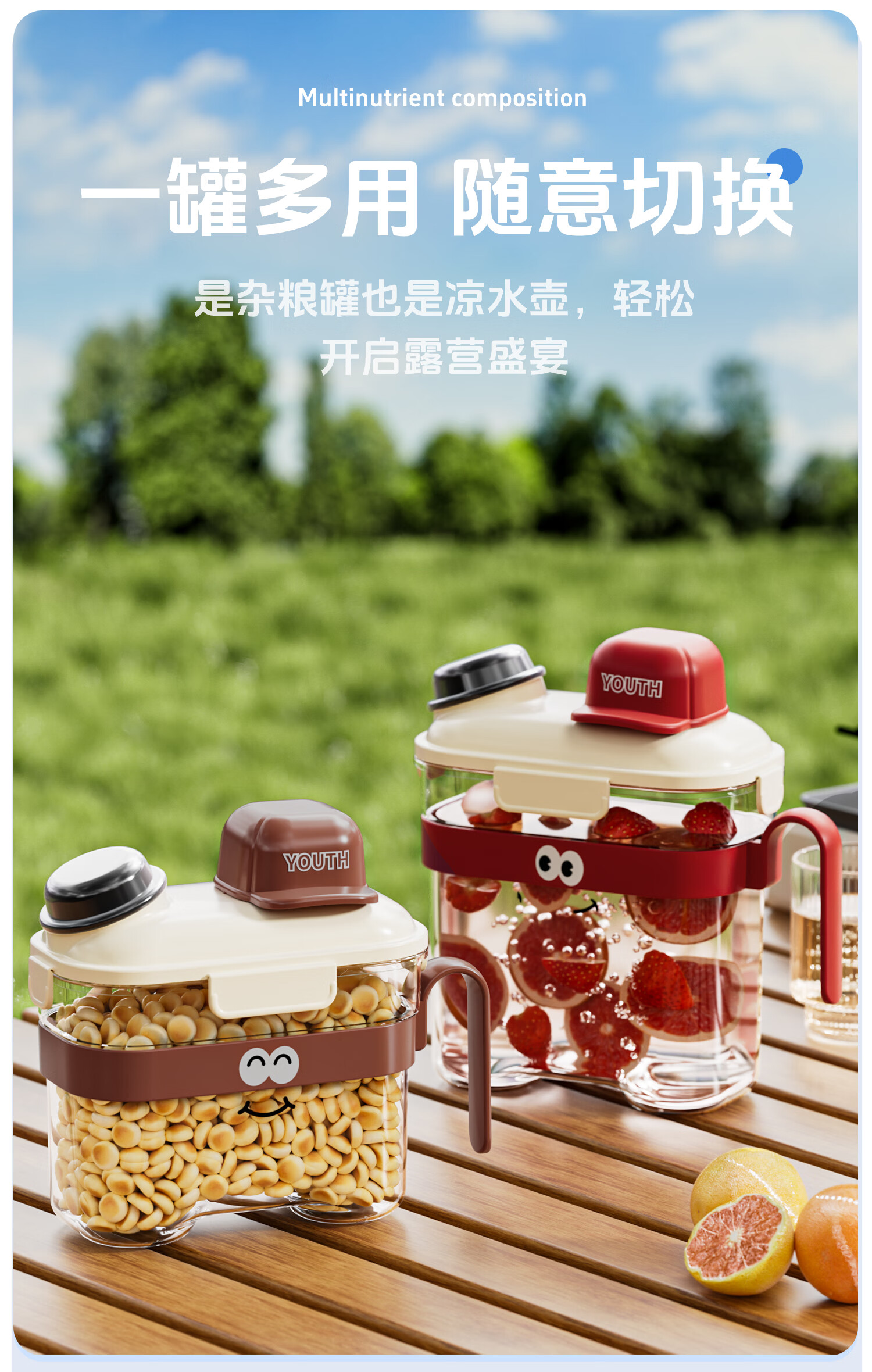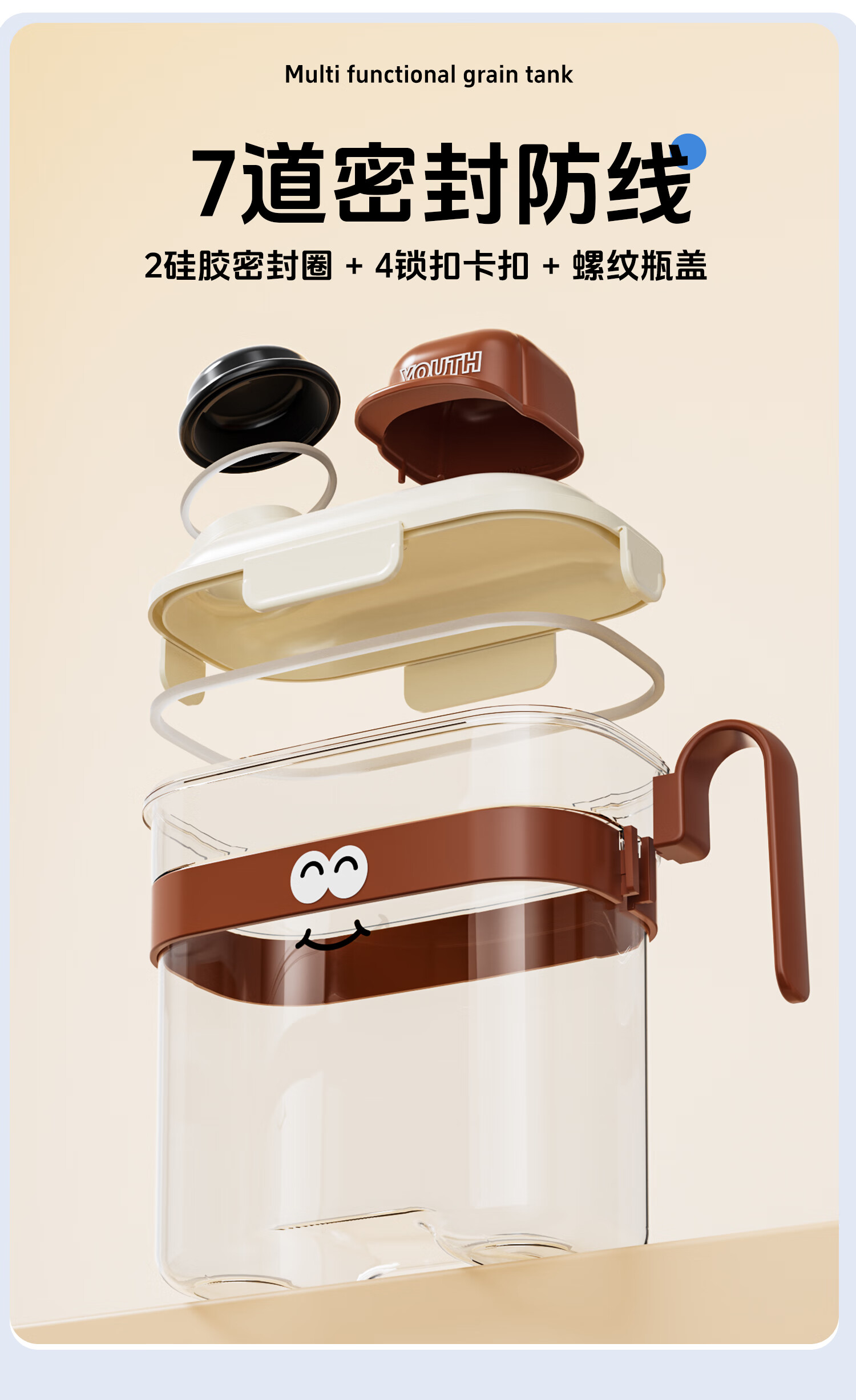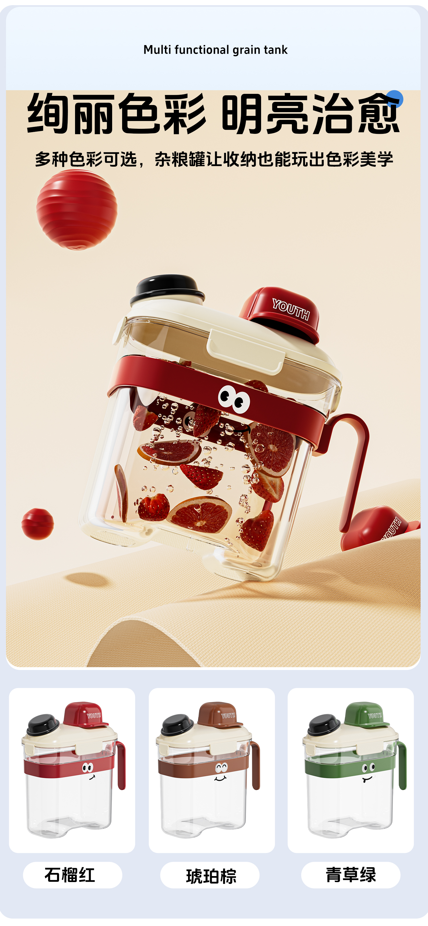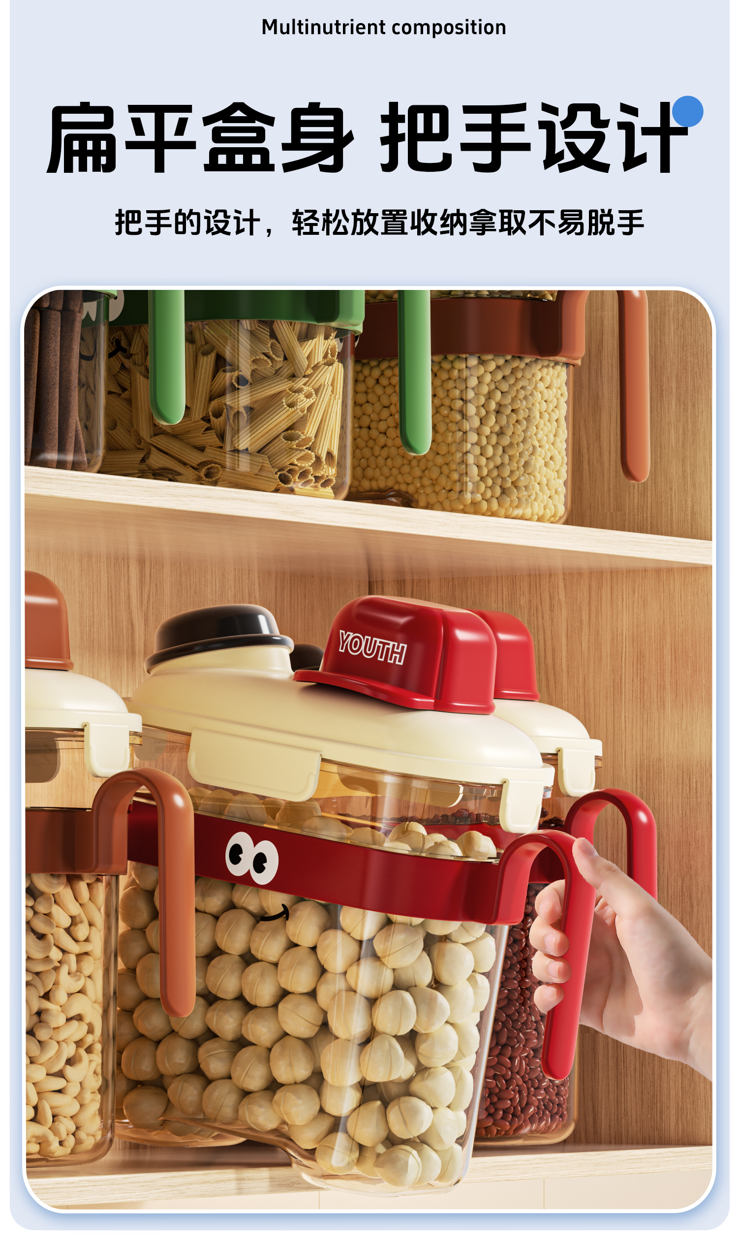 邦尼美家厨房米桶密封罐五谷杂粮防潮收纳盒家用宠物猫粮大容量储物桶手提 调皮小红-中号【可装2800毫升】 放心购(多层密封 可手提)