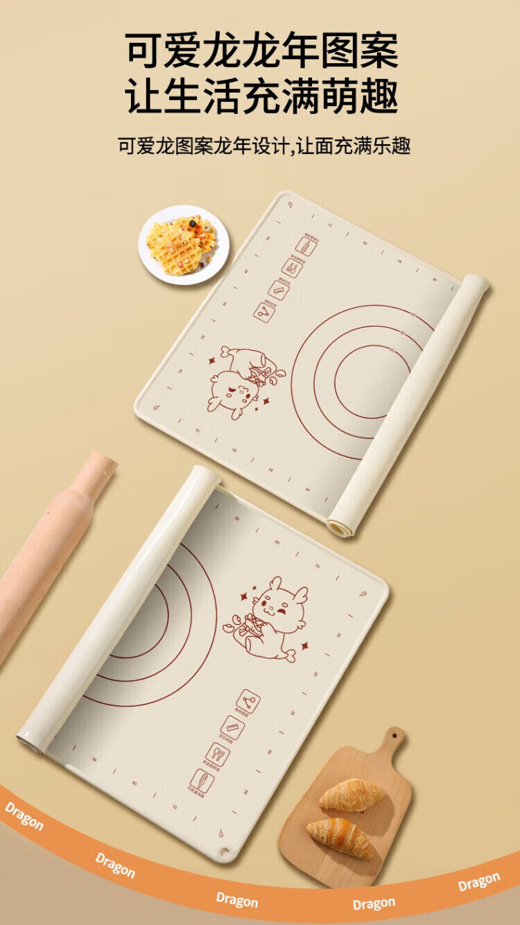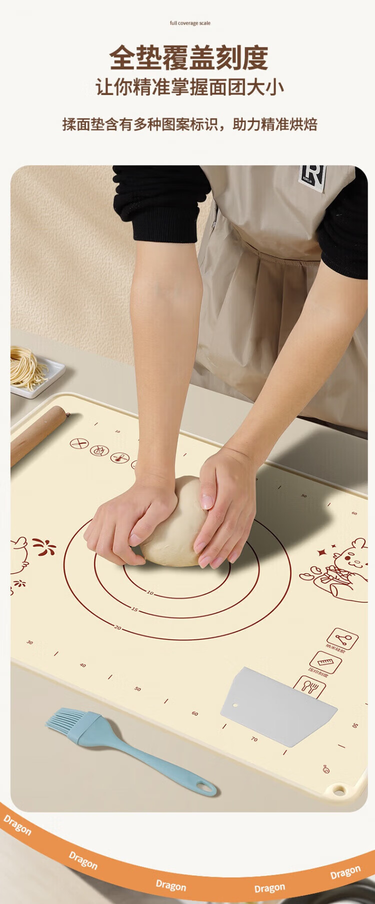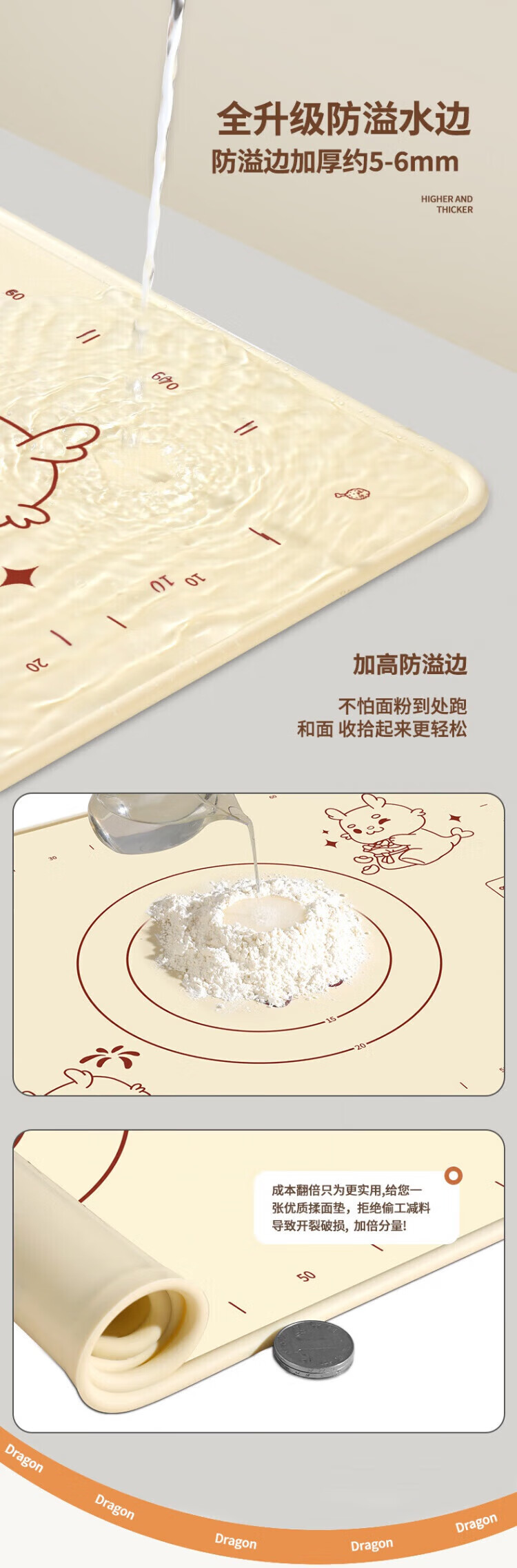 CKULH德国食品级硅胶揉面垫加厚母婴级包面垫面板和面垫子家用案板 小熊款80*60cm+三重好礼 边缘加厚6mm 液态铂金硅胶
