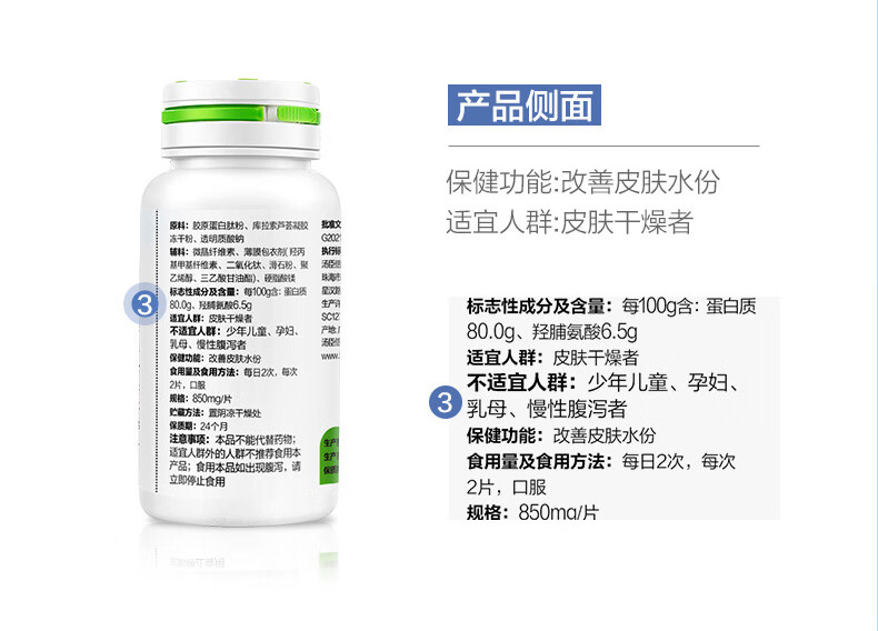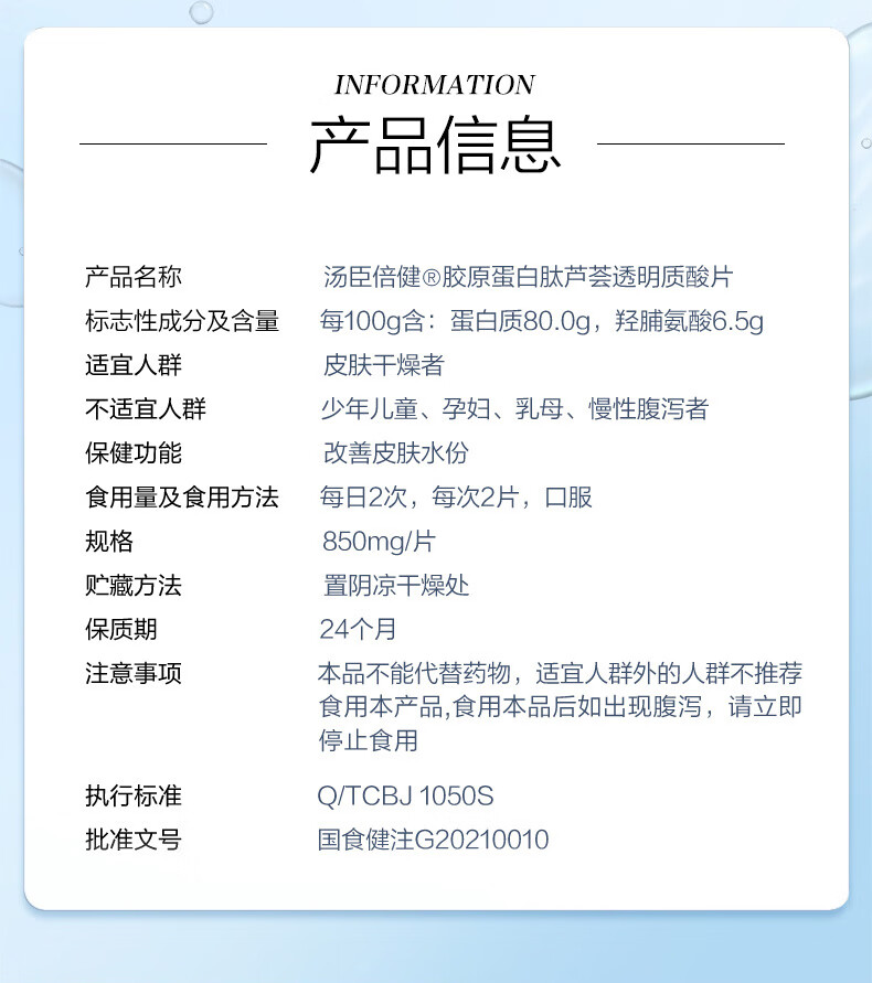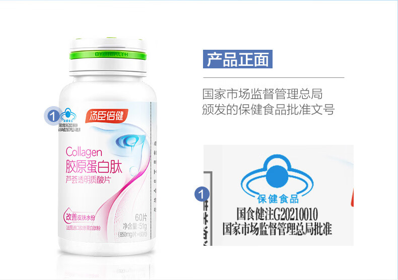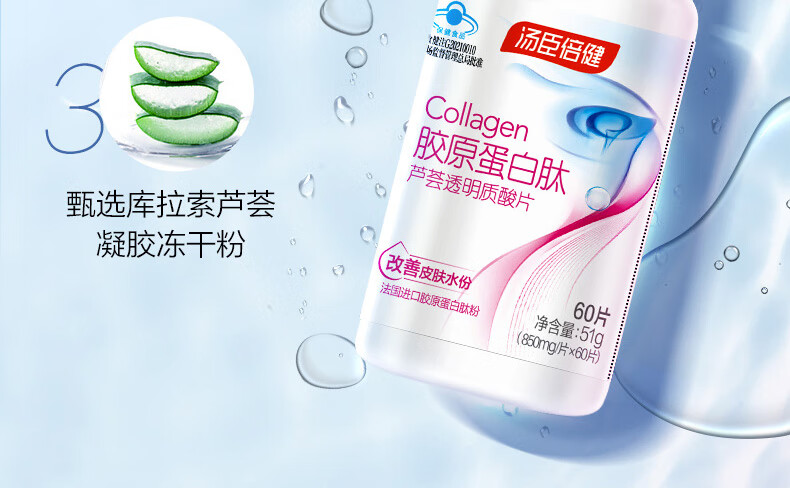 汤臣倍健胶原蛋白肽芦荟透明质酸片60片成人改善皮肤水份进口胶原蛋白肽粉 胶原蛋白肽60片*1