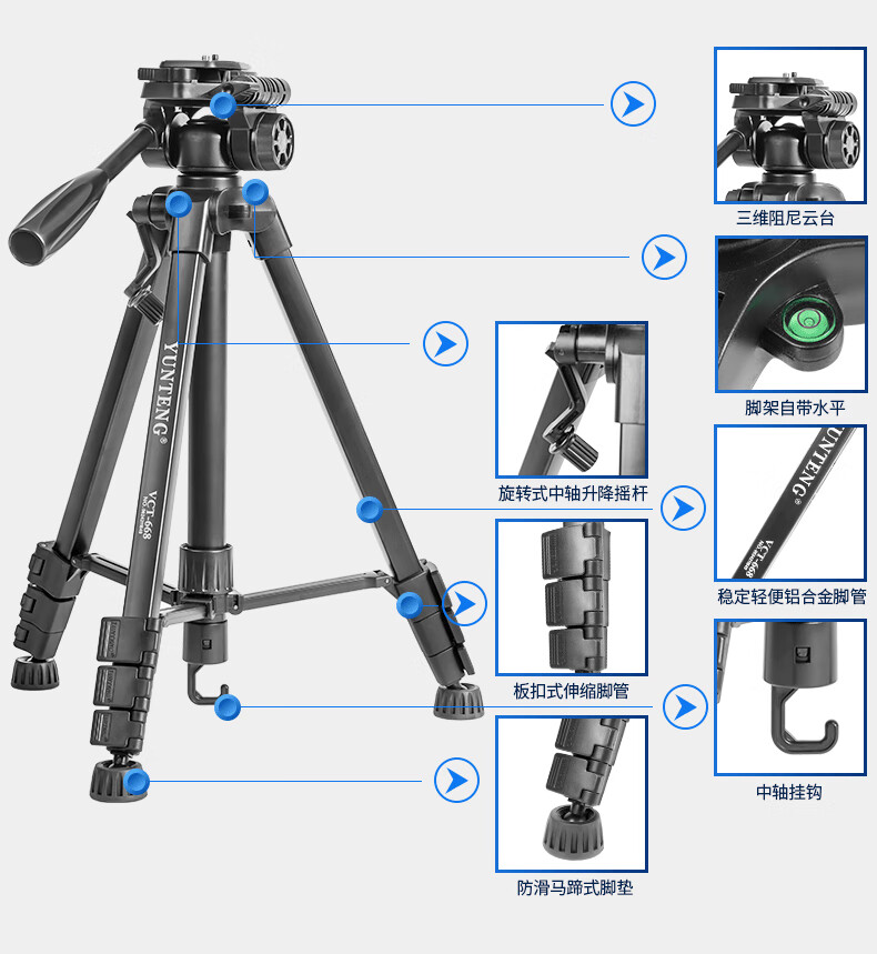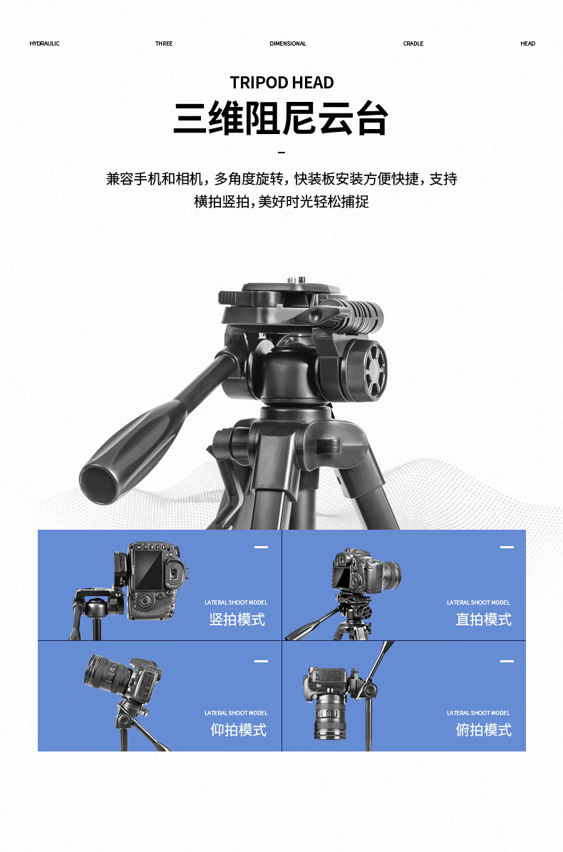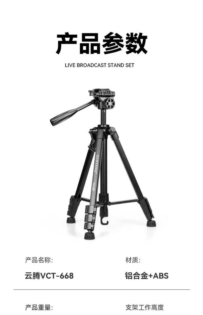 云腾手机支架直播拍摄三脚架摄影自拍三角架子双机位通用多机位三机位多功能三脚架便携落地支撑架子 云腾668支架+二个手机位