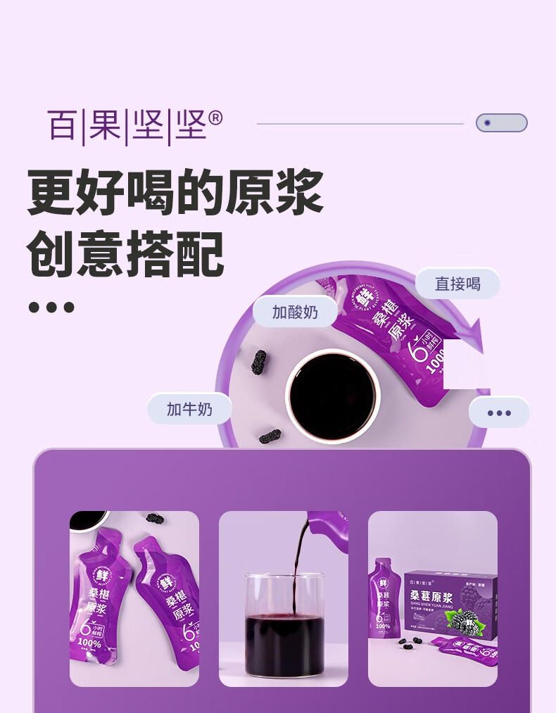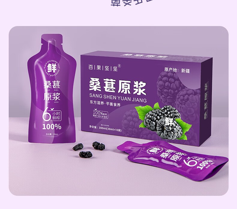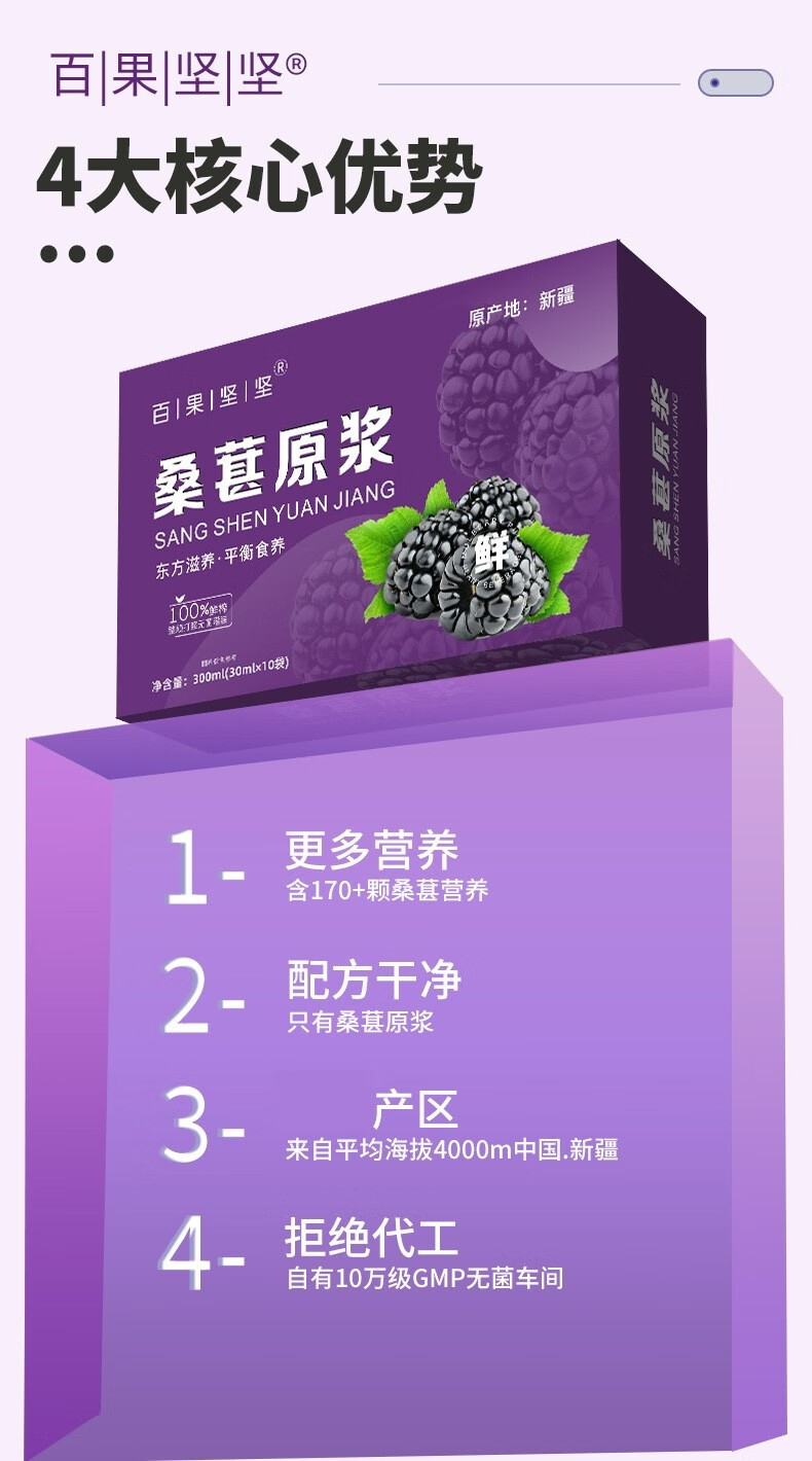 百果坚坚桑葚原浆100%桑葚汁新疆桑葚花青素枸杞桑葚原浆饮料桑葚原汁 桑葚原浆300毫升*1盒