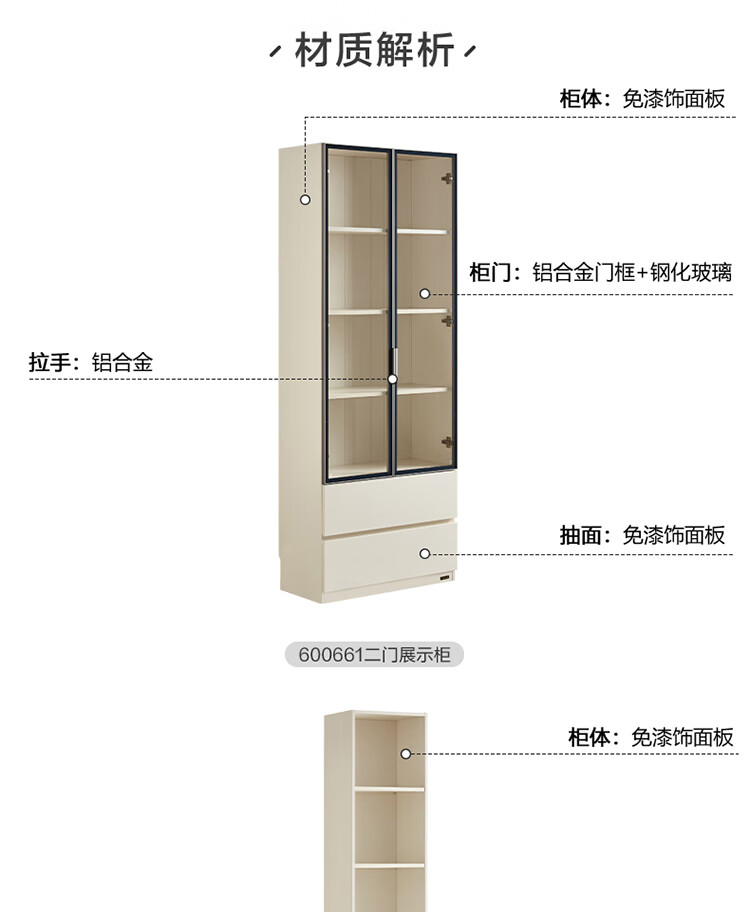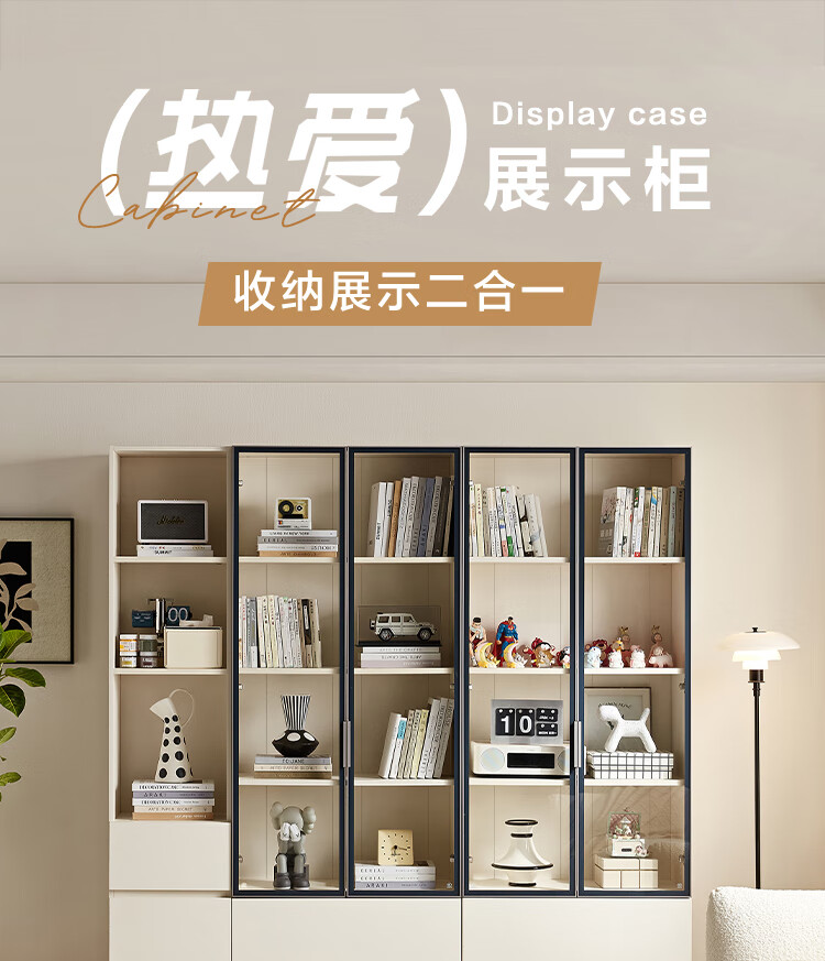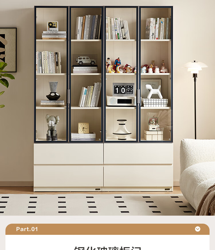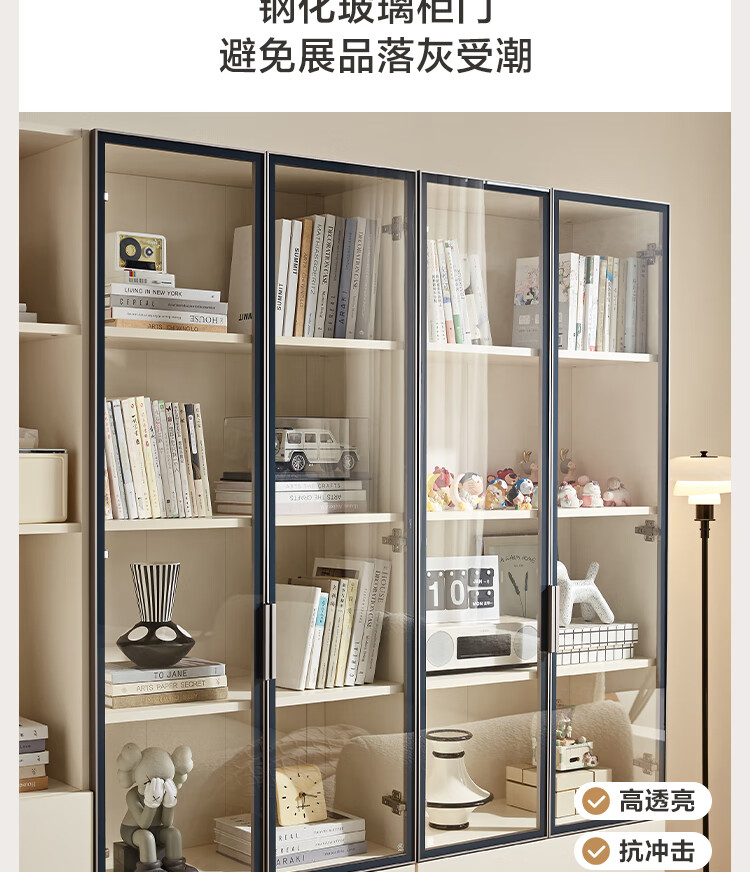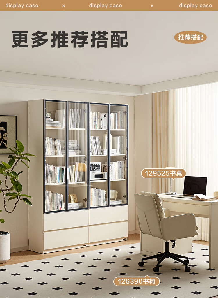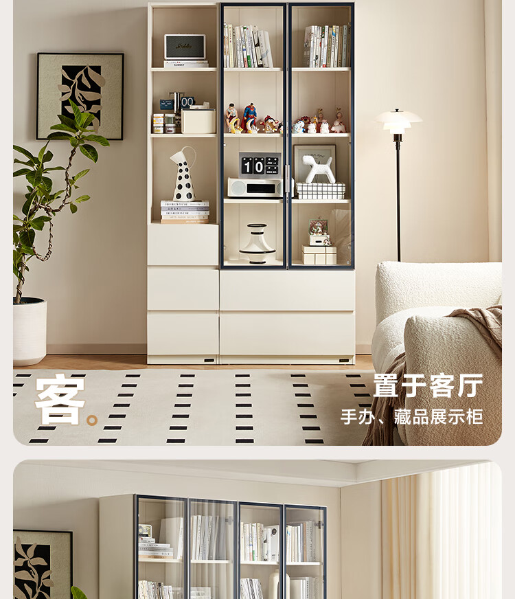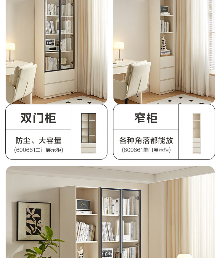 全友家居 现代简约风组合收纳柜二门展示柜开放式储物抽屉柜书房书柜