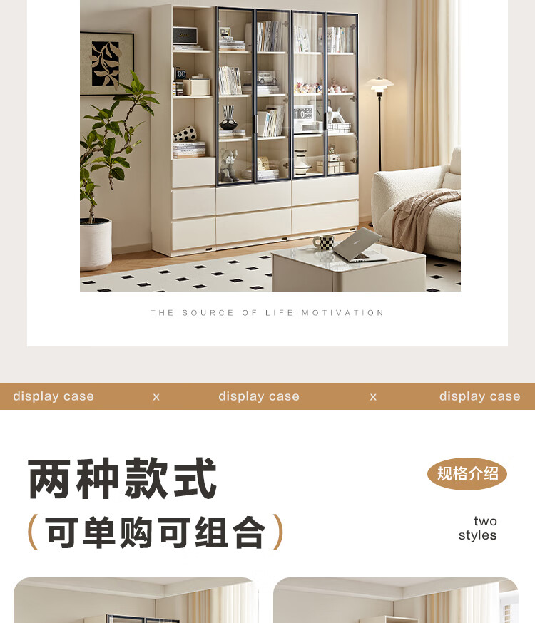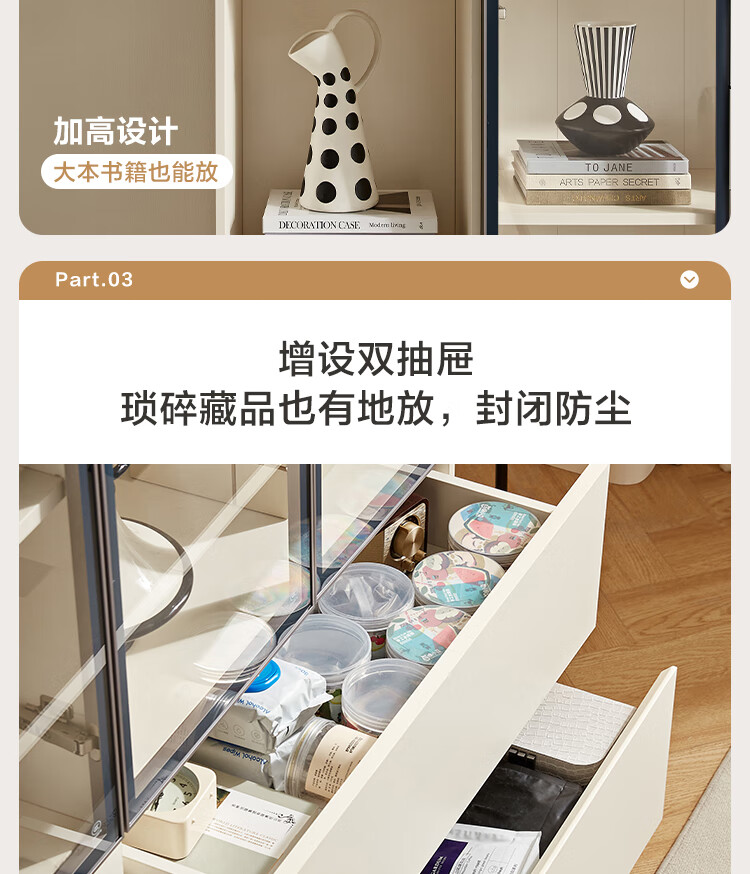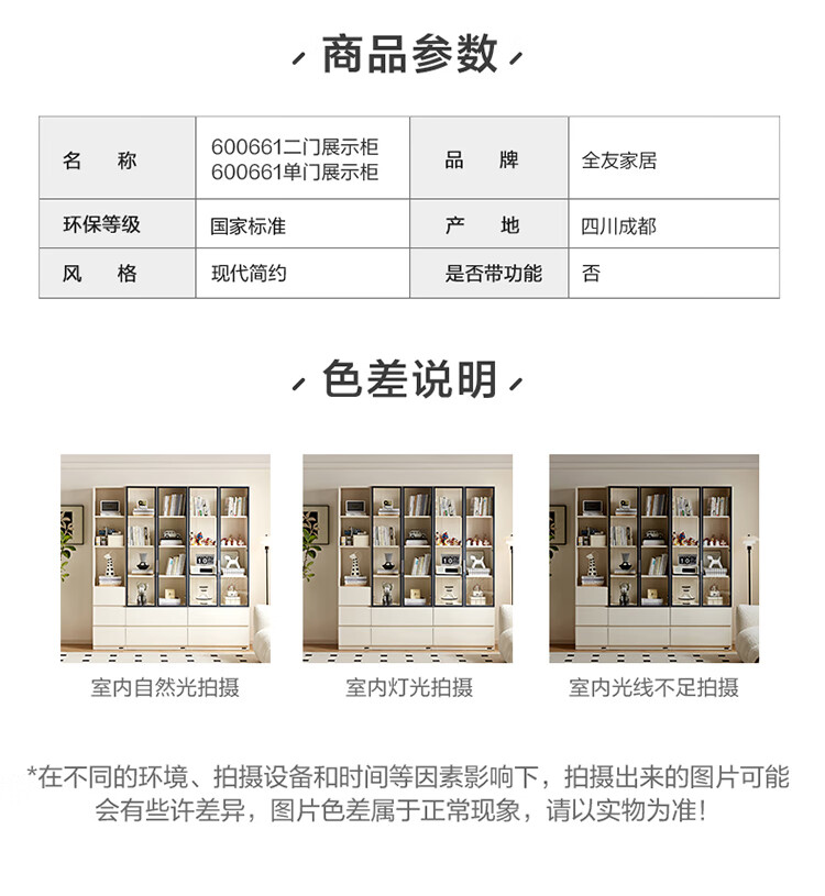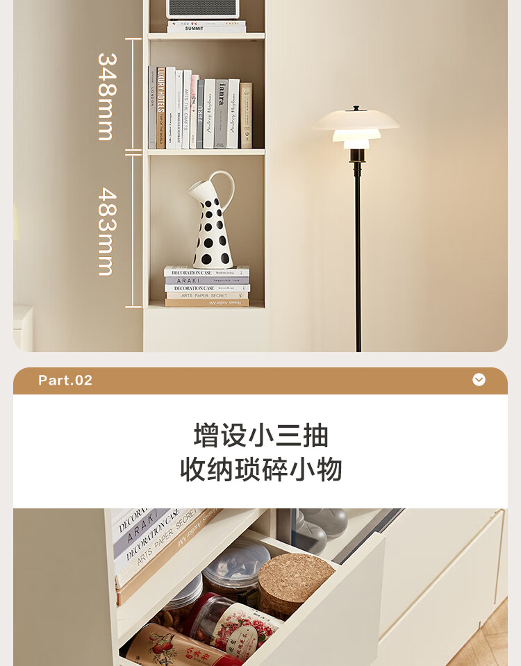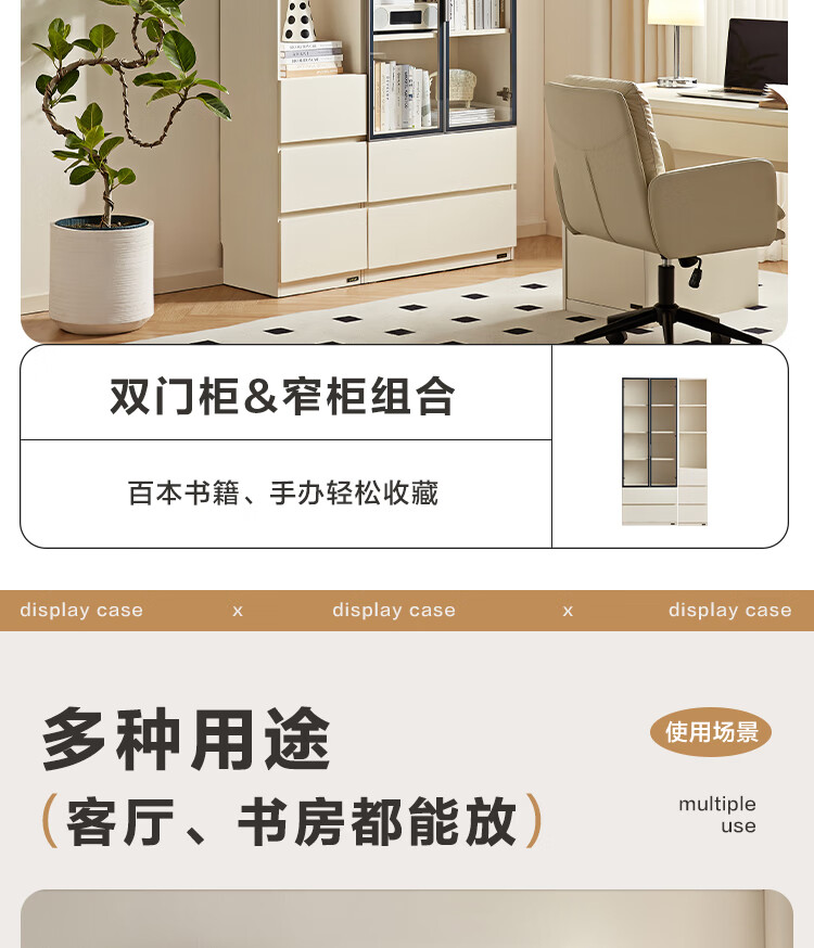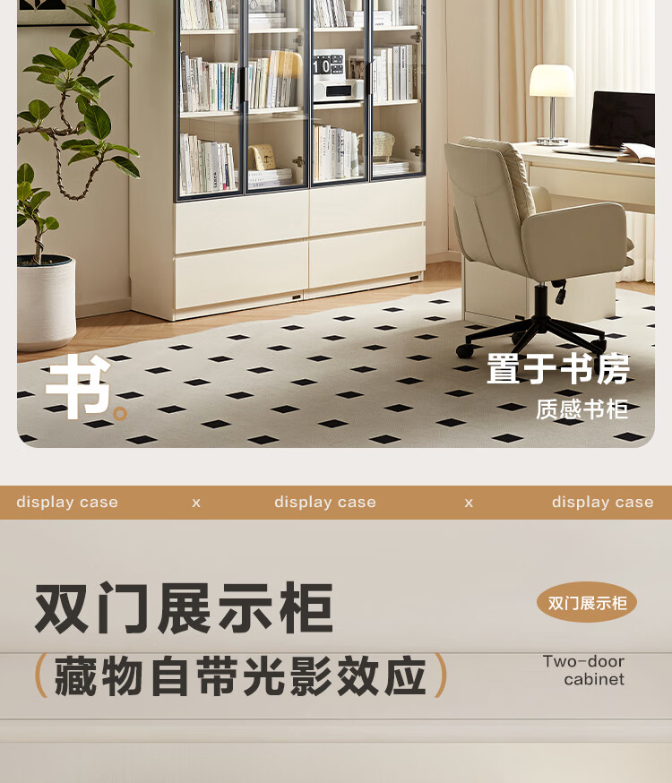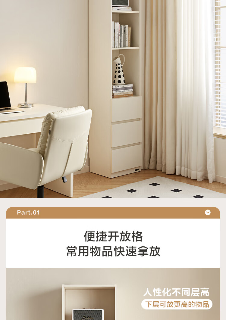 全友家居 现代简约风组合收纳柜二门展示柜开放式储物抽屉柜书房书柜
