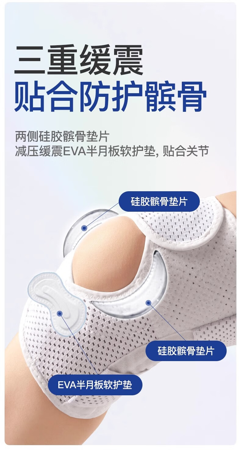 朋意护膝半月板损伤女运动男髌骨带跑步登山徒步专业保护膝盖关节护具 【三层硅胶护垫】黑色【1只装】 XXL