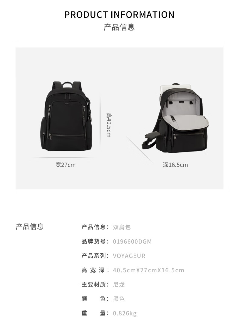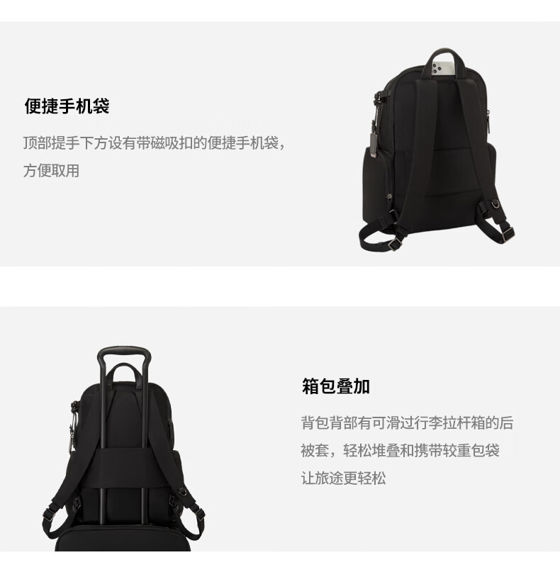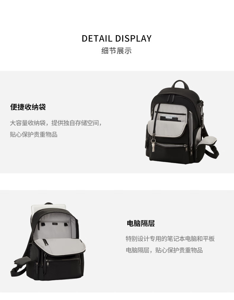 途明(TUMI)VOYAGEUR女士简约商务双肩包经典通勤电脑包 黑色拼烟枪色