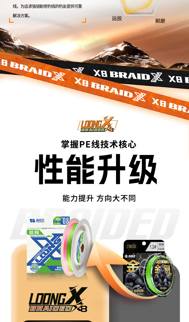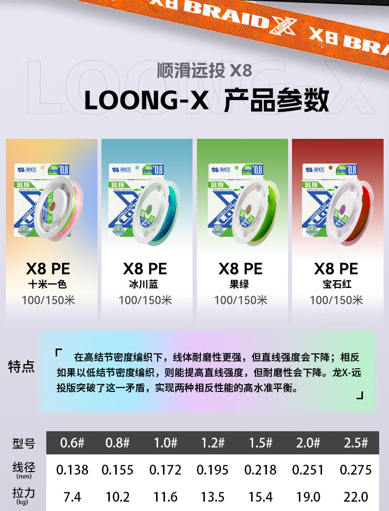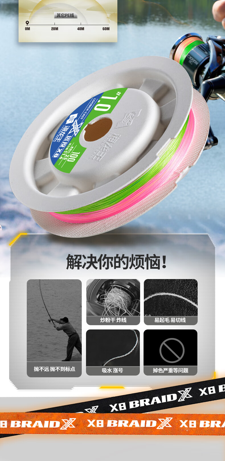海龙王pe线路亚线龙X系列远投大师版8编pe线路亚专用大力马钓鱼线主线 龙X-远投x8五彩150米 6.0#