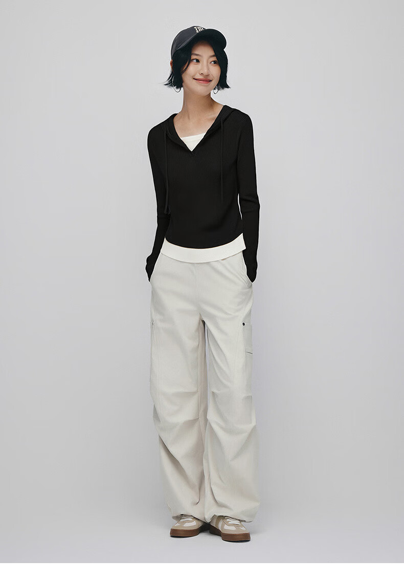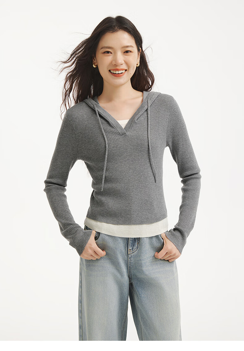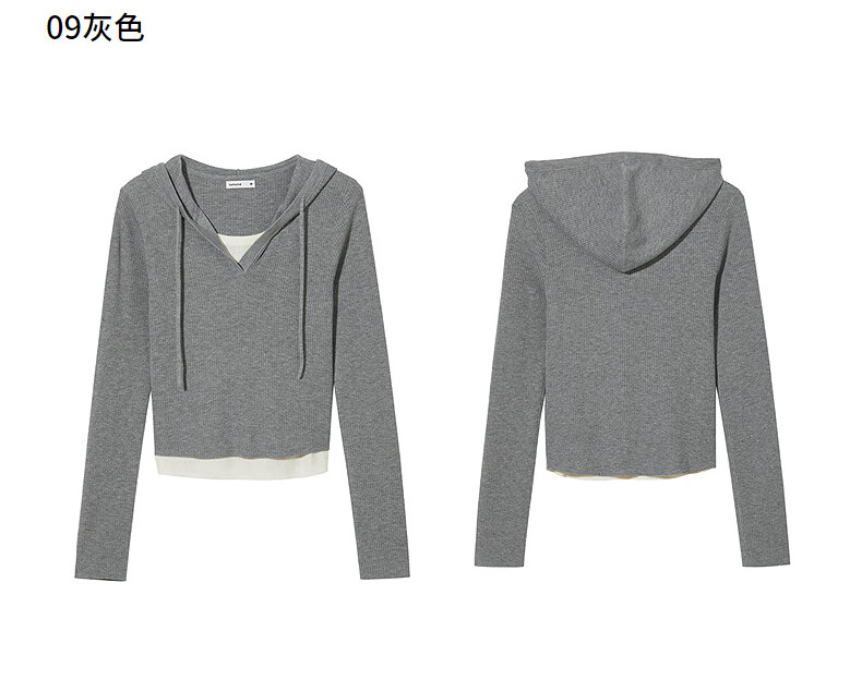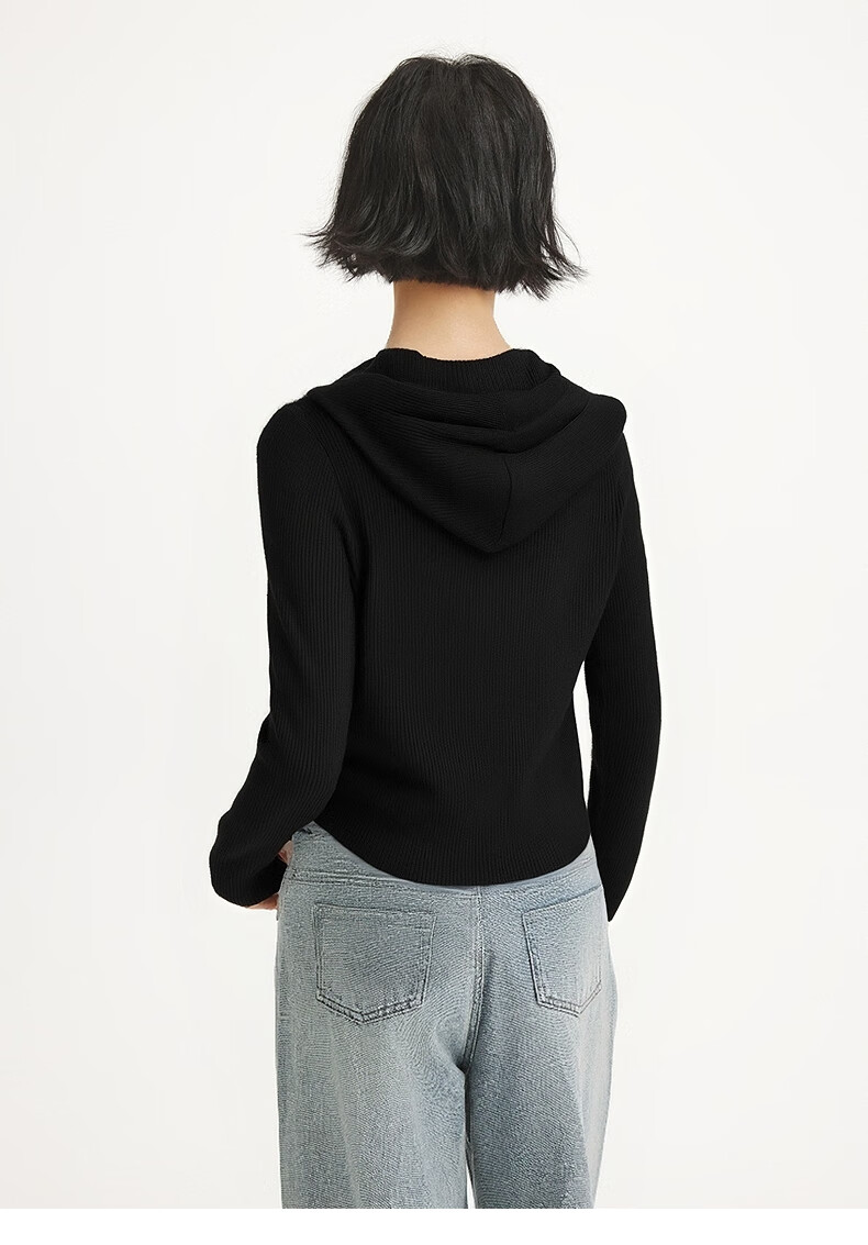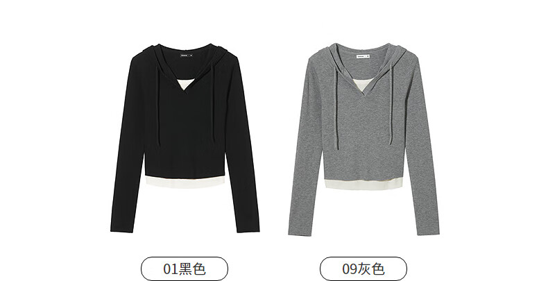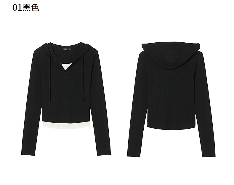 热风【商场同款】女士连帽针织衫上衣2025年秋新款假两件针织韩系修身 01黑色 XL