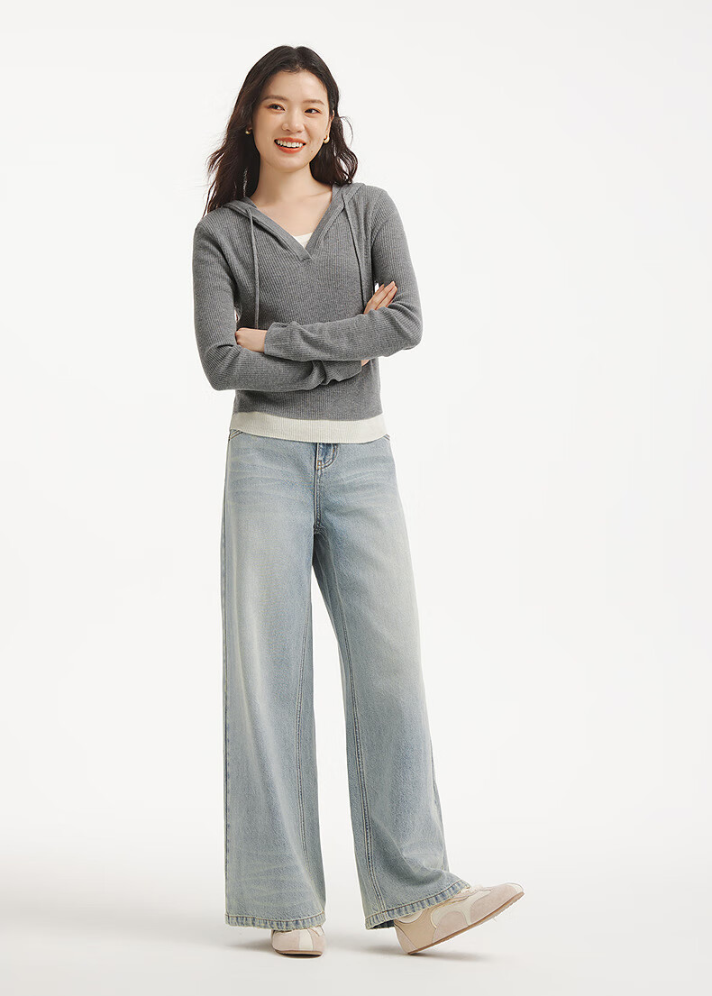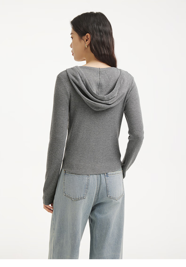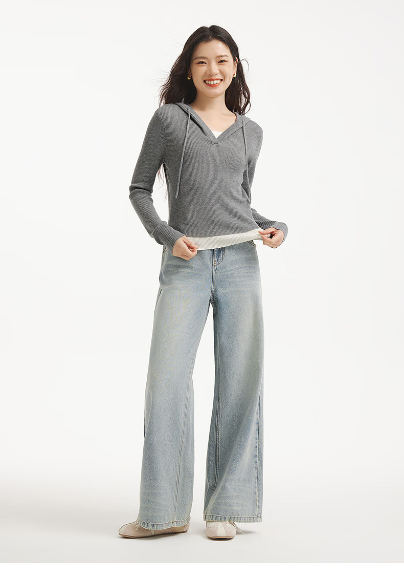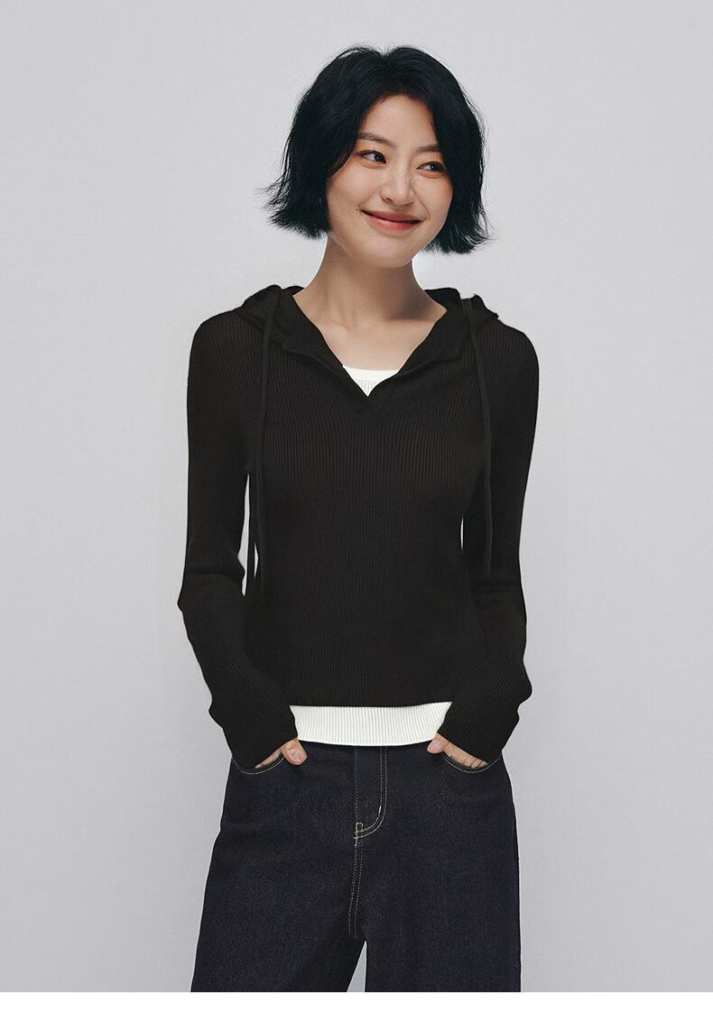 热风【商场同款】女士连帽针织衫上衣2025年秋新款假两件针织韩系修身 01黑色 XL