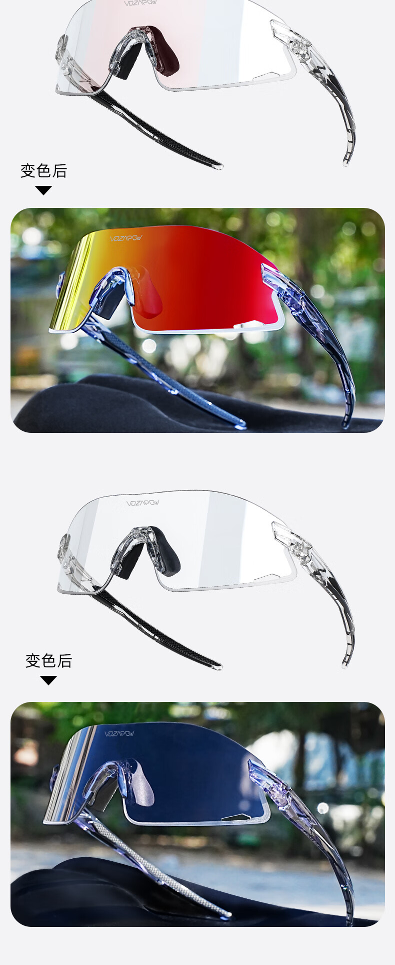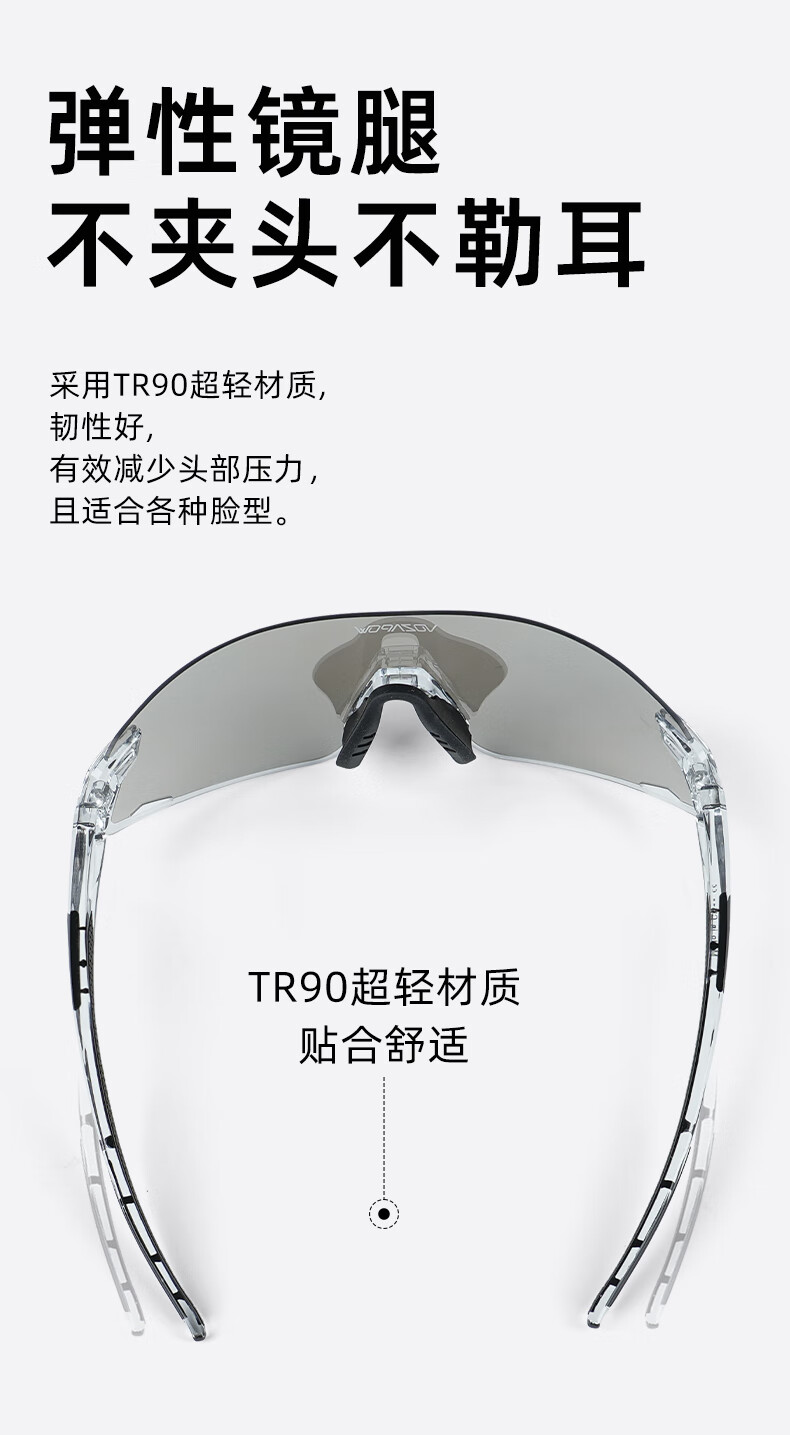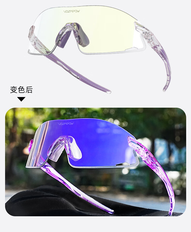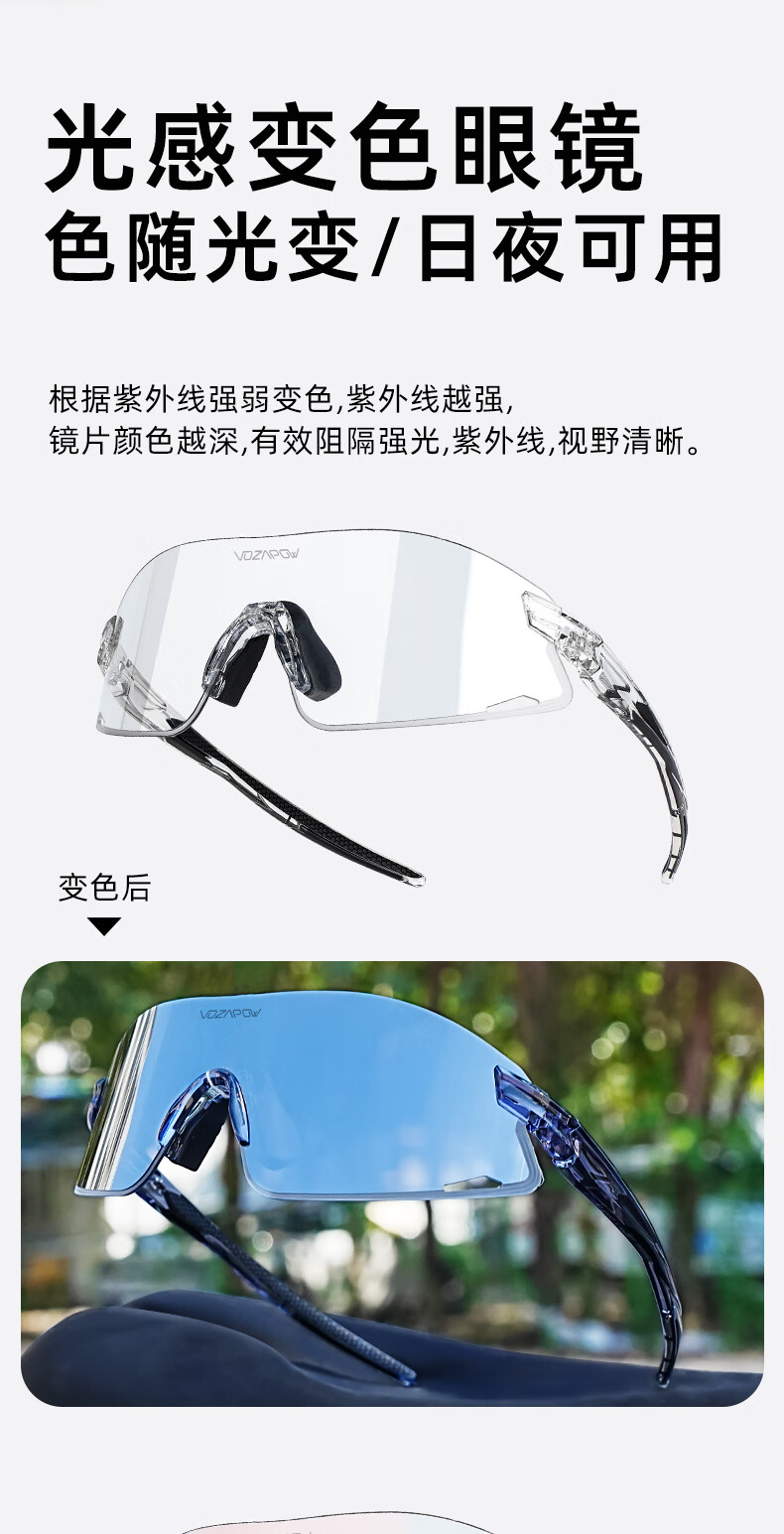 VOZAPOW沃飒骑行眼镜框变色日夜两用公路自行车跑步运动护目镜男女太阳镜