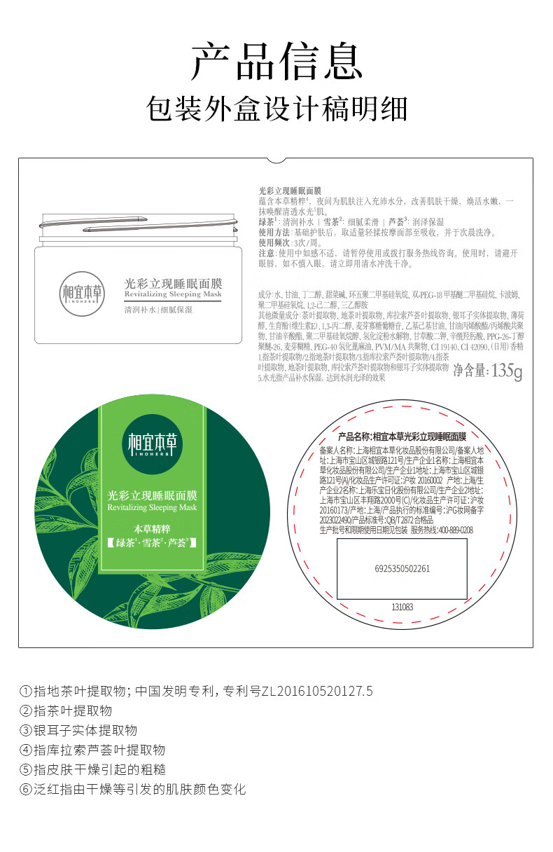 相宜本草【张凌赫同款】光彩立现睡眠面膜135g(护肤品 面膜)护肤品