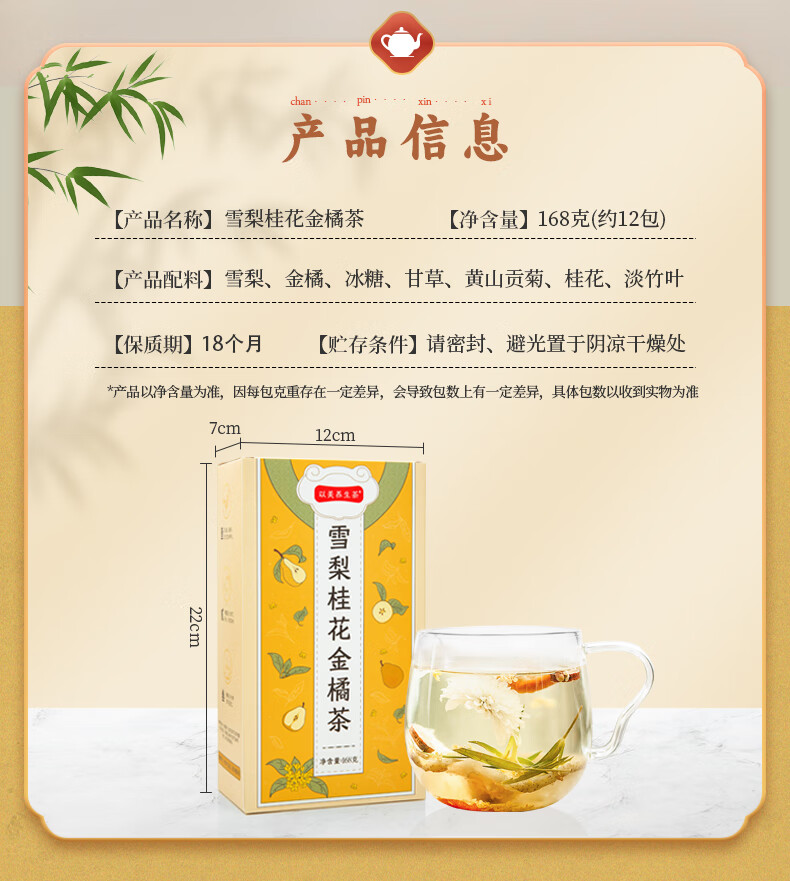 以美养生茶花草茶雪梨茶桂花茶金橘茶168g清润凉喉小吊梨汤茶包中秋节