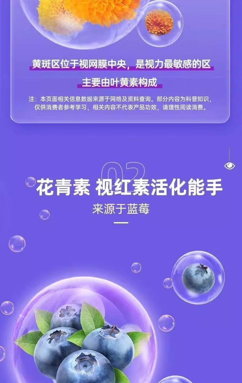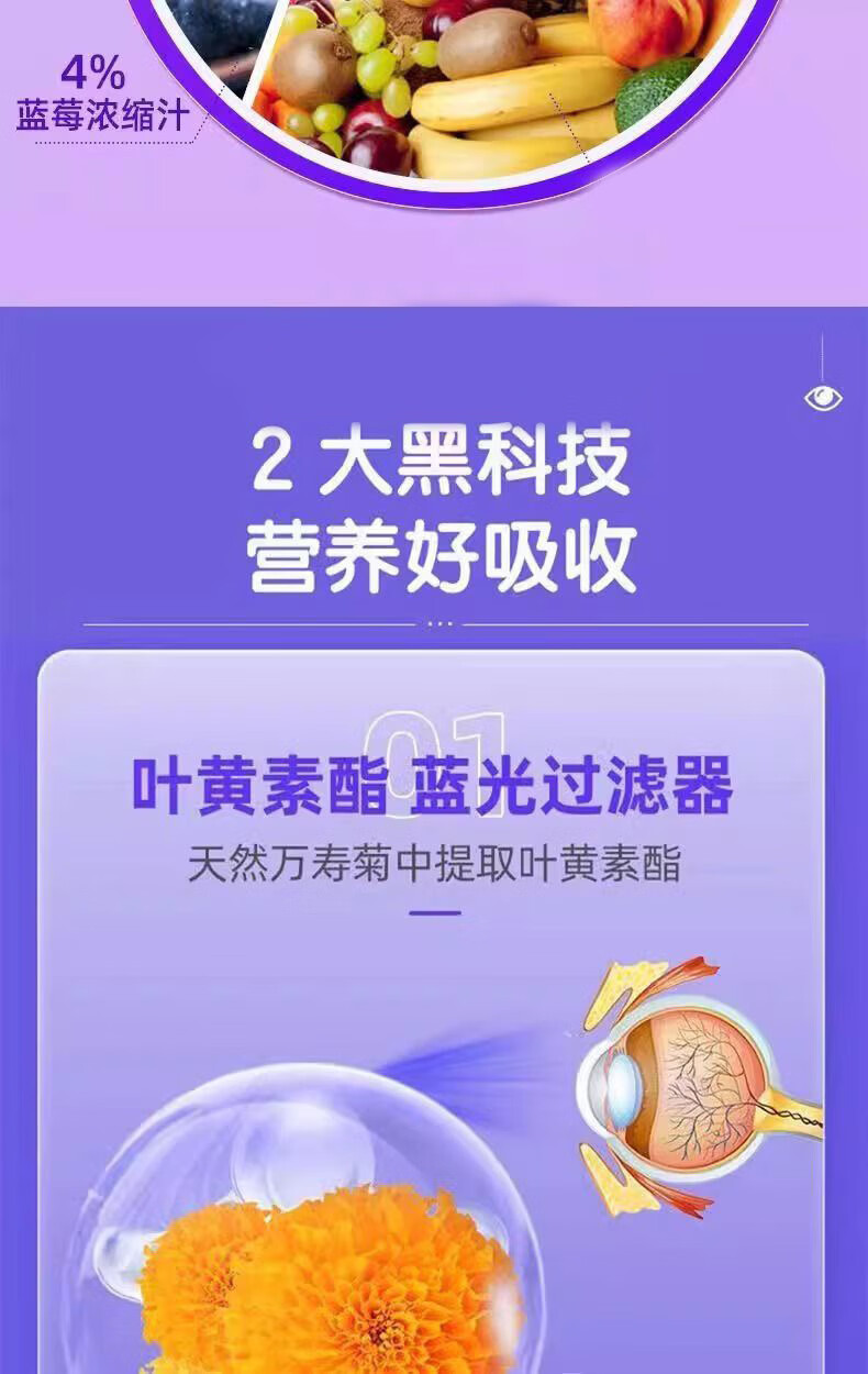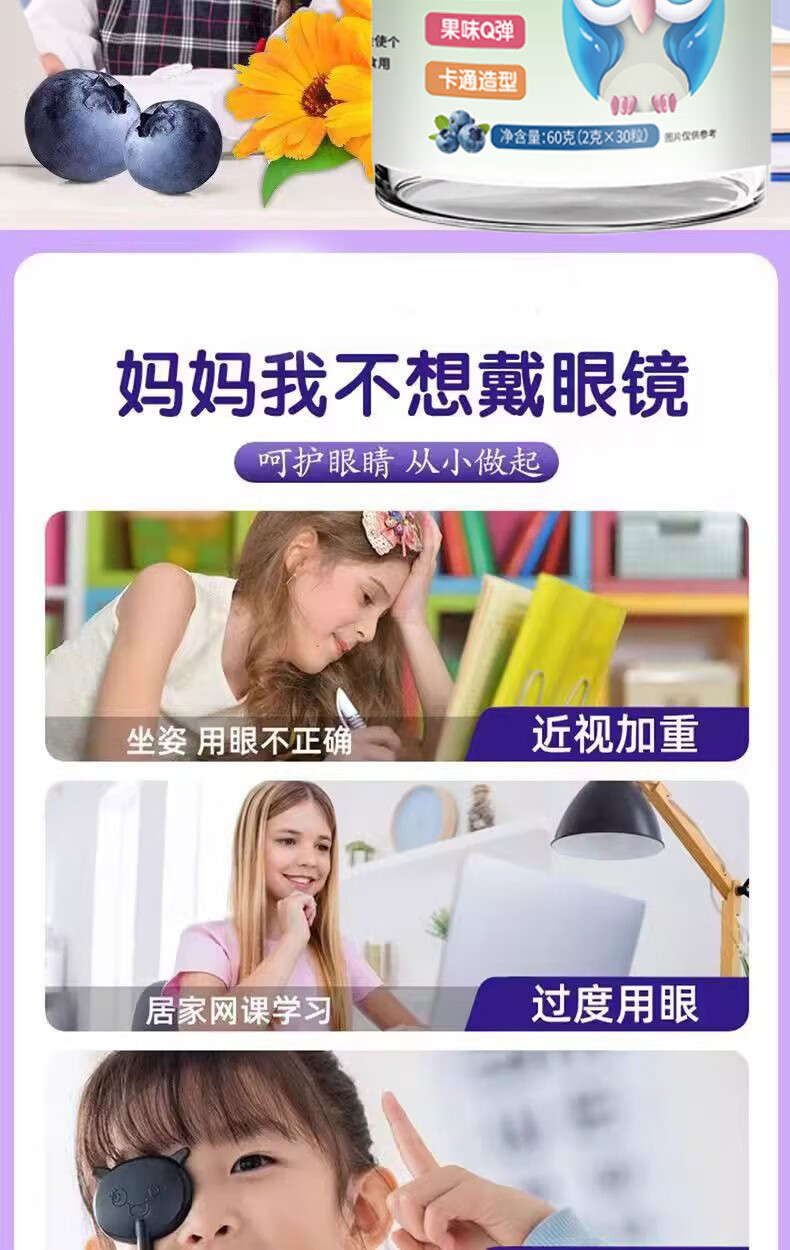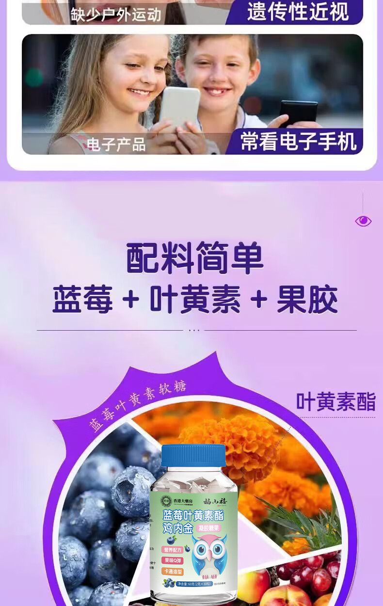蓝莓叶黄素软糖鸡内 金亮眼助消化好吃又营养 双重呵护添活力 叶黄素软糖1瓶30粒