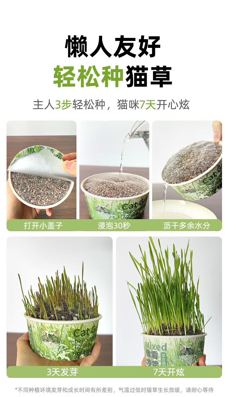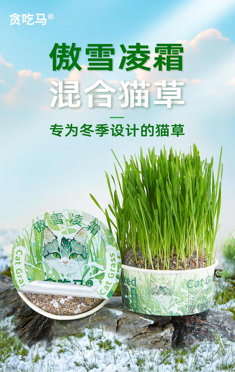 贪吃马冬季款懒人猫草盒装猫零食无土水培化毛排毛去毛球猫咪专用猫草 1盒