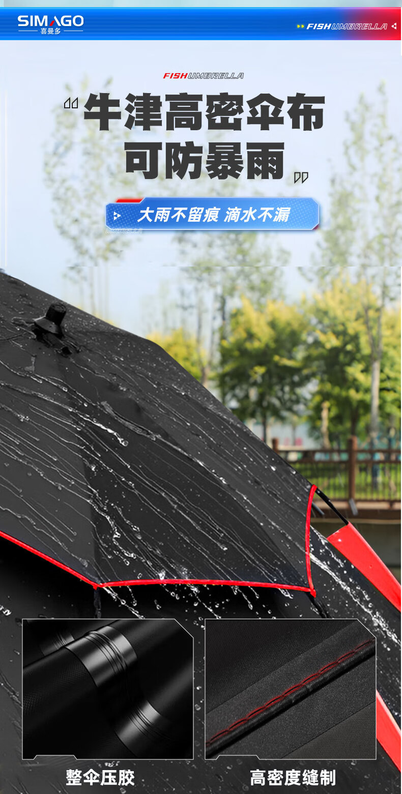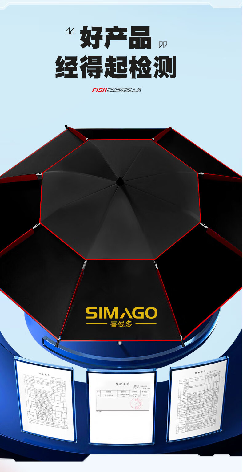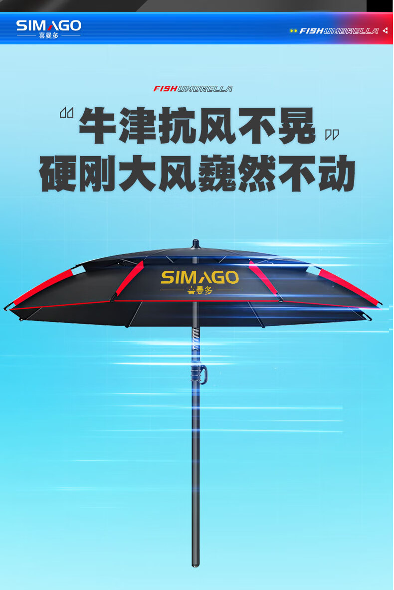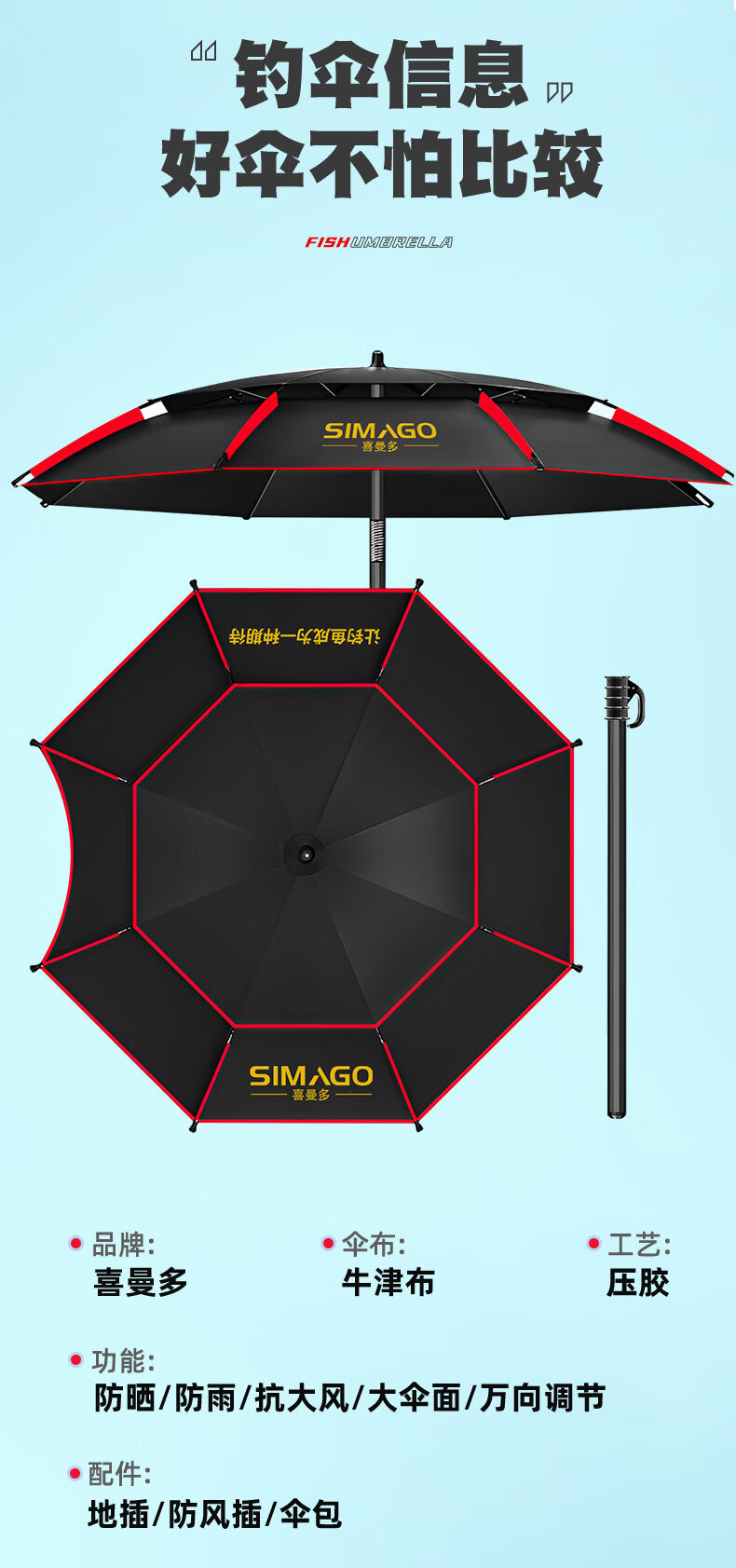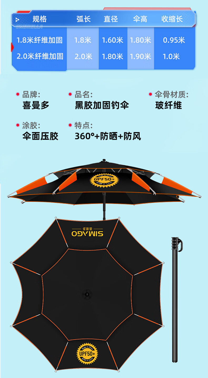 simago喜曼多钓鱼伞万向大钓伞防风防暴雨伞钓鱼渔具加厚防晒户外遮阳伞 1.8米 单层轻便 加厚黑胶更防晒