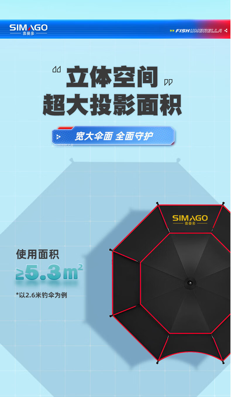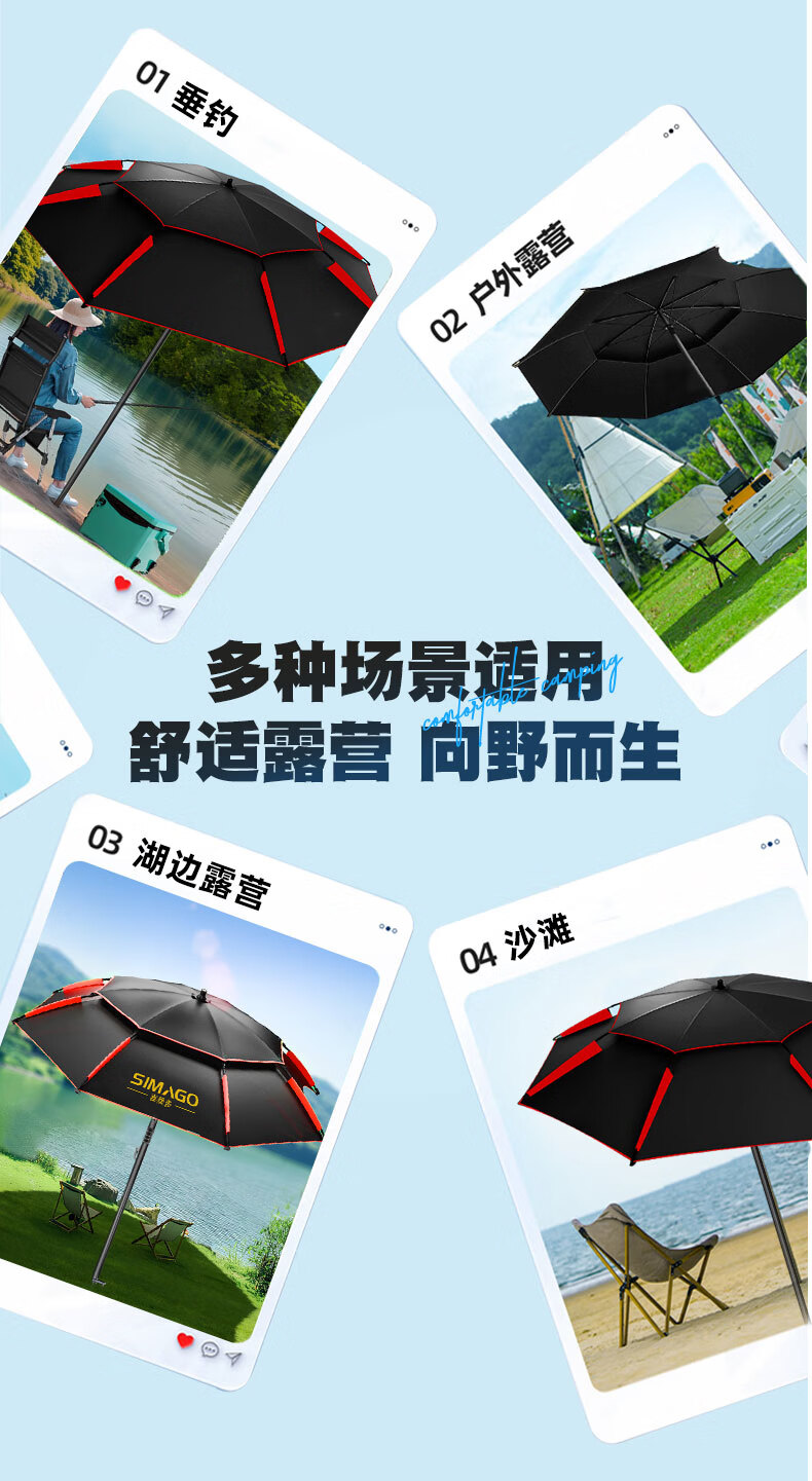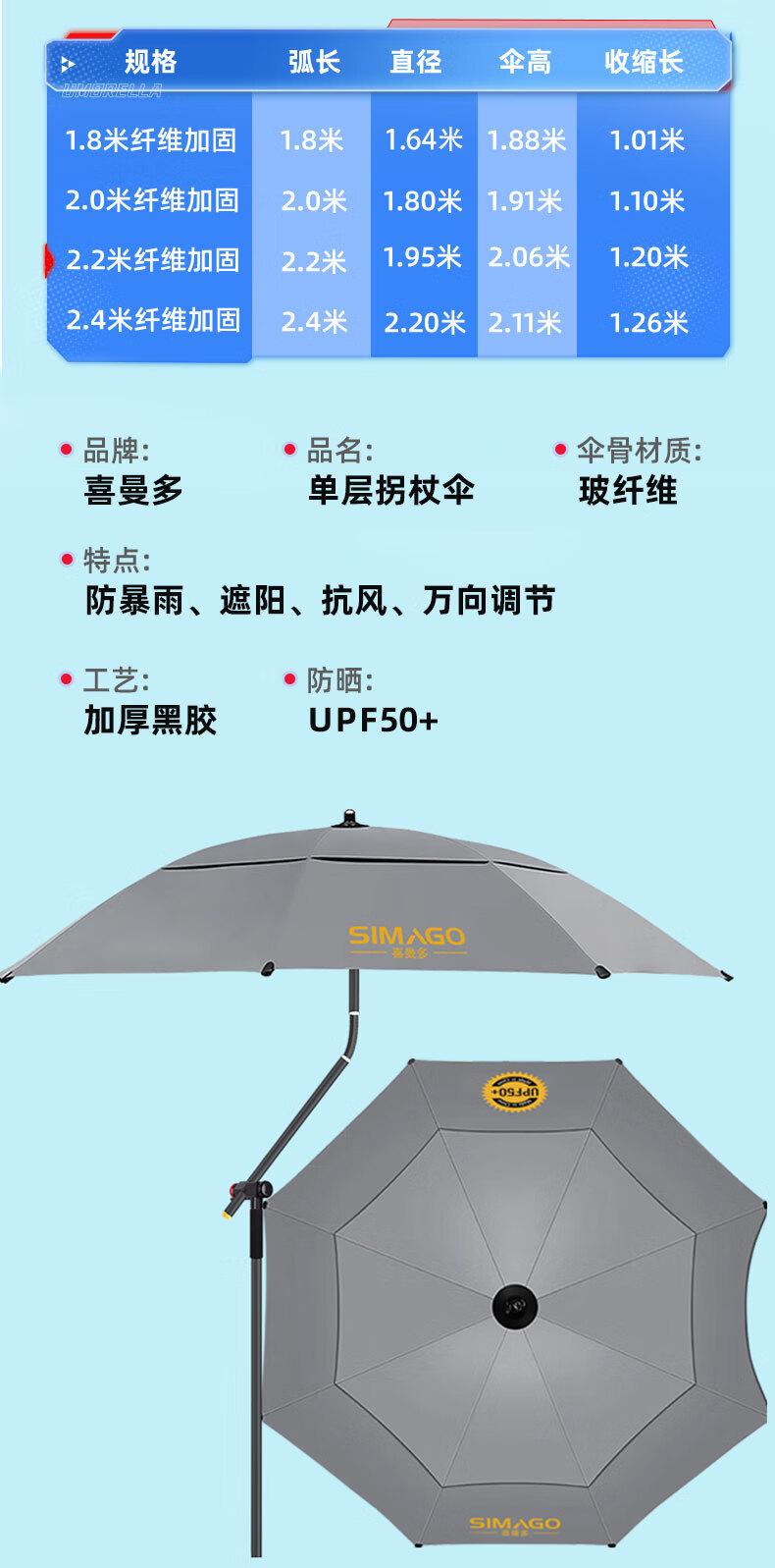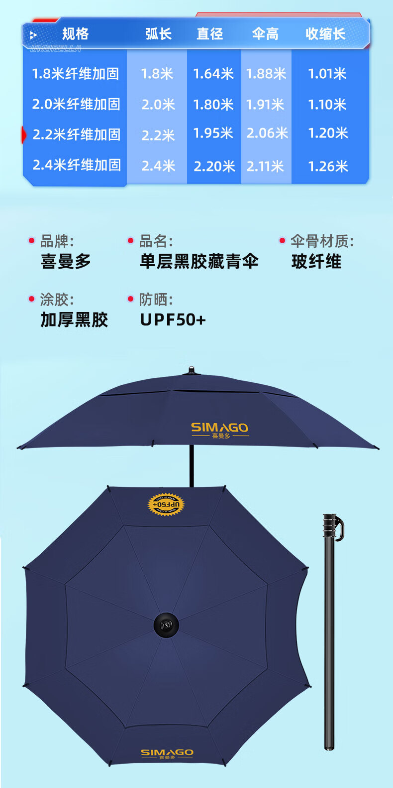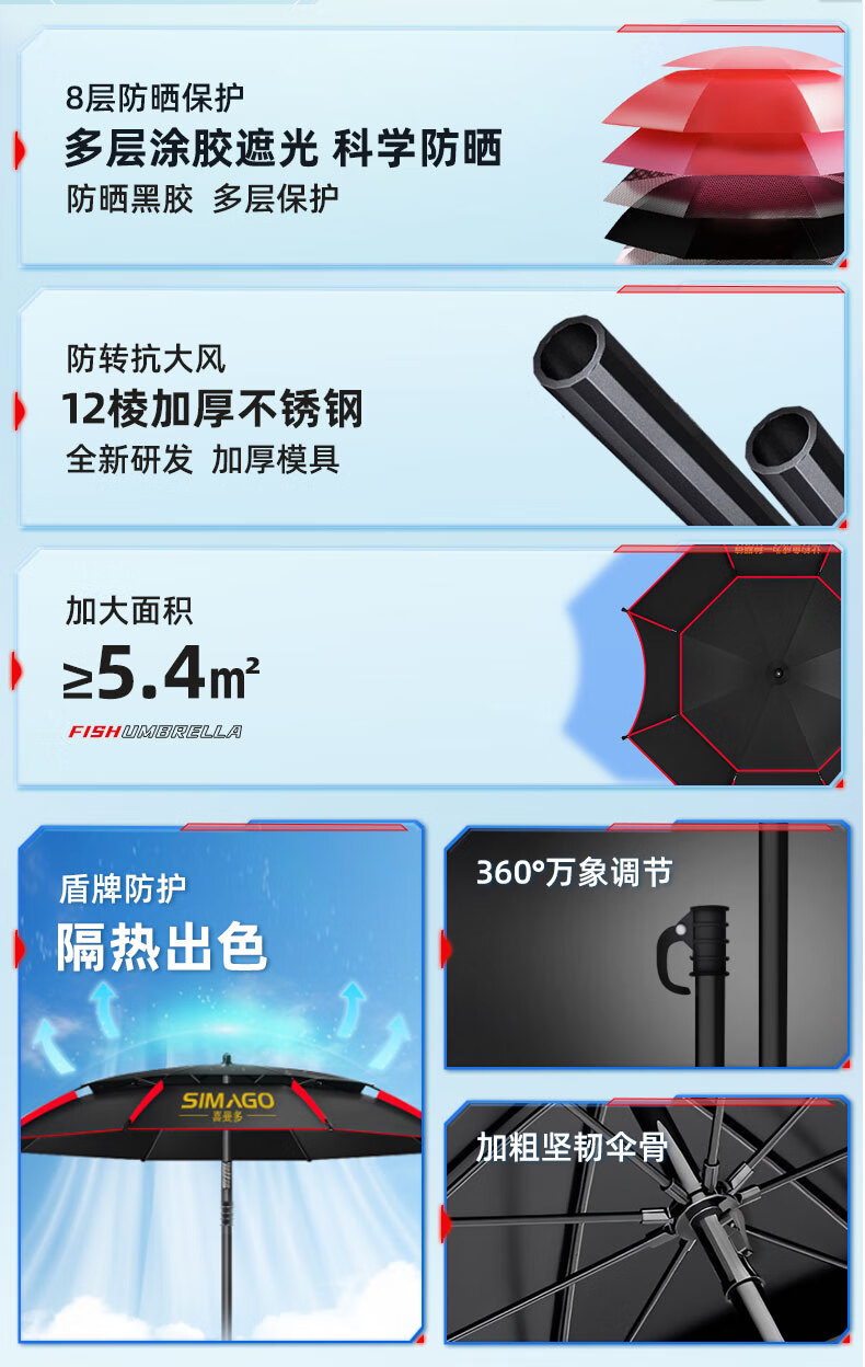 simago喜曼多钓鱼伞万向大钓伞防风防暴雨伞钓鱼渔具加厚防晒户外遮阳伞 1.8米 单层轻便 加厚黑胶更防晒