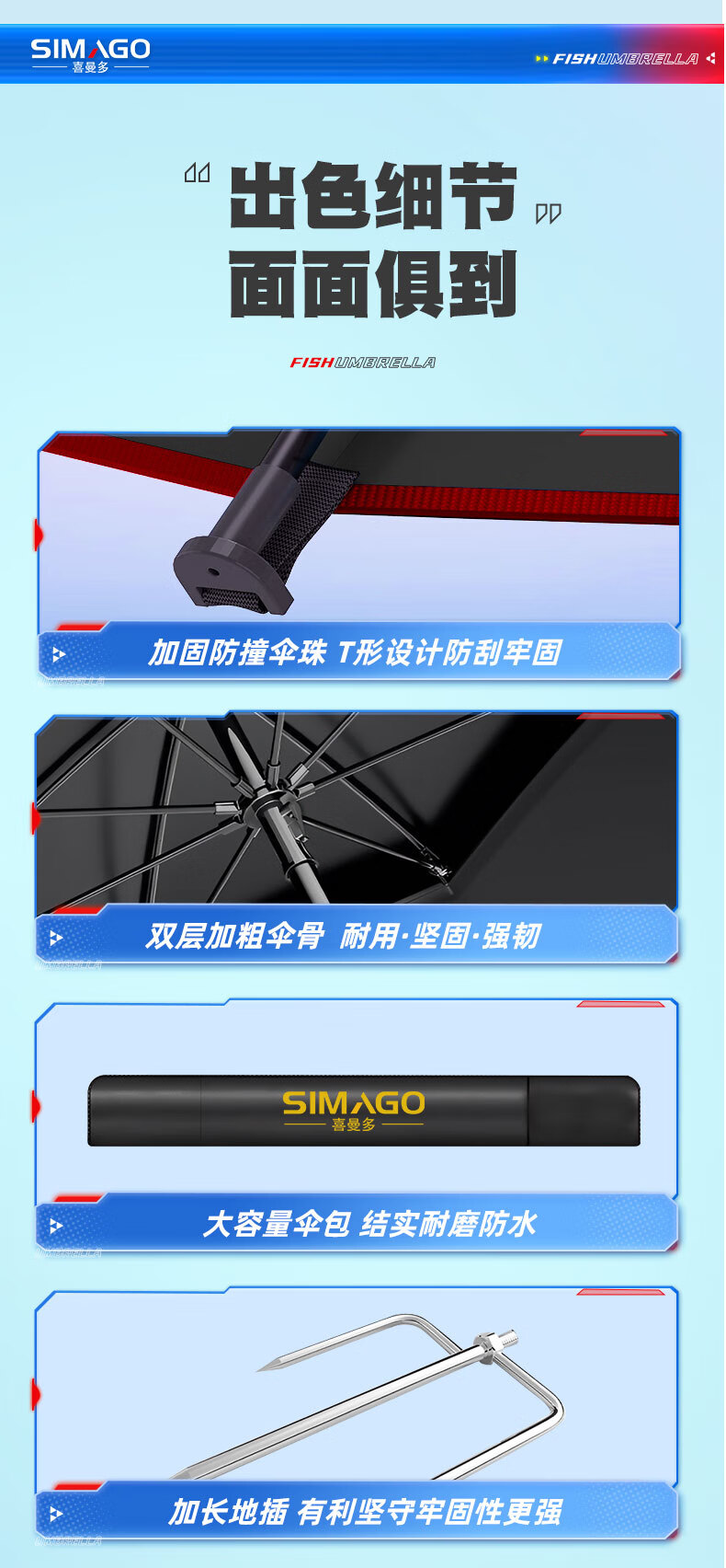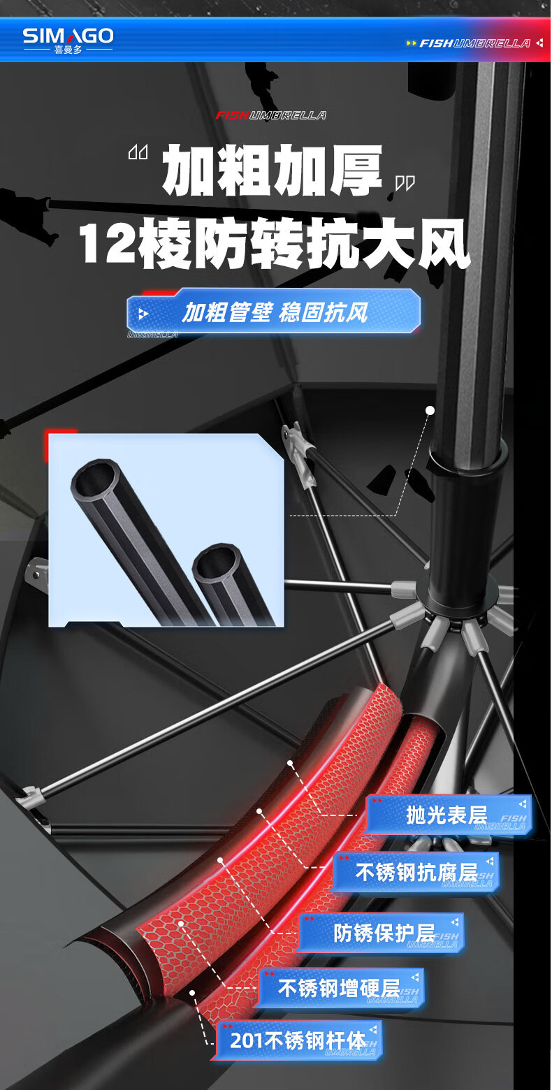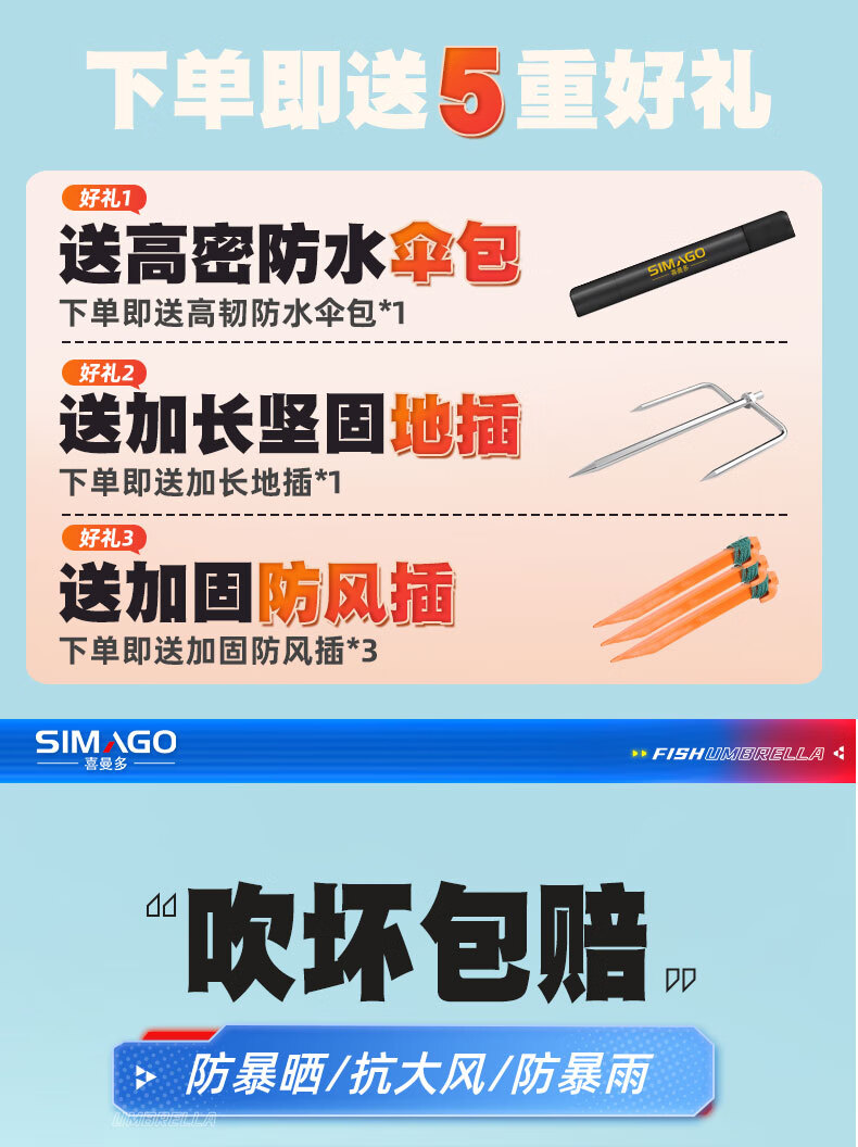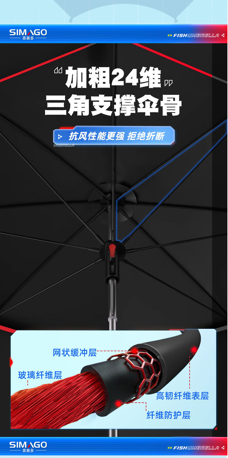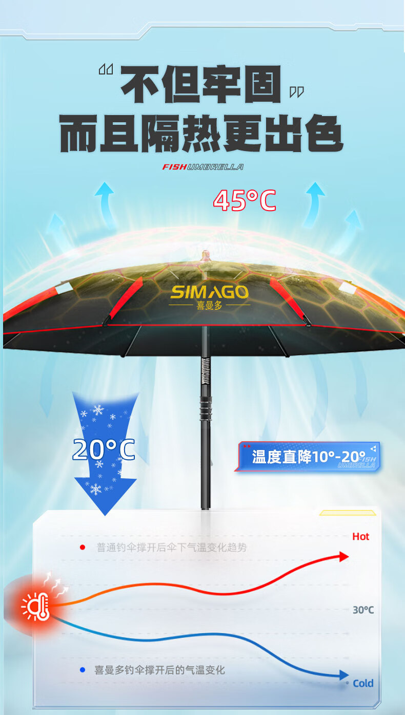 simago喜曼多钓鱼伞万向大钓伞防风防暴雨伞钓鱼渔具加厚防晒户外遮阳伞 1.8米 单层轻便 加厚黑胶更防晒